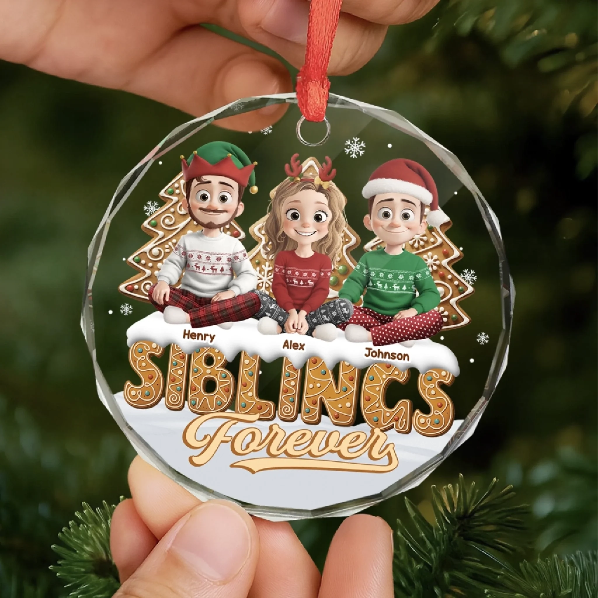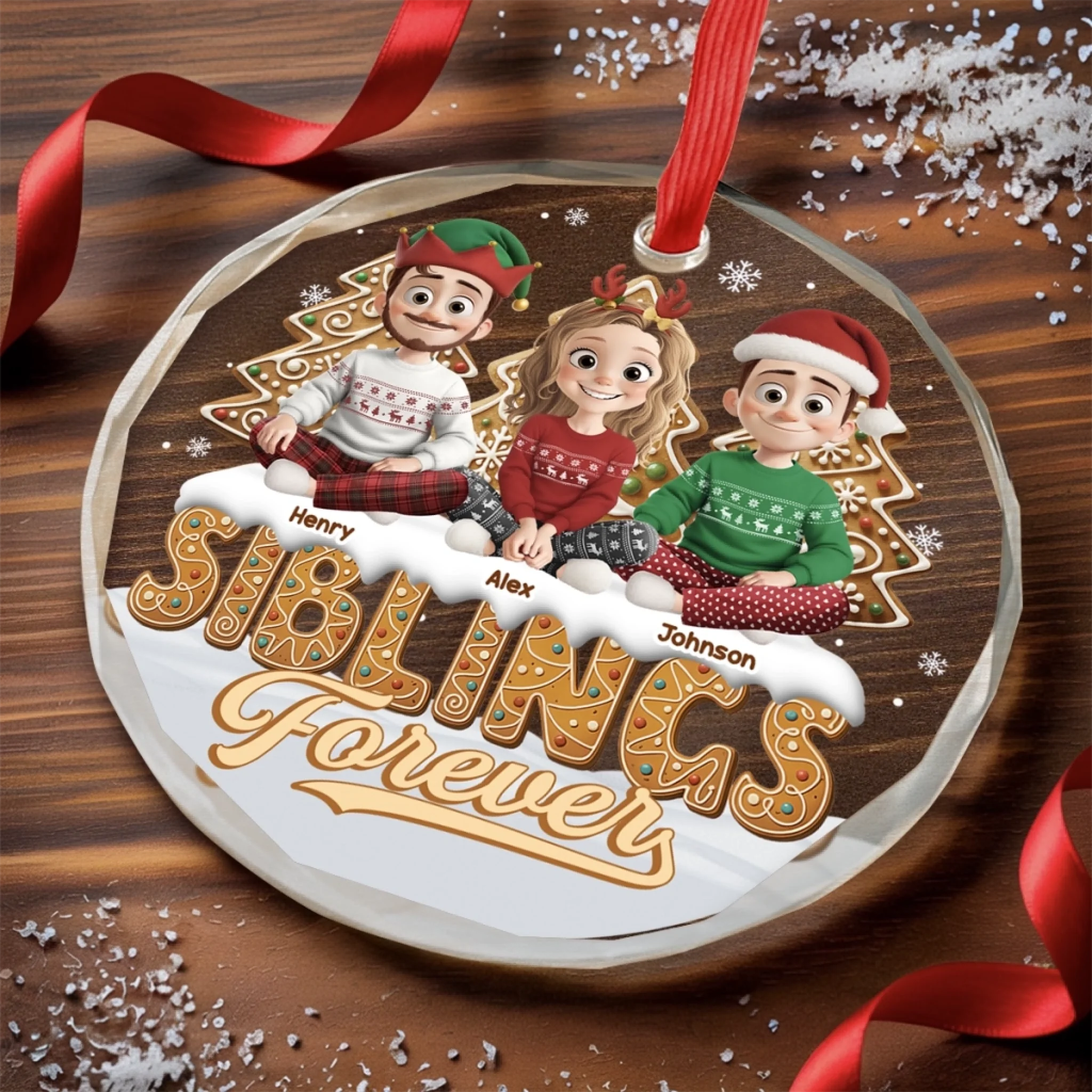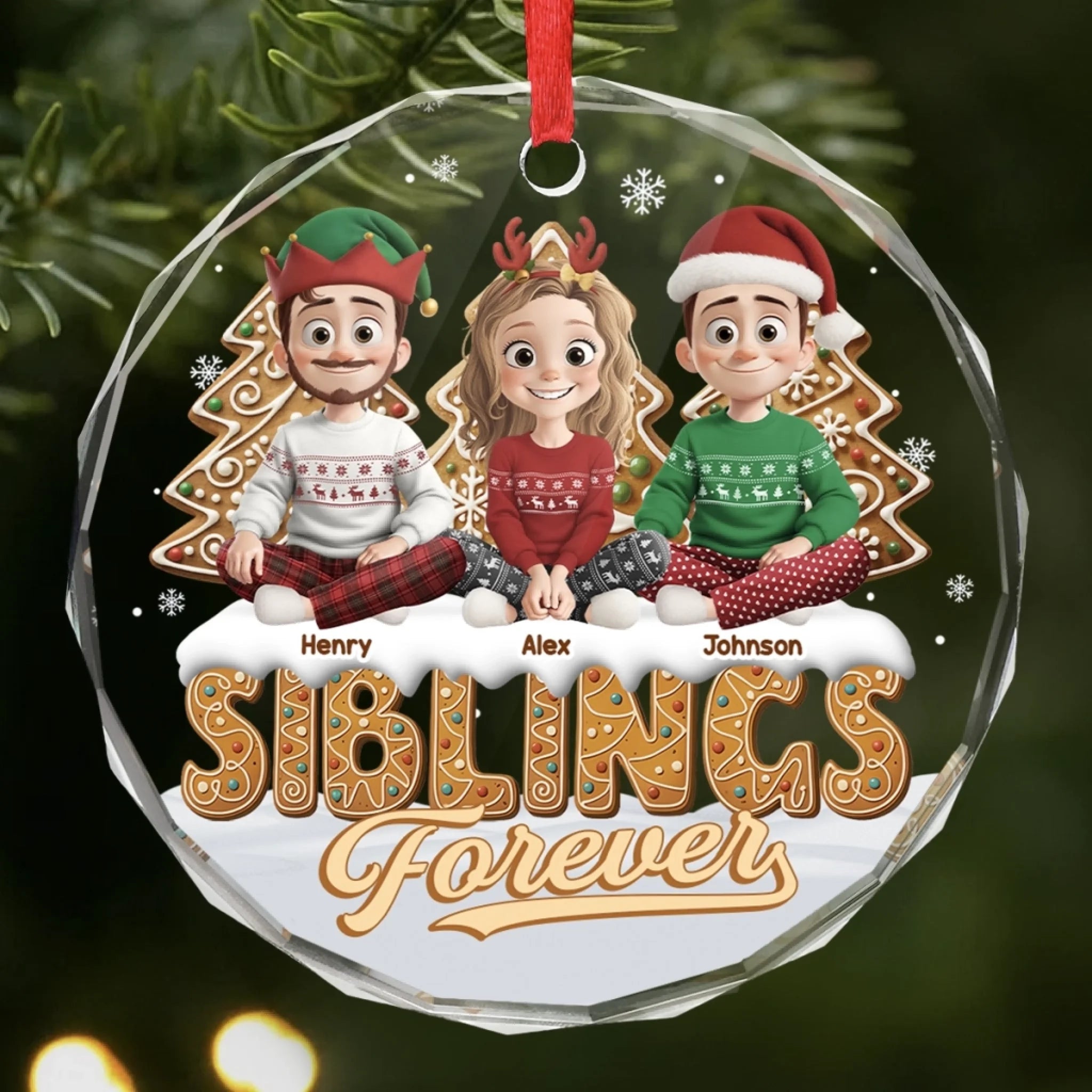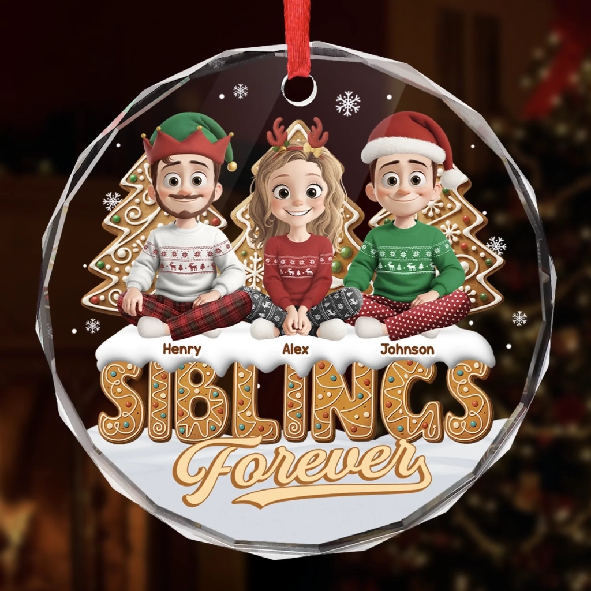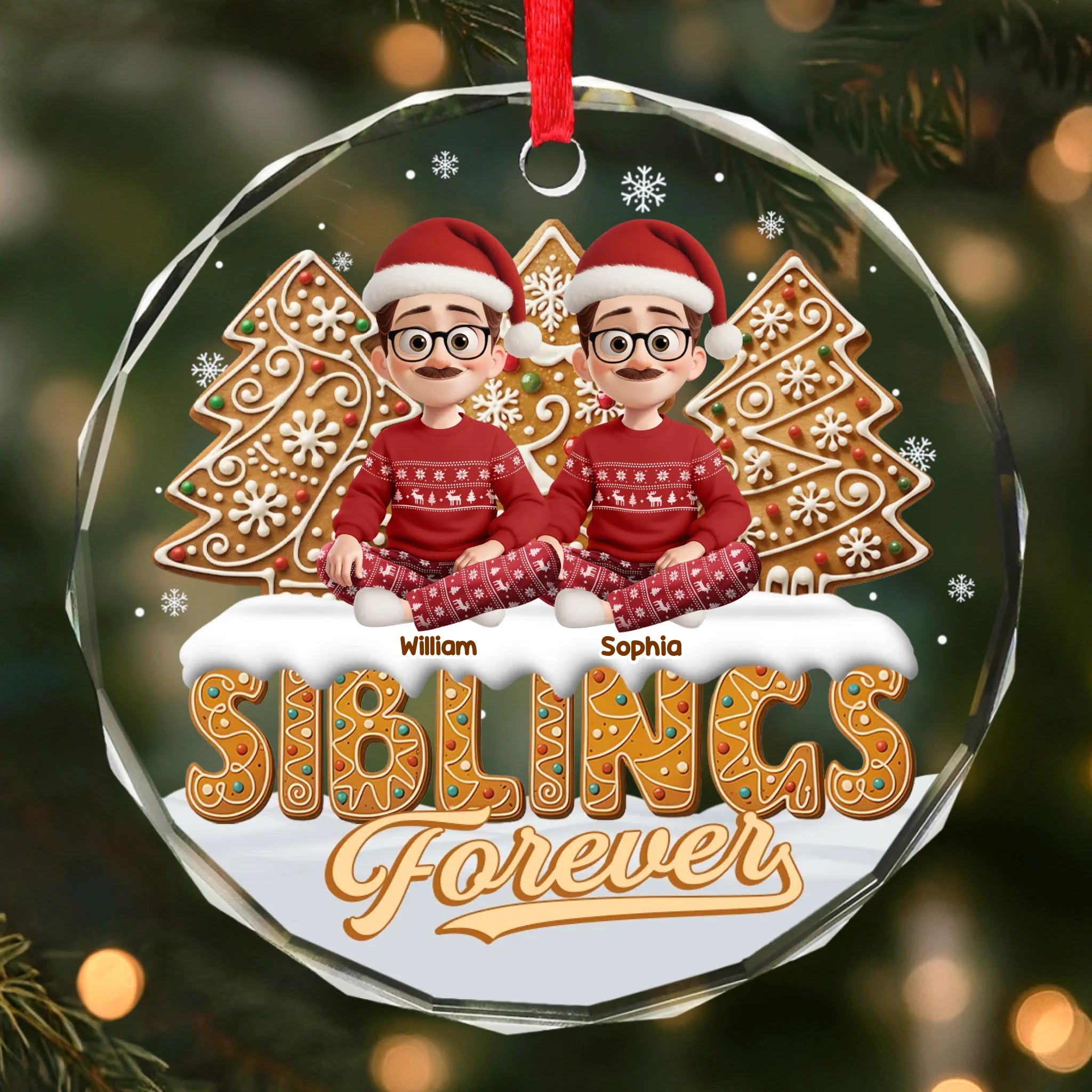 Custom Circle Glass Ornament - Personalized Christmas Birthday Gifts For Brother, Sister - Linked By Love