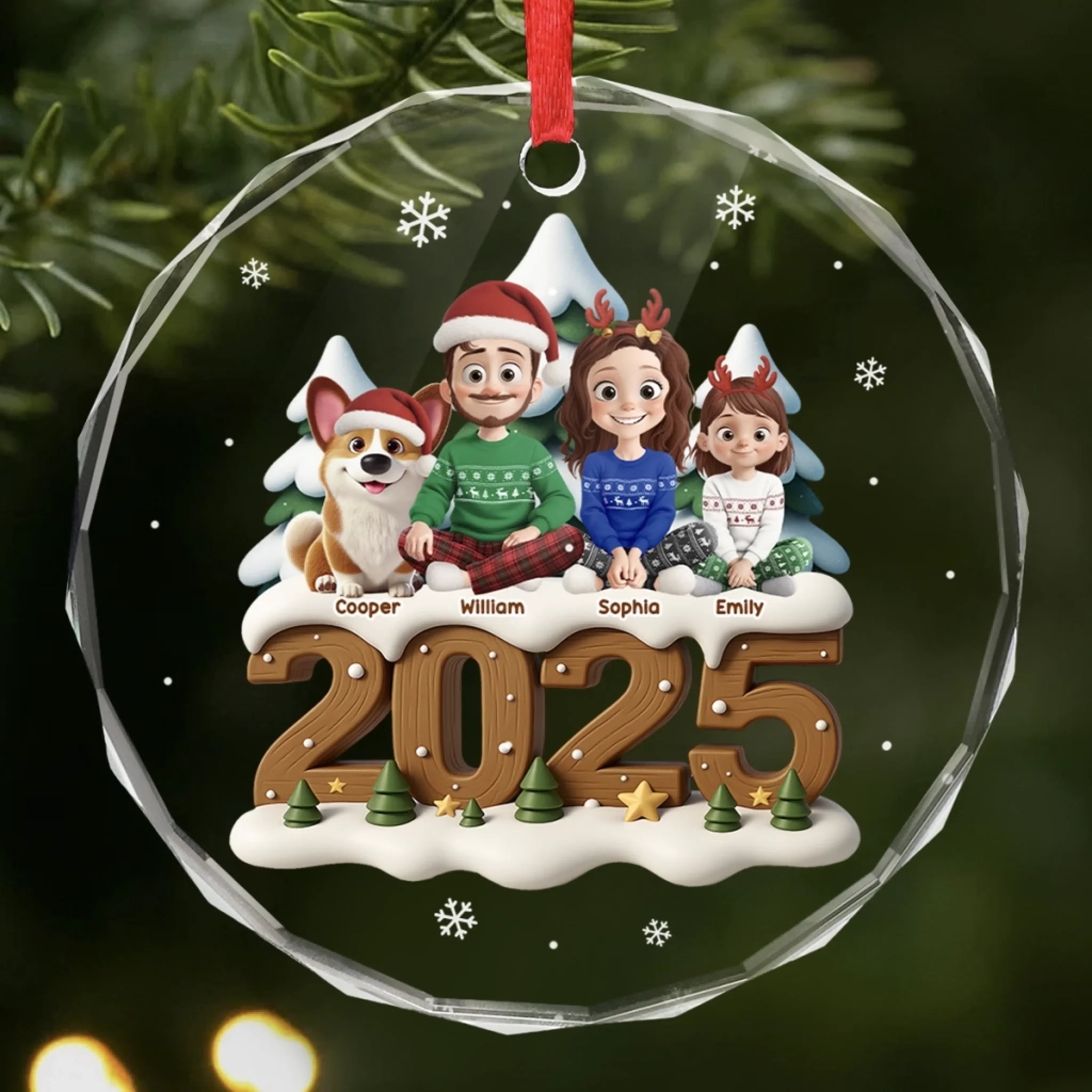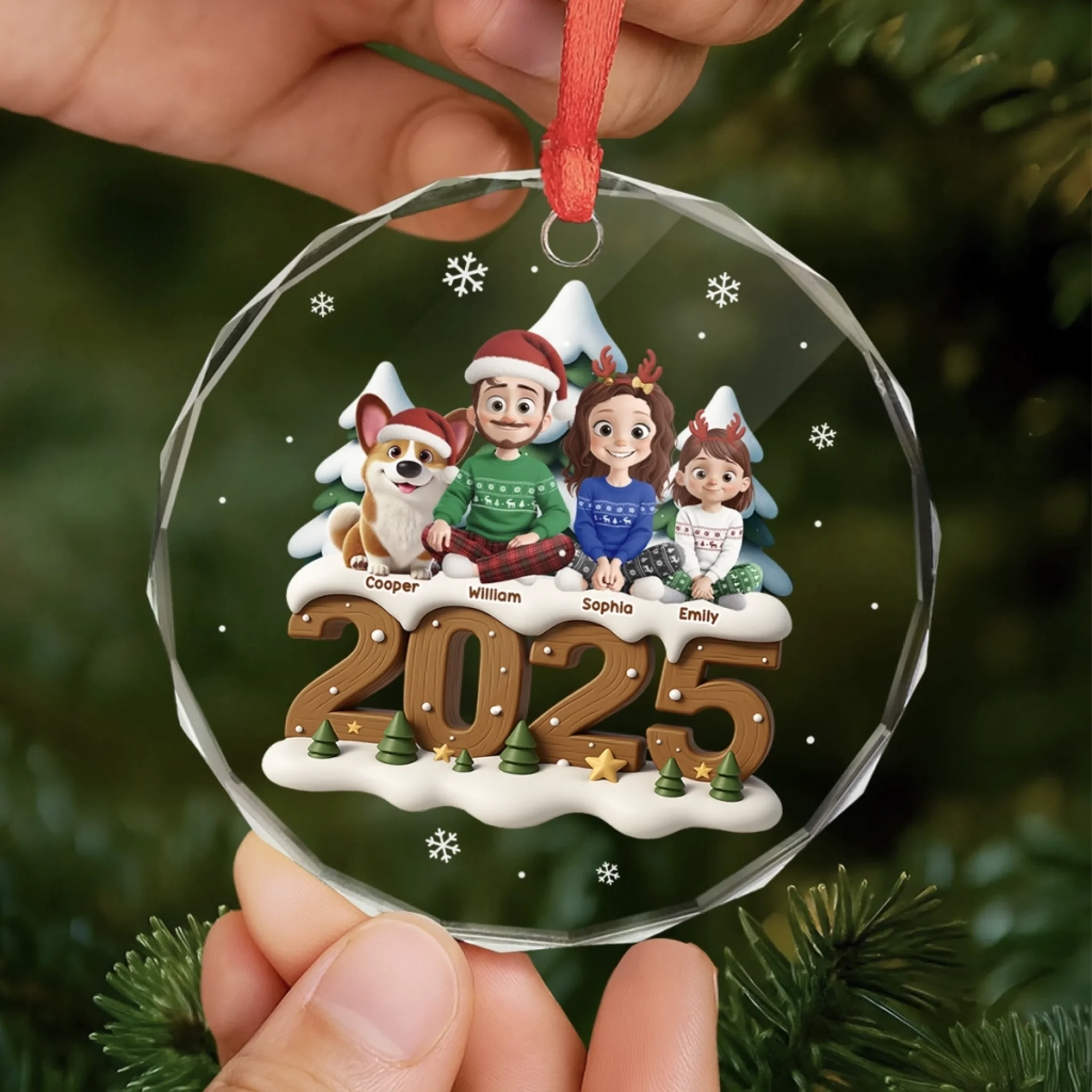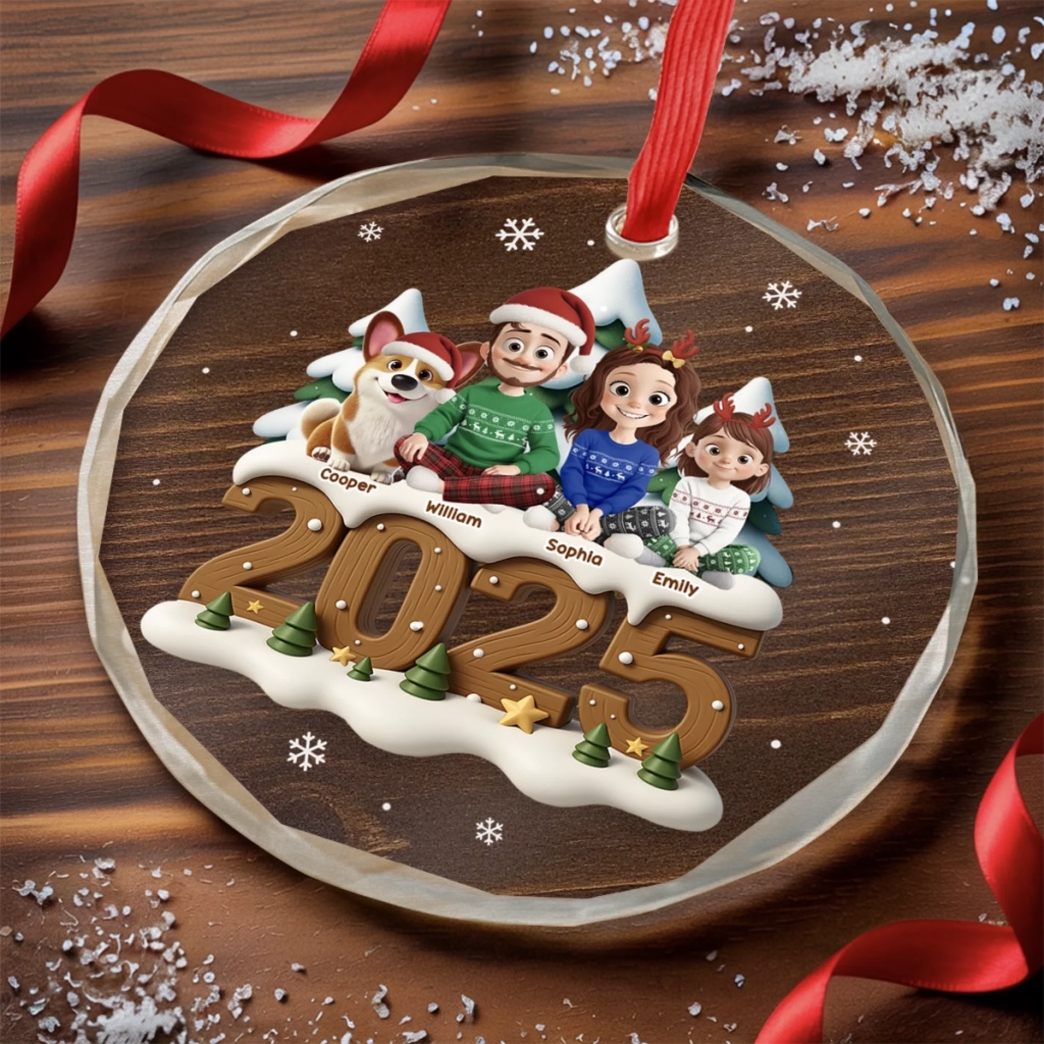 Custom Circle Glass Ornament - Personalized Christmas Birthday Gifts For Family, Dog Cat Lovers - Hearts Together For Christmas