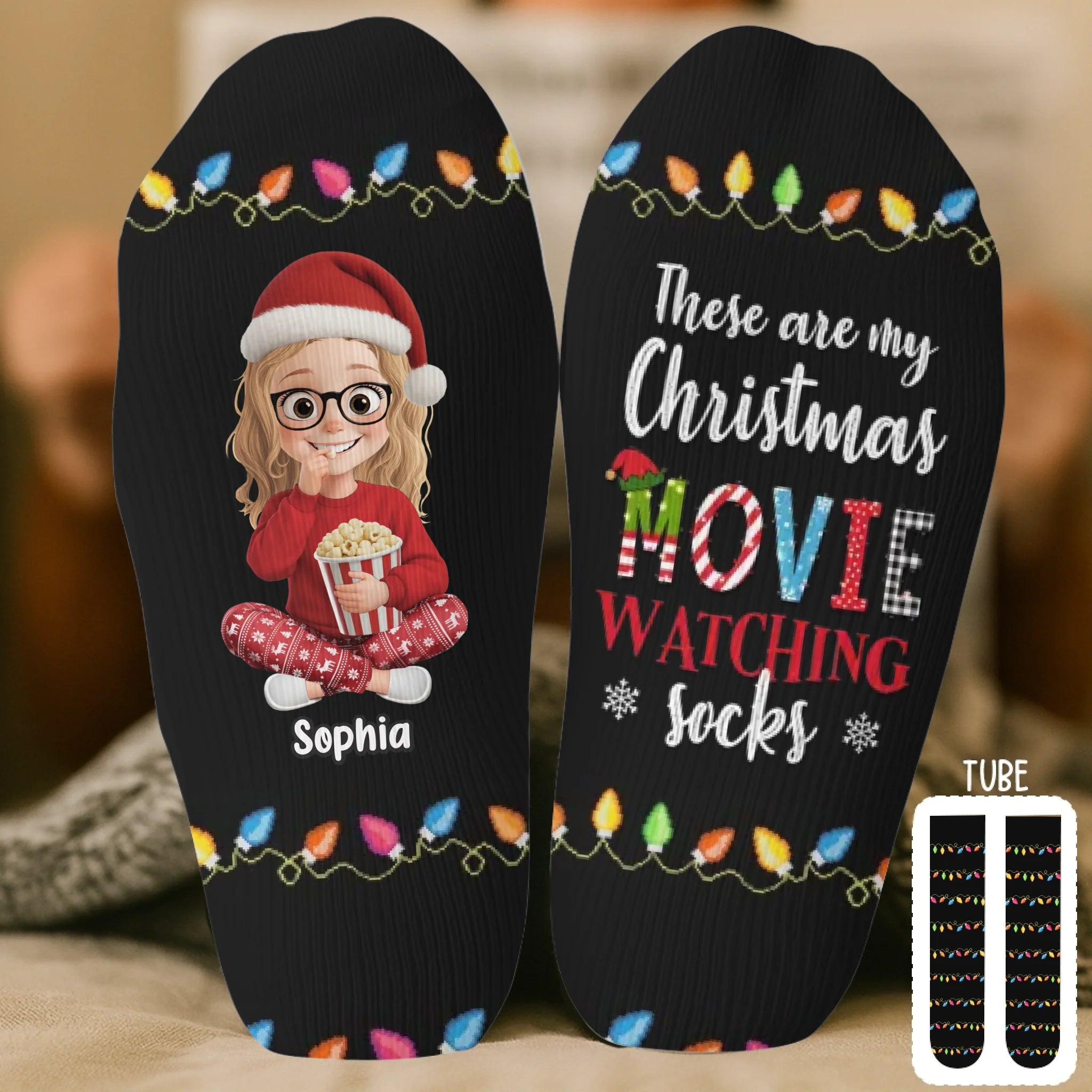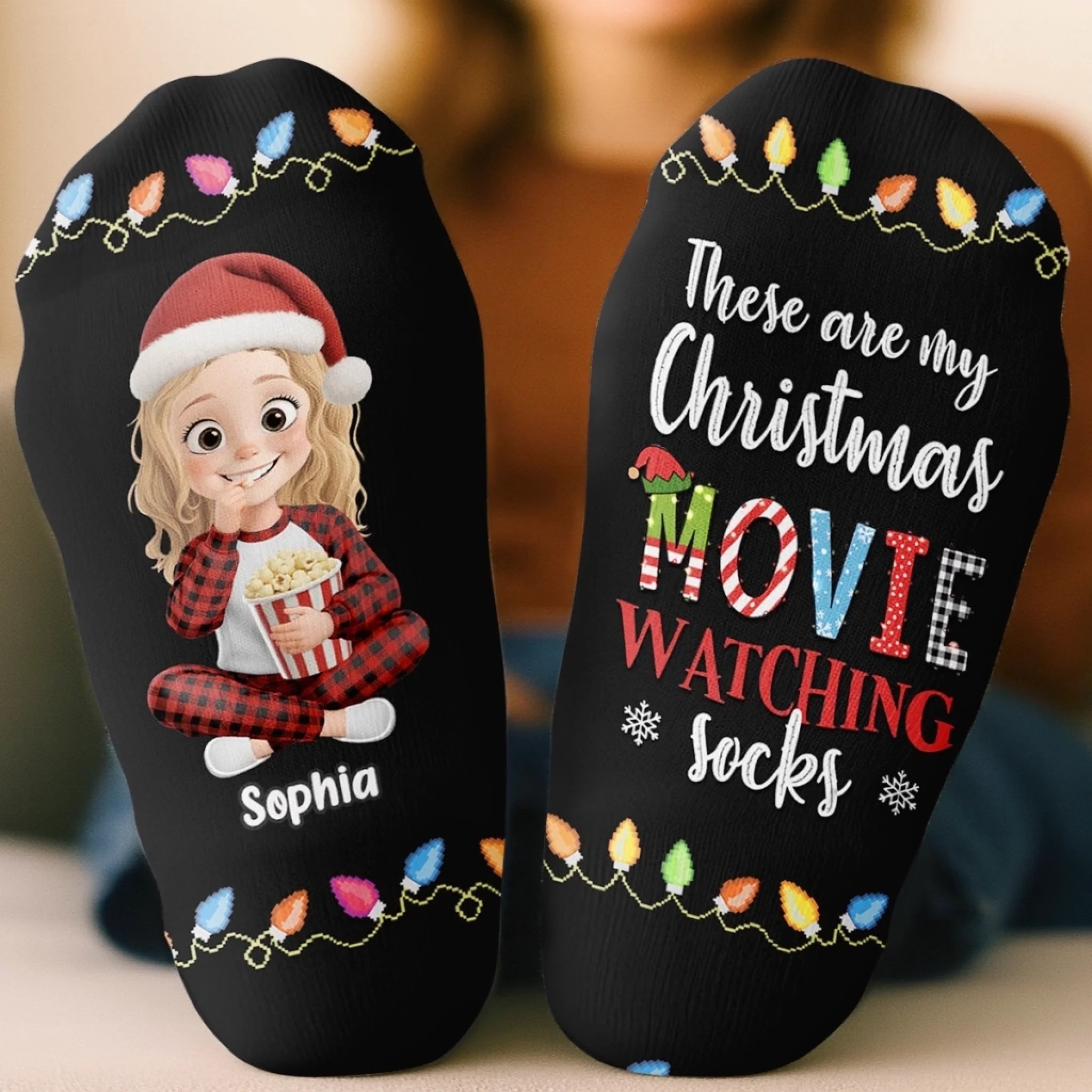 Custom Crew Socks - Personalized Christmas Birthday Gifts For Women, Men - Movie Time, Holiday Edition