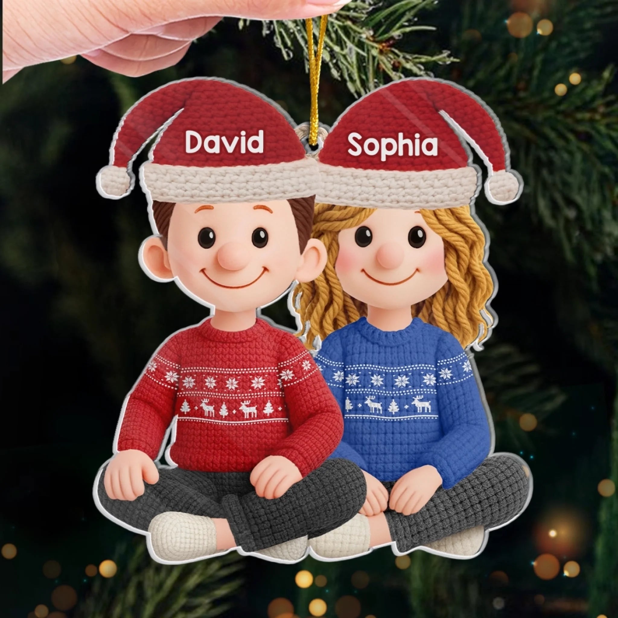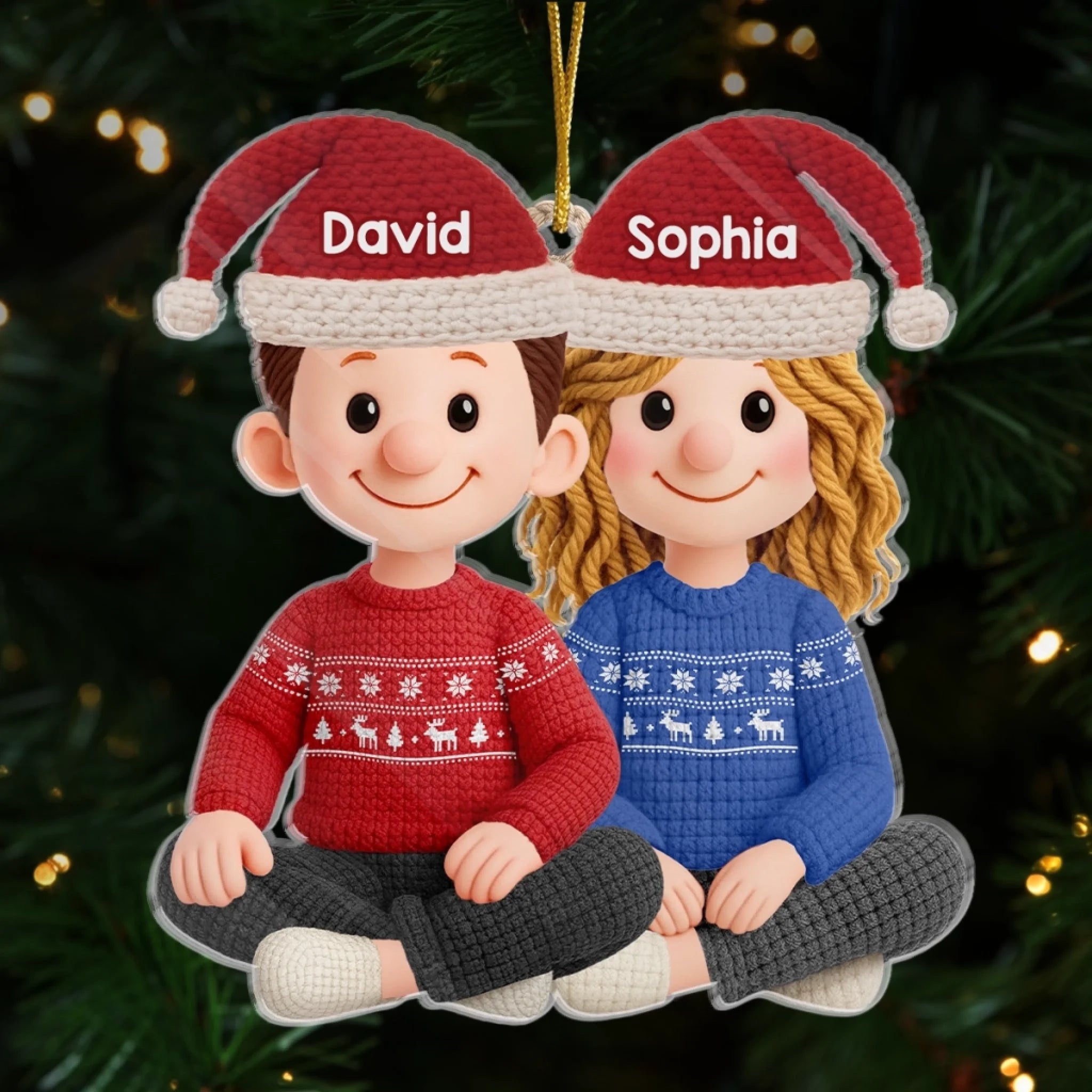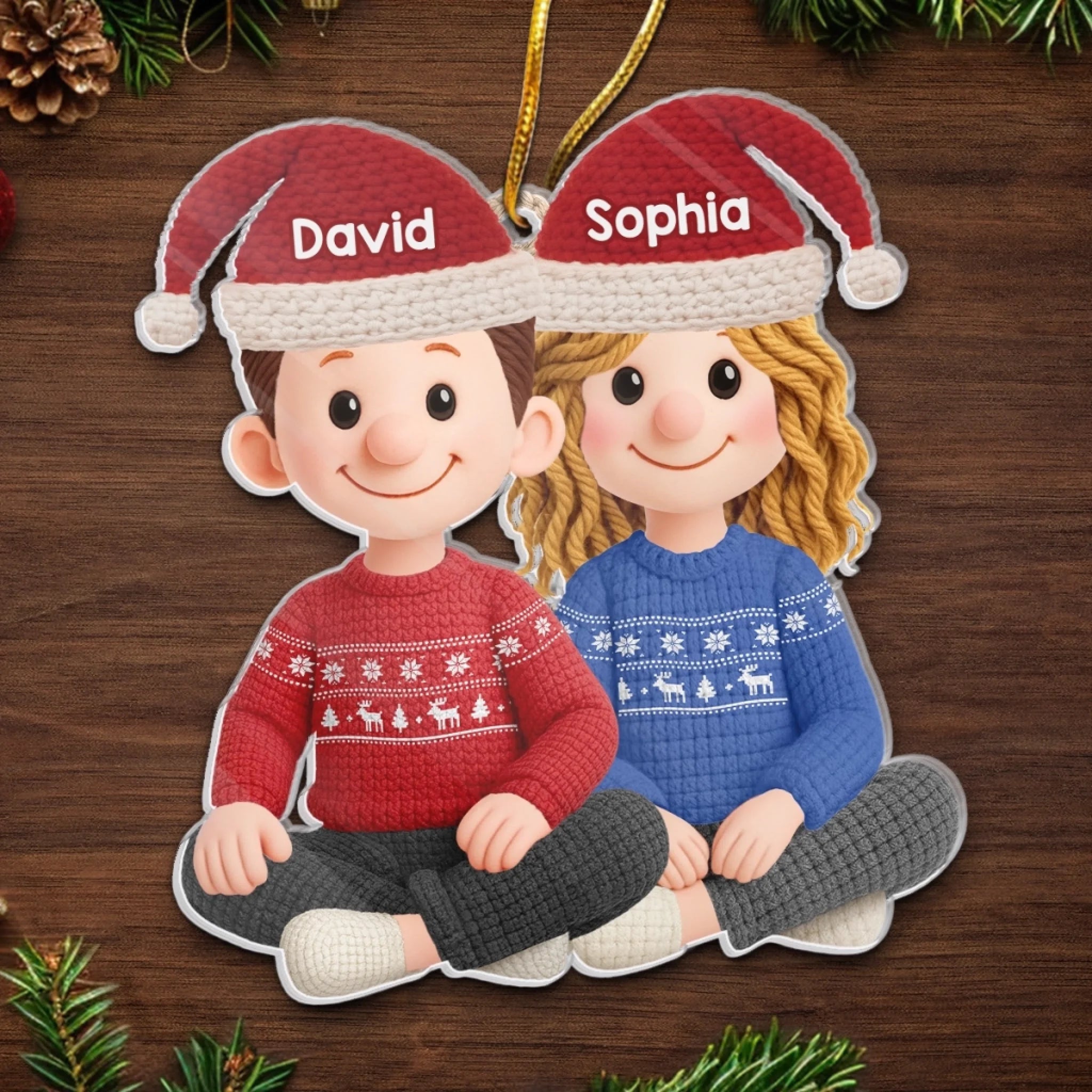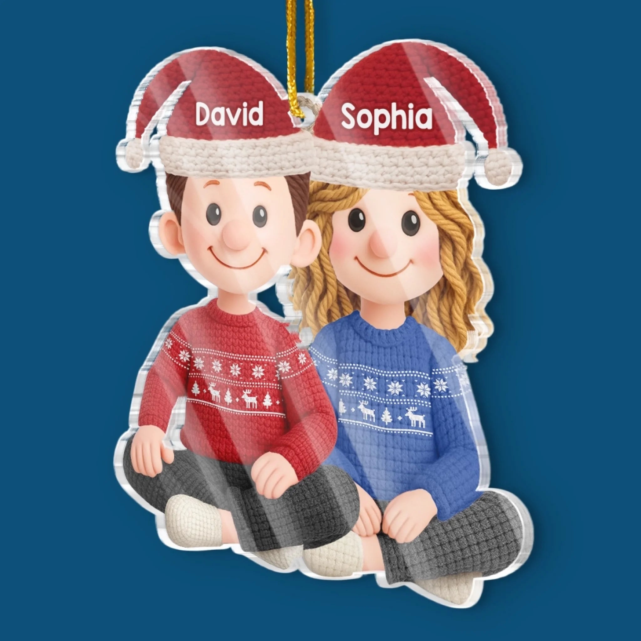 Custom Crochet Acrylic Ornament - Personalized Anniversary Christmas Wedding Gifts For Husband And Wife, Him And Her - Hooked On Love