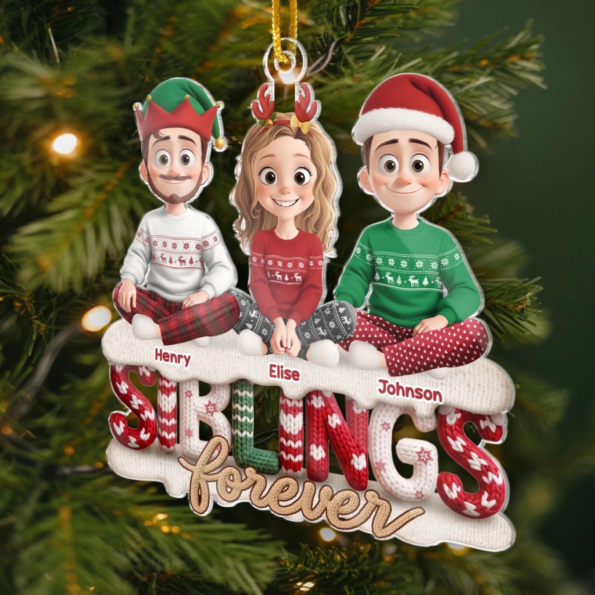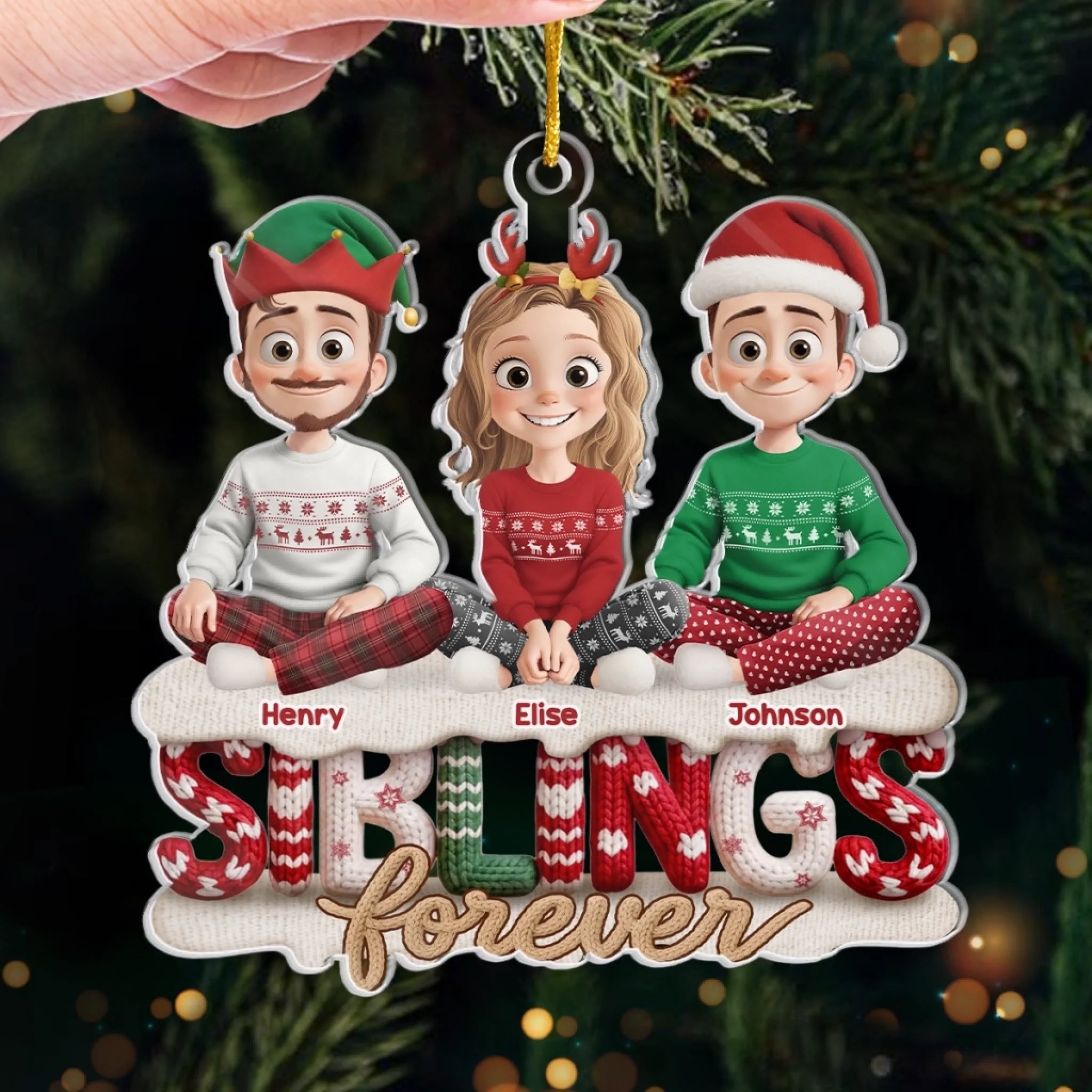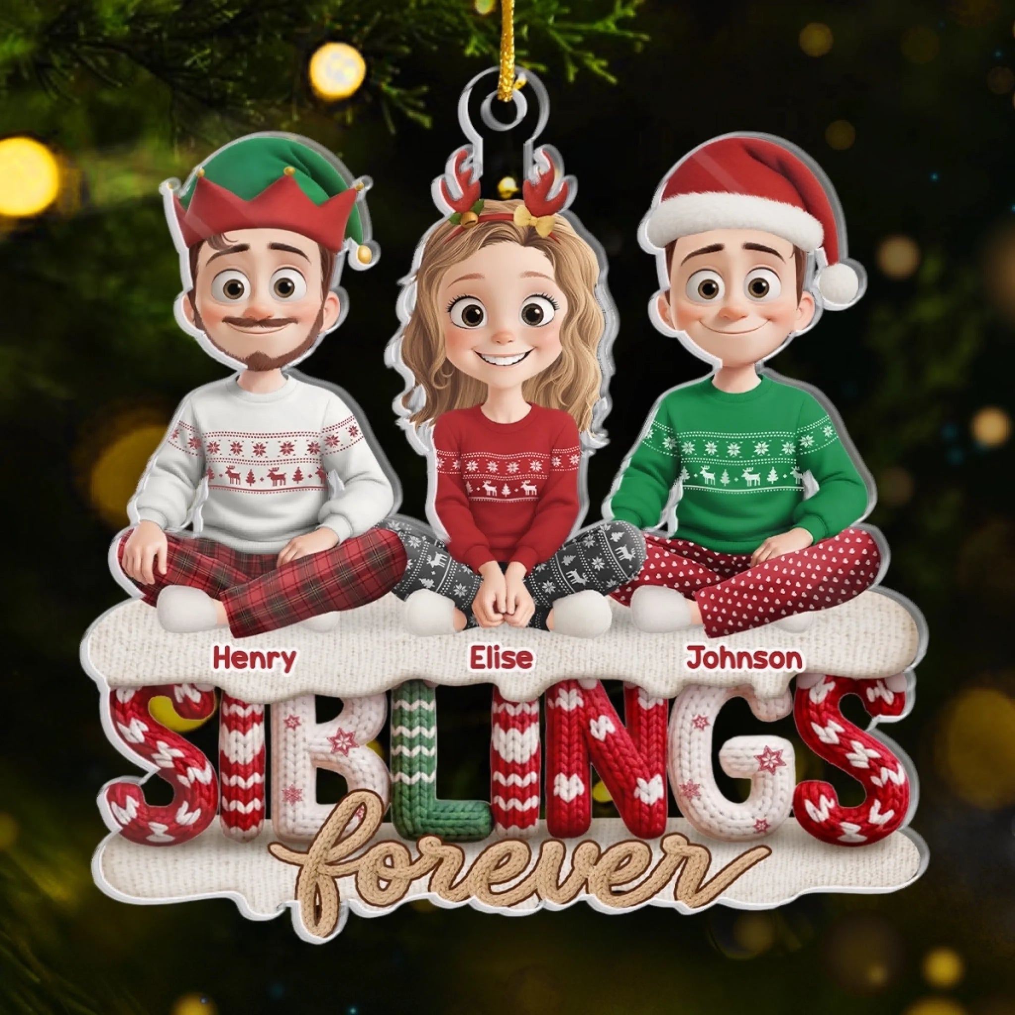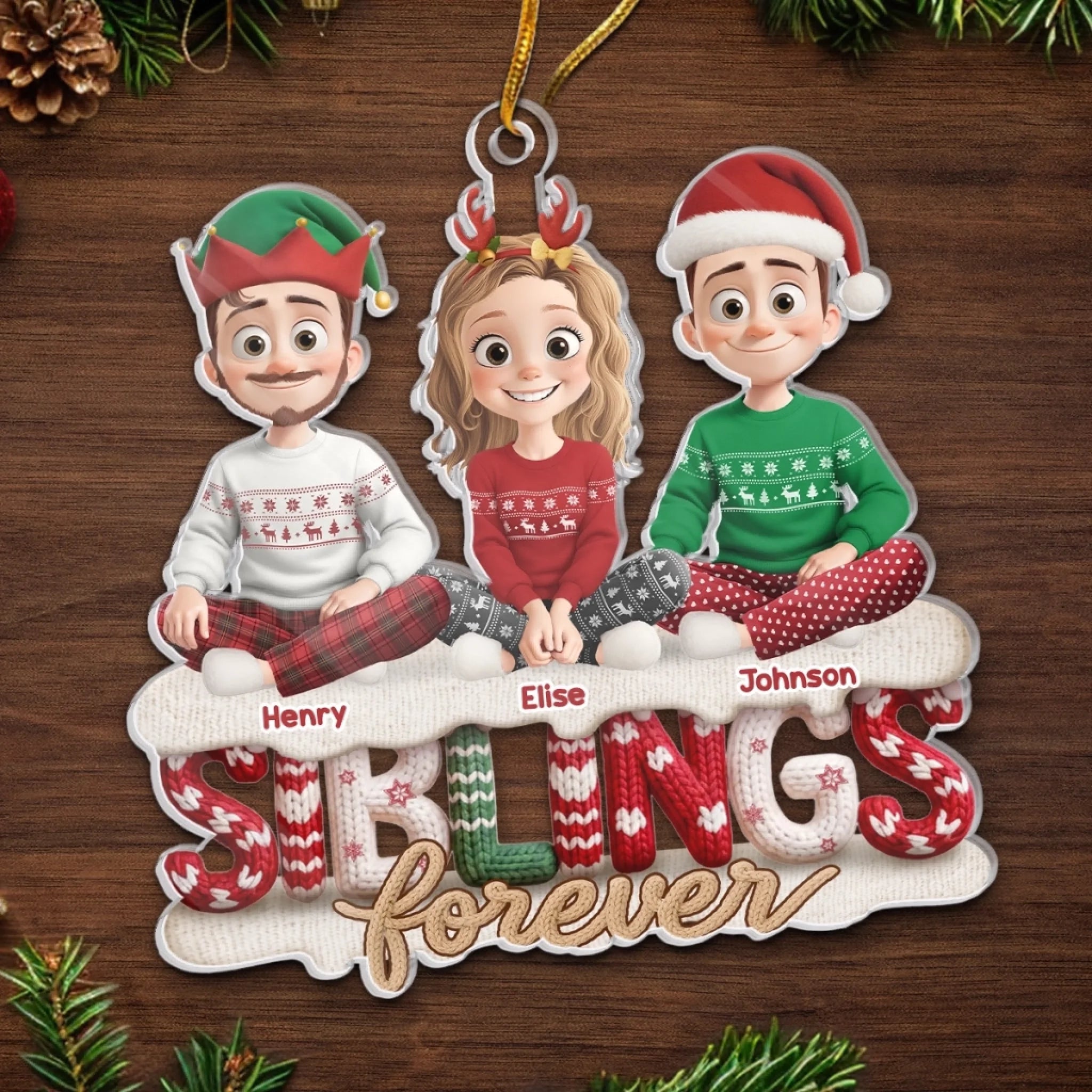 Custom Crochet Acrylic Ornament - Personalized Christmas Birthday Gifts For Brother, Sister - Built In Best Friend For Life