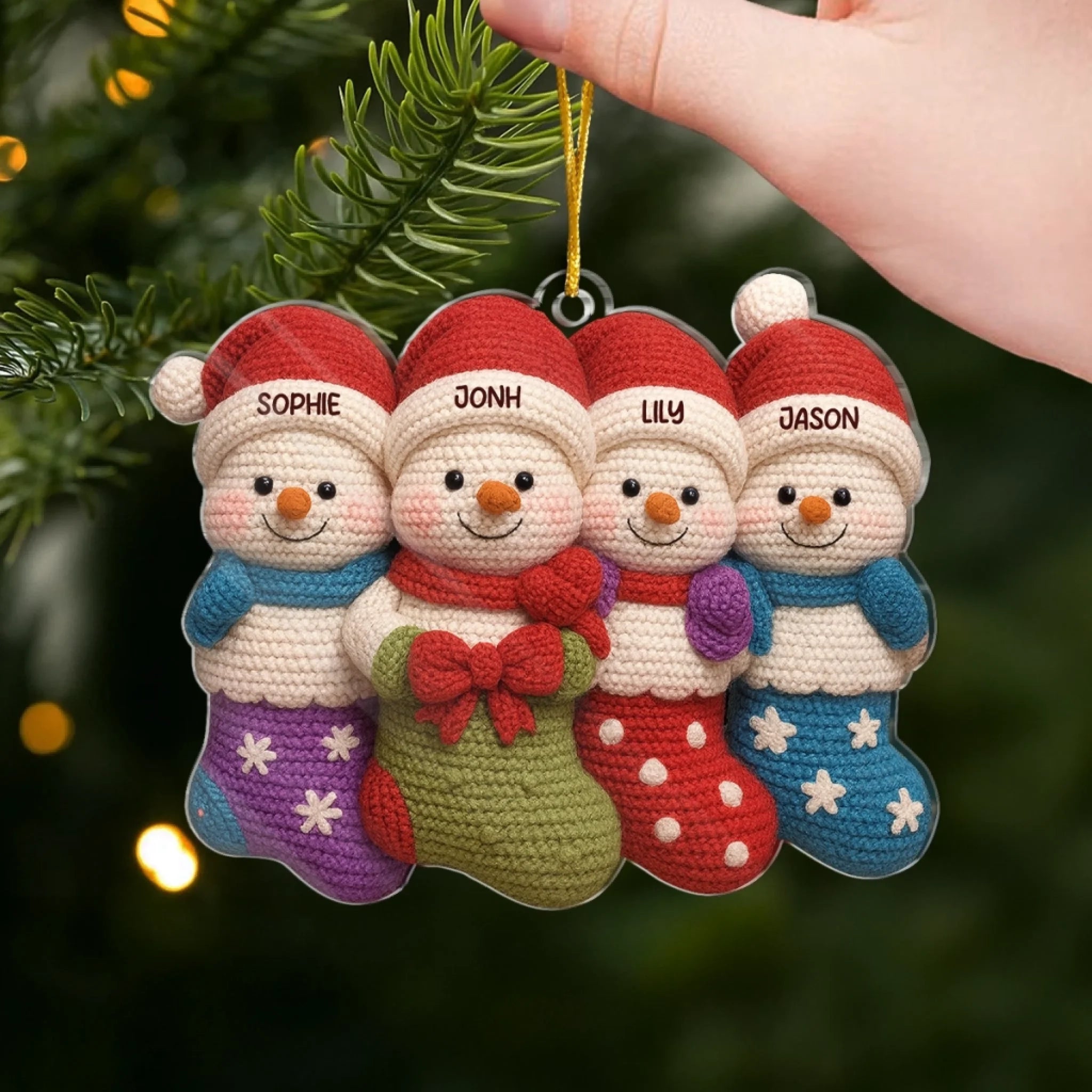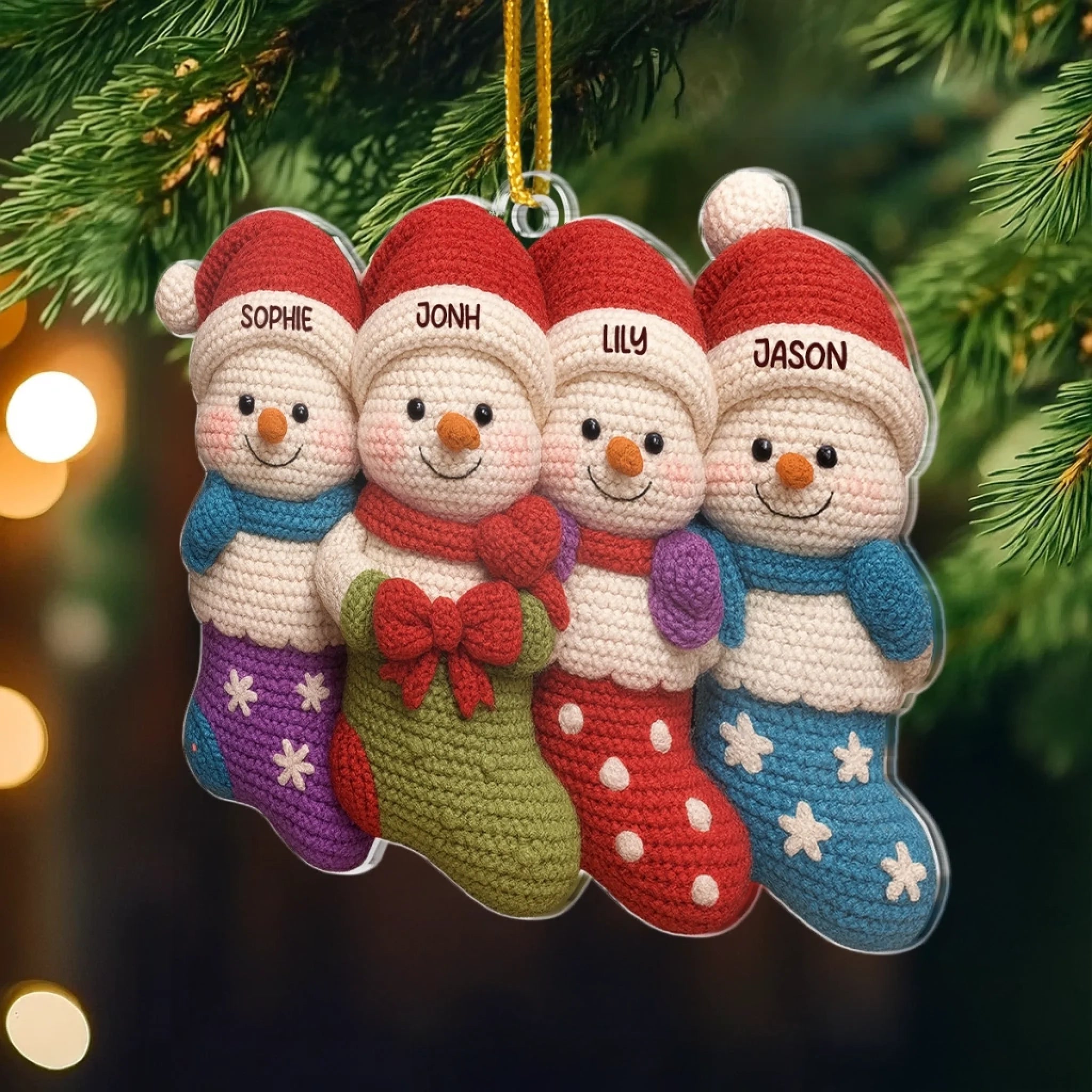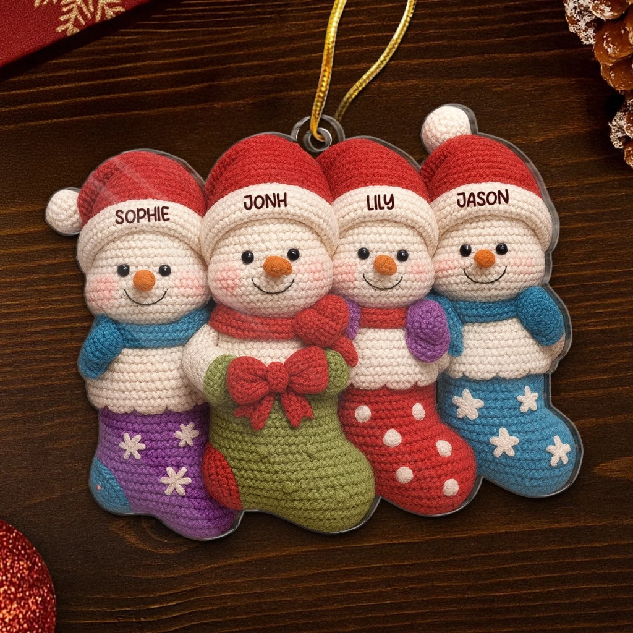 Custom Crochet Acrylic Ornament - Personalized Christmas Birthday Gifts For Mom, Dad, Brother, Sister, Kids - Christmas Cuties In Stockings