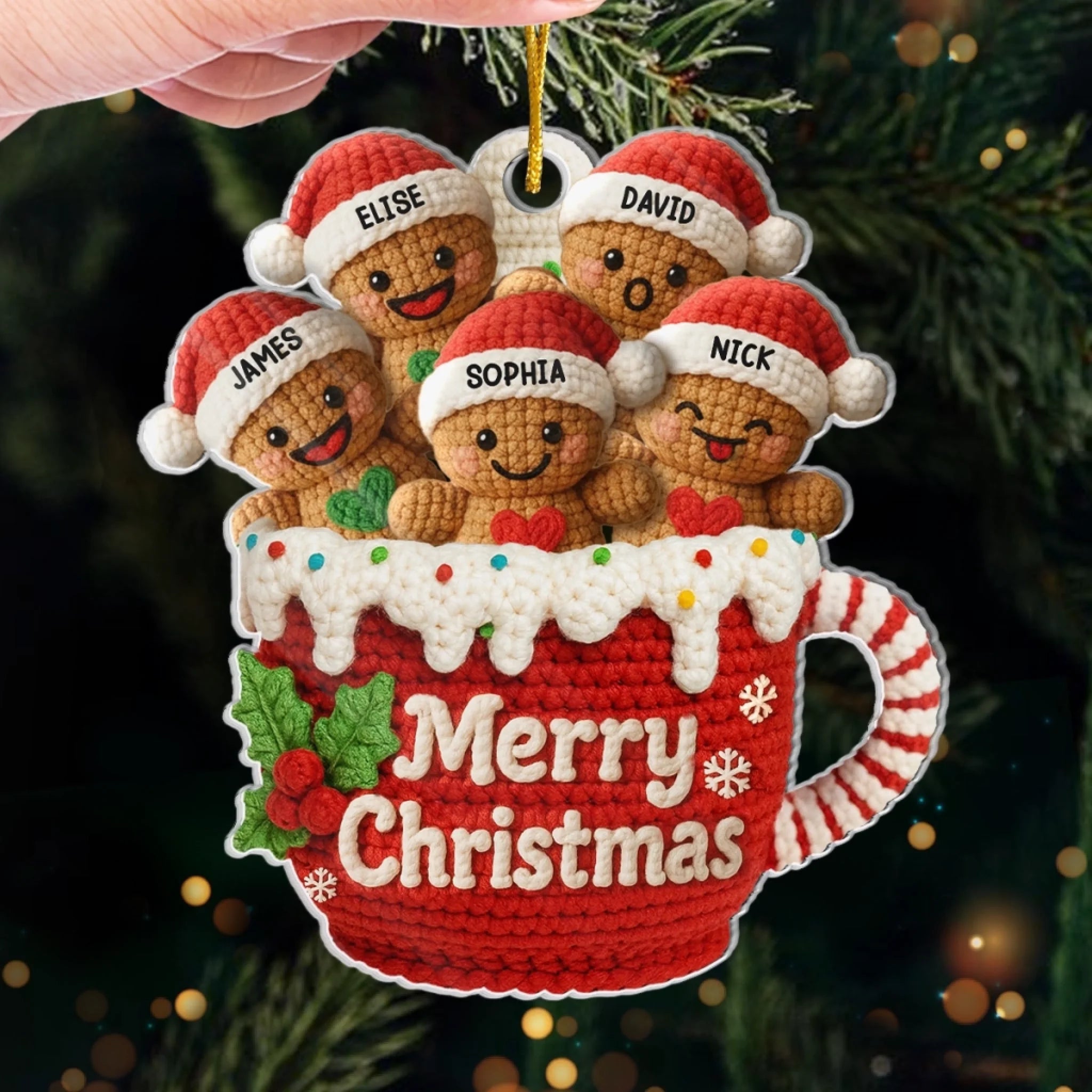 Custom Crochet Acrylic Ornament - Personalized Christmas Birthday Gifts For Mom, Dad, Brother, Sister, Kids - Love Gathers Around Us