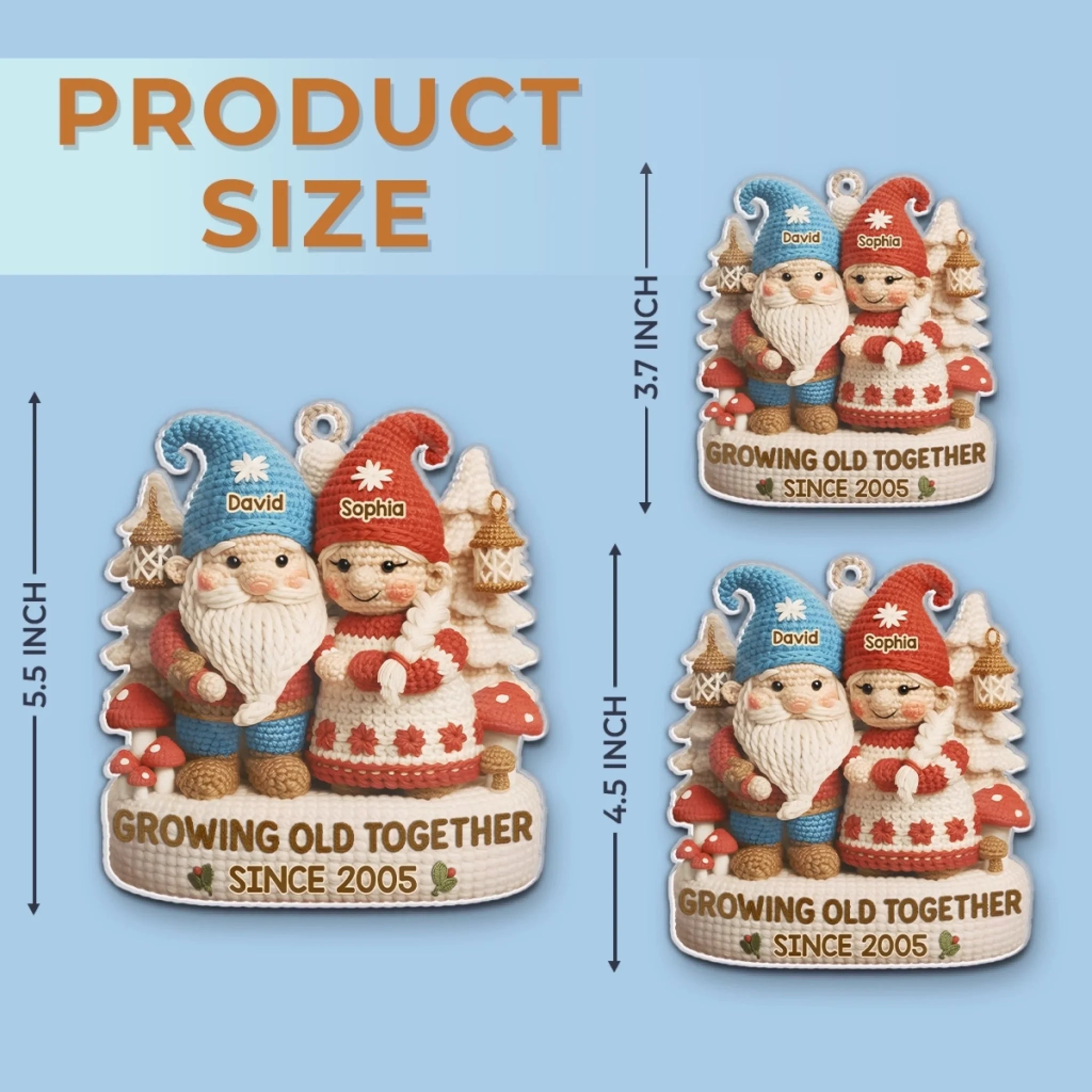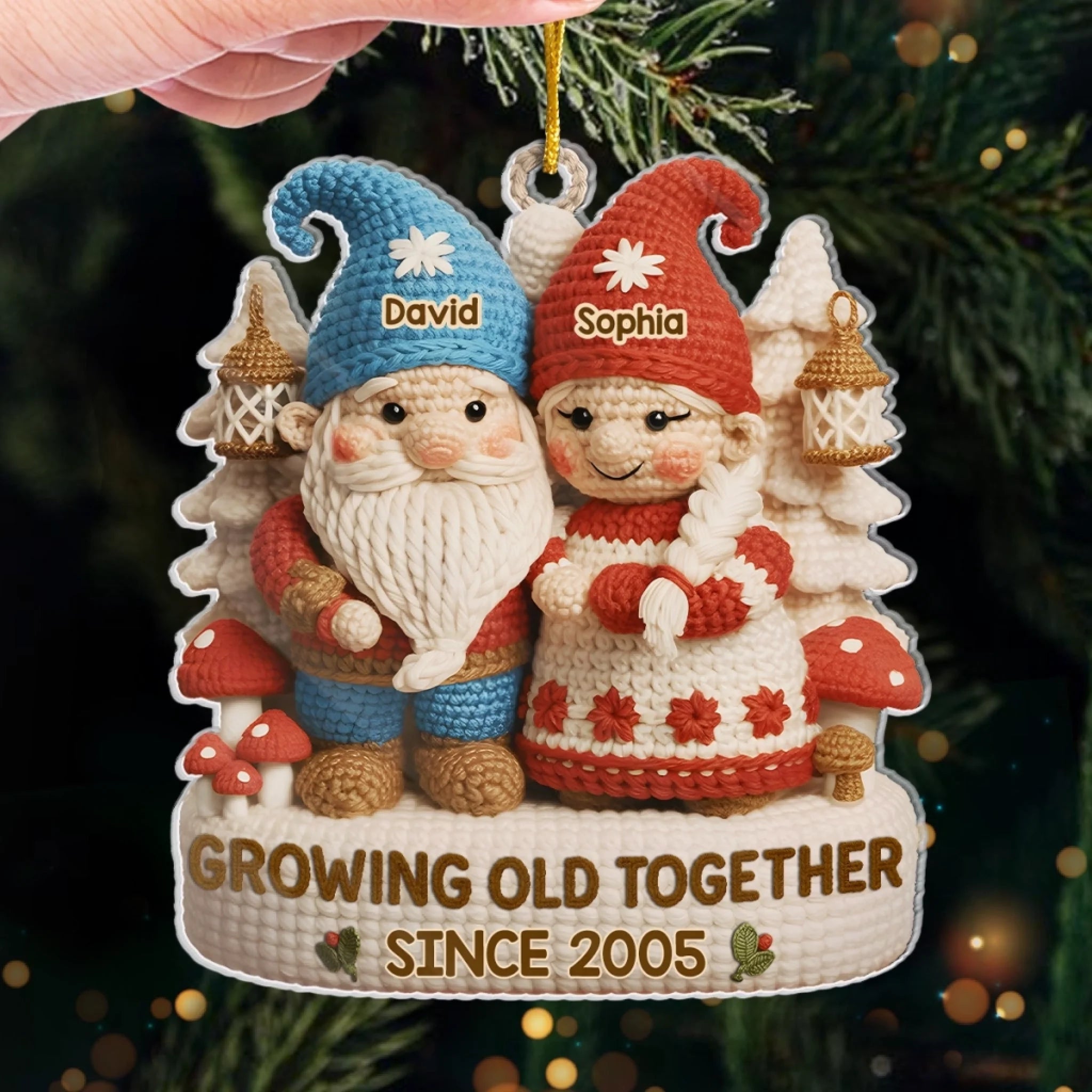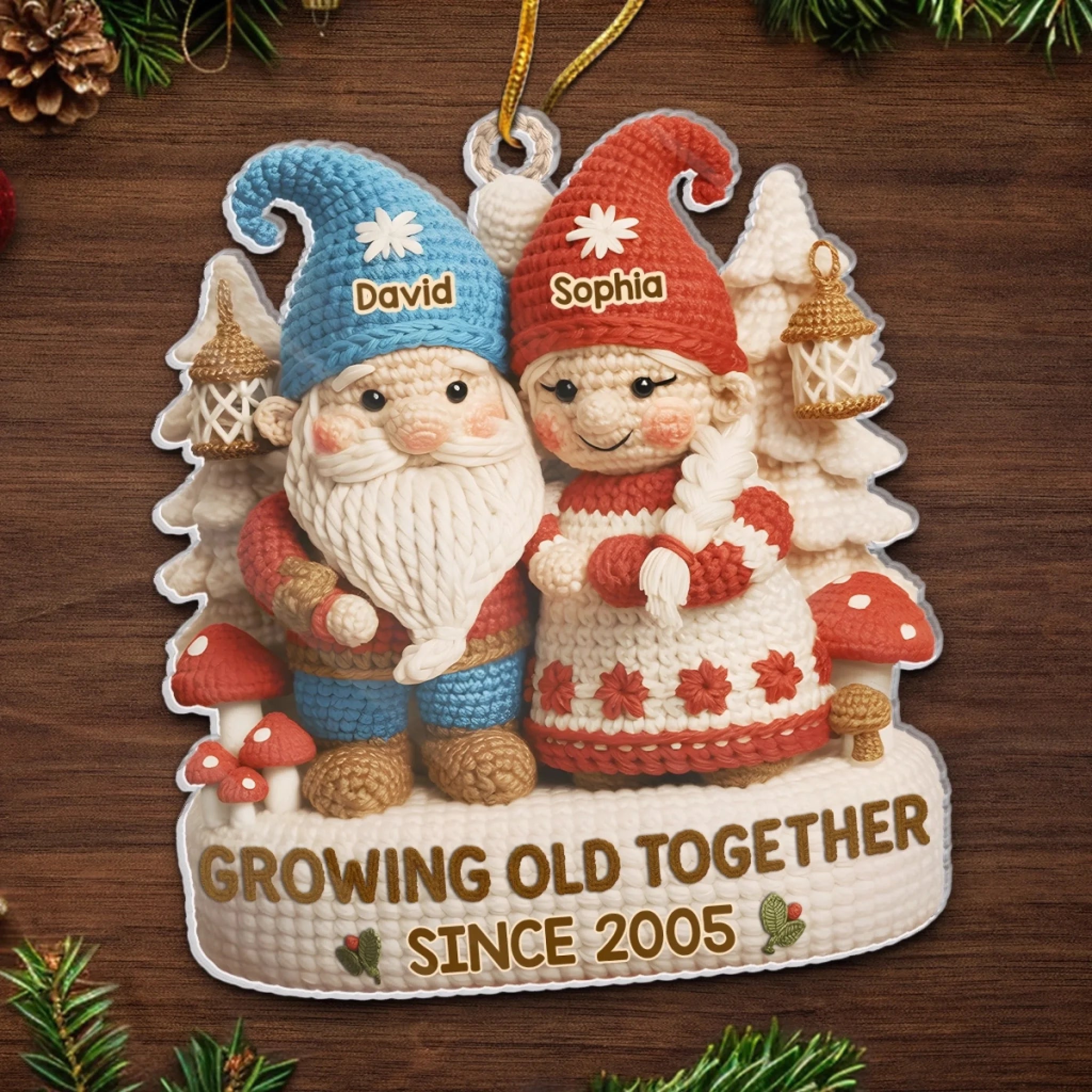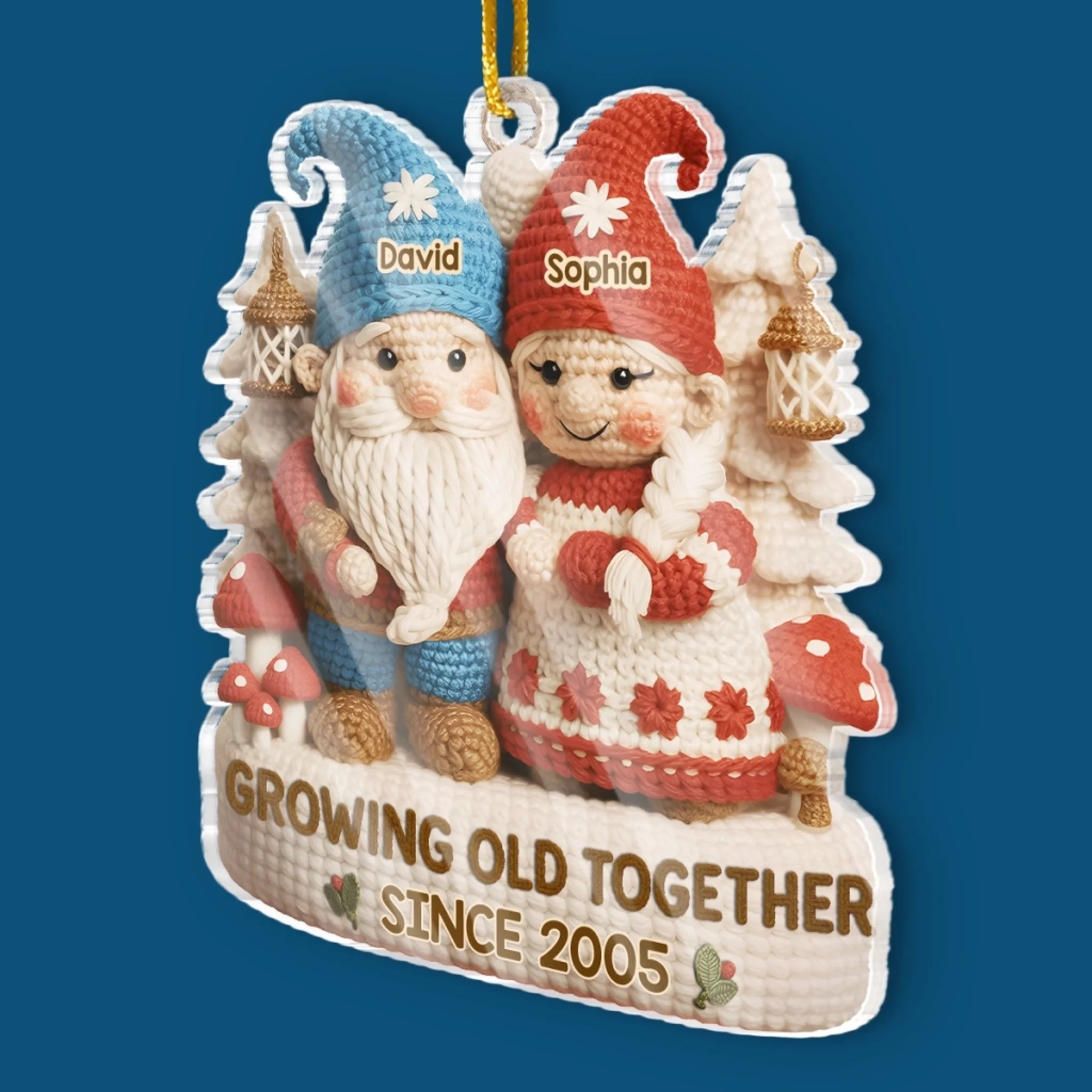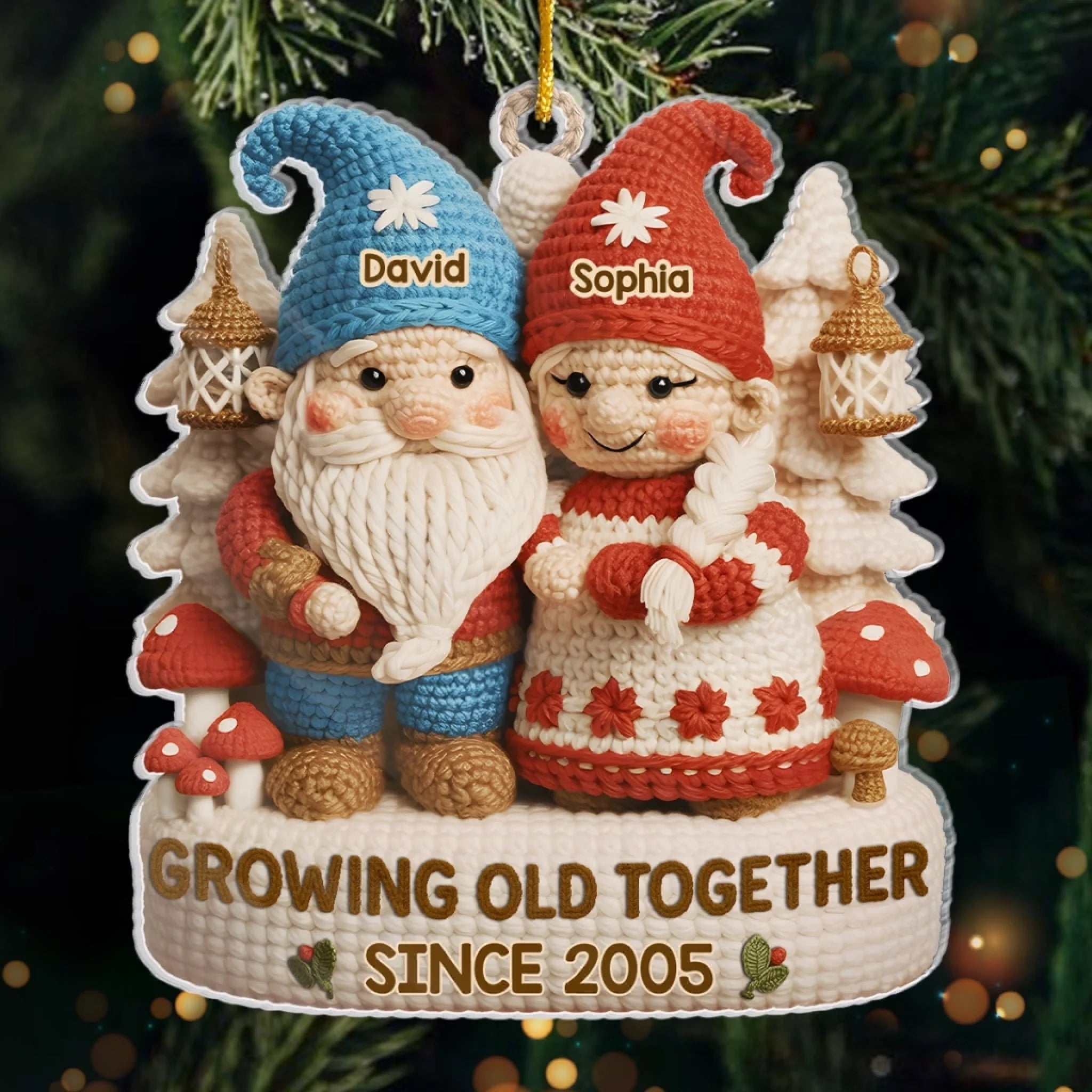Custom Crochet Gnome Acrylic Ornament - Personalized Anniversary Christmas Wedding Gifts For Husband And Wife, Him And Her - Handmade Love That Lasts A Lifetime