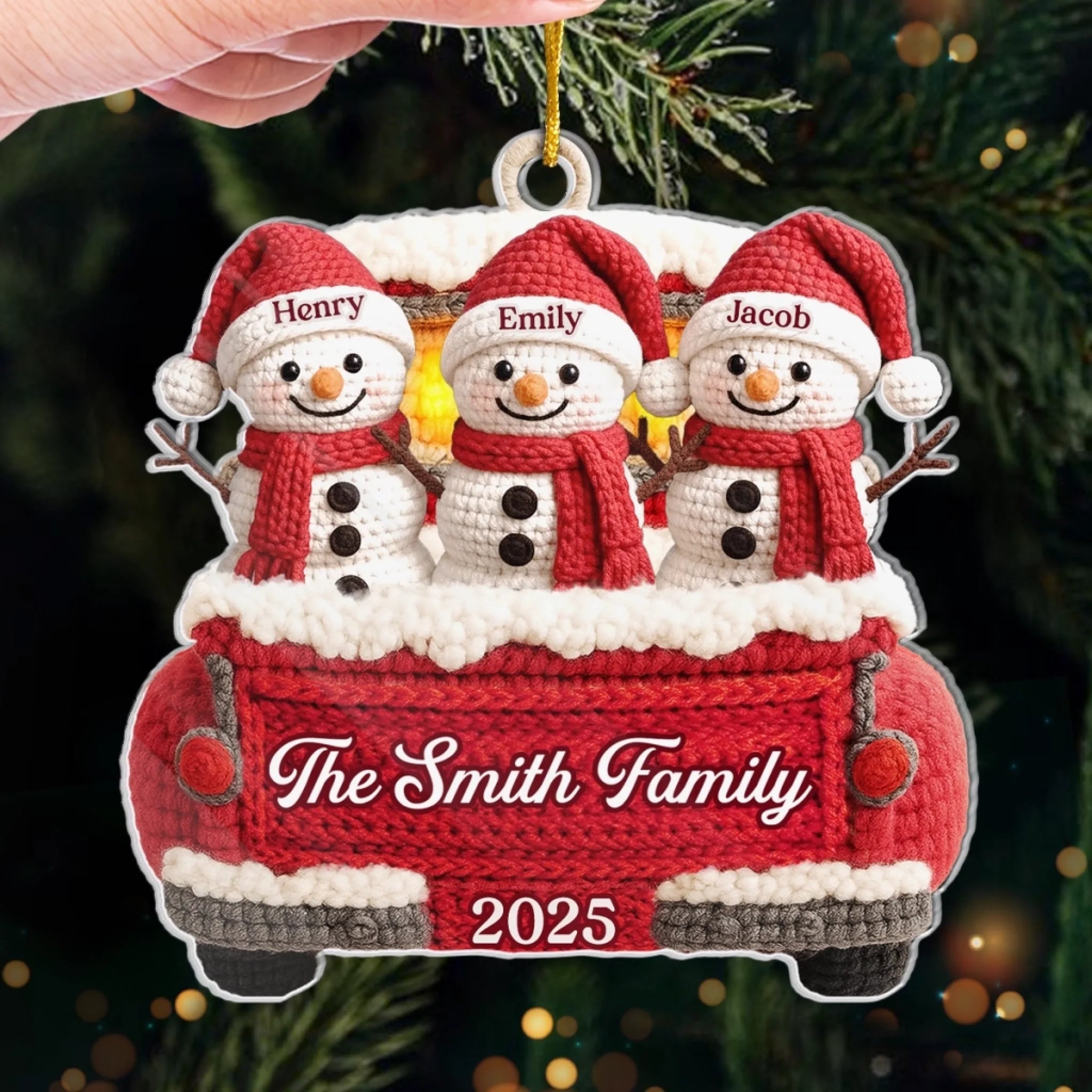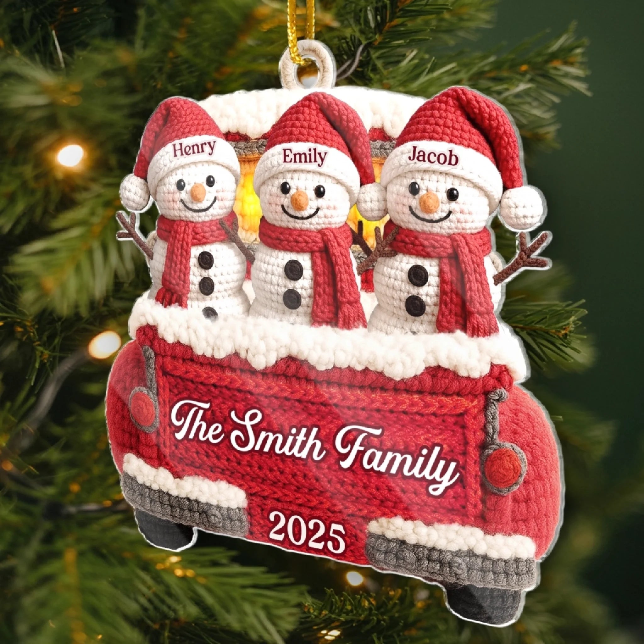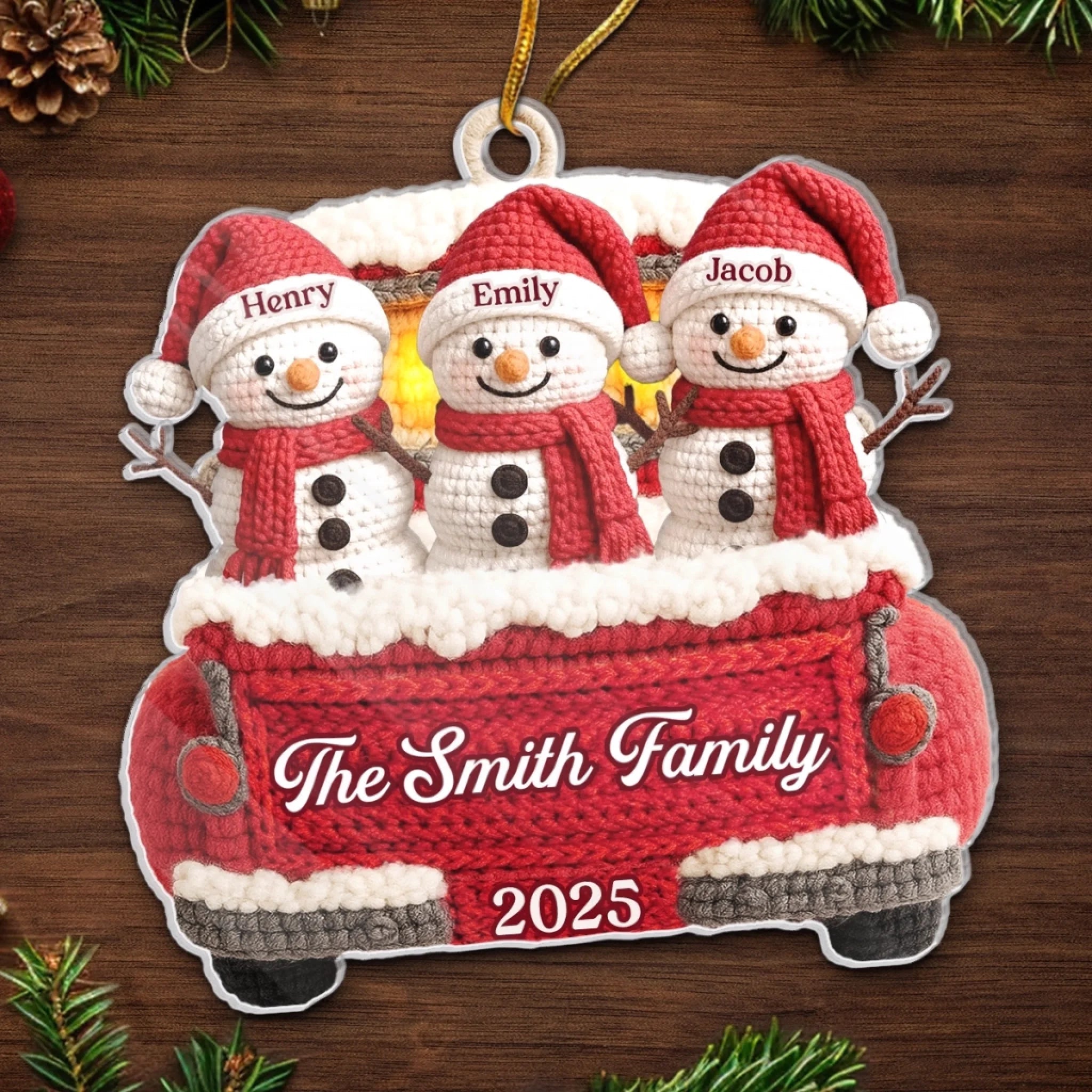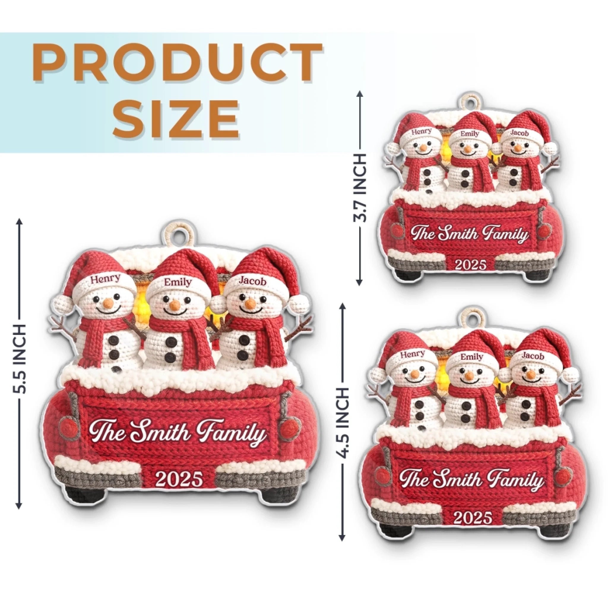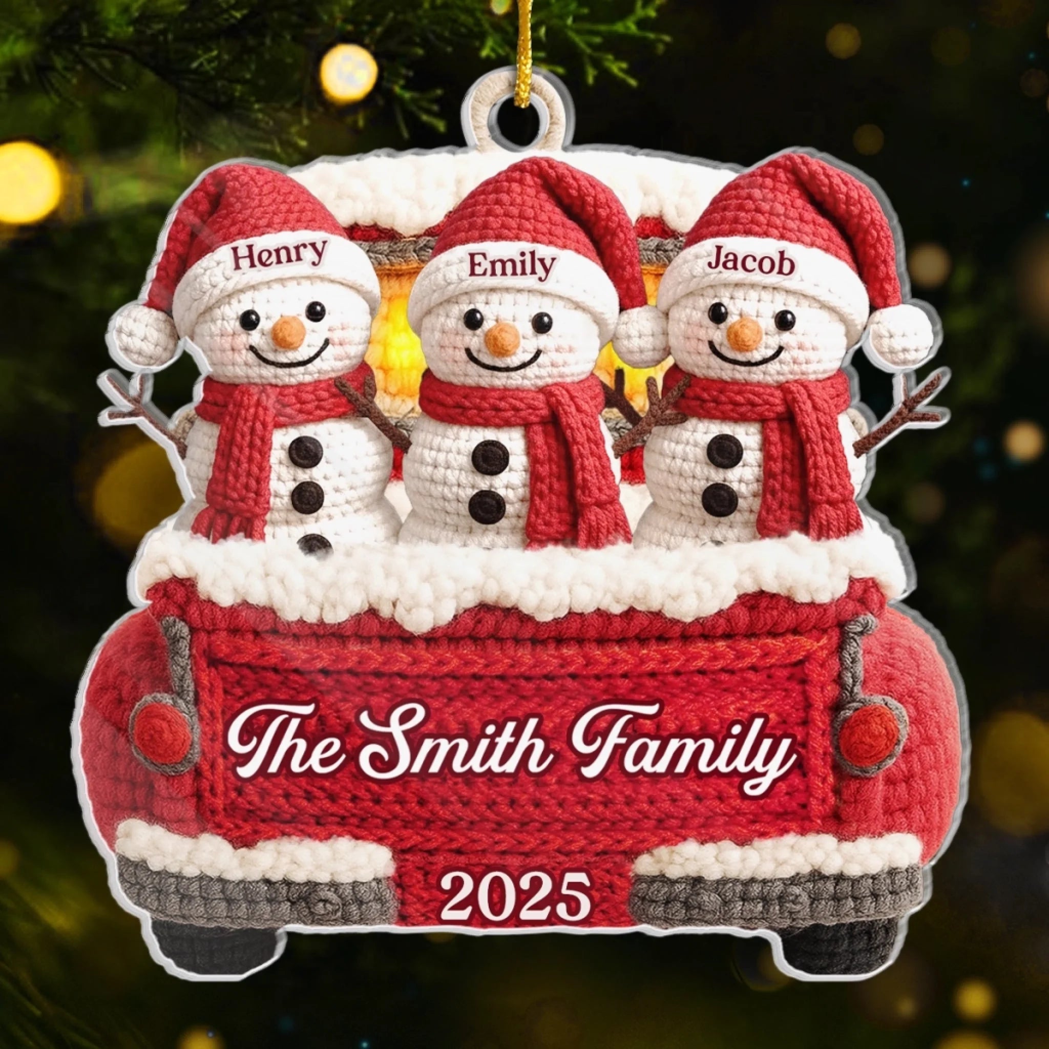 Custom Crochet Snowman Acrylic Ornament - Personalized Christmas Birthday Gifts For Mom, Dad, Brother, Sister, Kids - Our Family Our Treasure