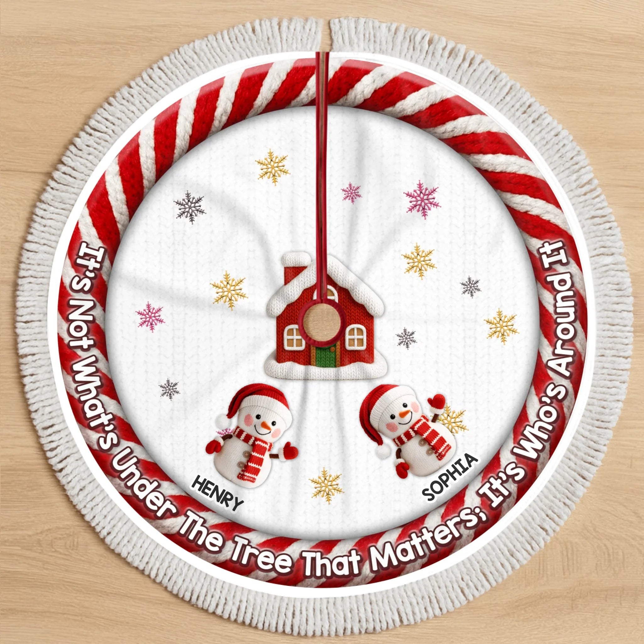 Custom Crochet Snowman Tree Skirt - Personalized Christmas Birthday Gifts For Mom, Dad, Brother, Sister, Kids - Our Christmas Our Story