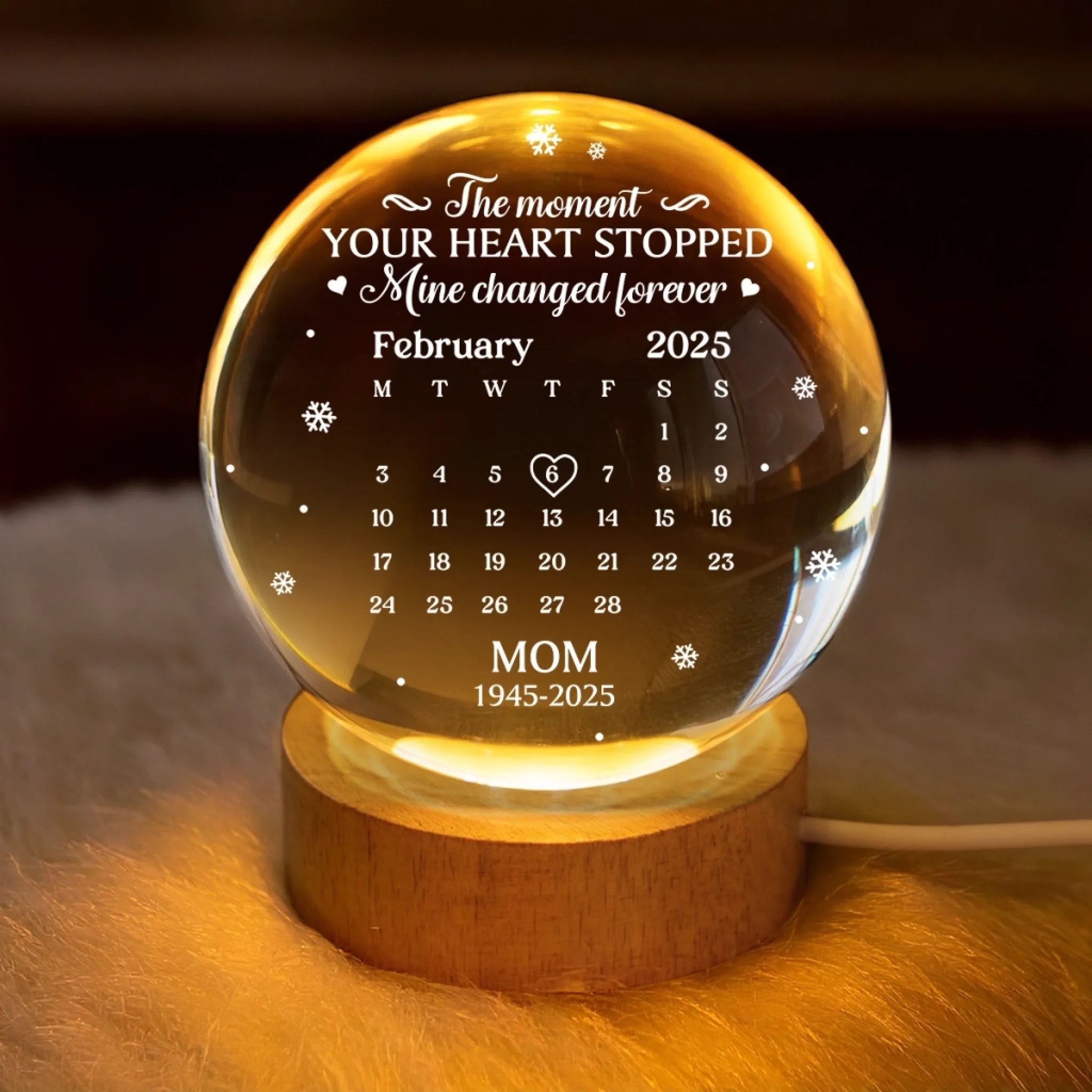 This crystal globe lamp features a beautifully crafted 3D engraving illuminated by soft LED lighting. A perfect blend of aesthetics and functionality, this crystal globe lamp enhances any space with its soft, ambient glow. This is the perfect gift for anyone, suitable for all occasions: birthdays, holidays, anniversaries, graduations, Valentine's Day, Mother's Day, Father's Day, and just because! Whether for friends, family, or that special someone, this versatile gift is guaranteed to bring joy and make lasting memories.