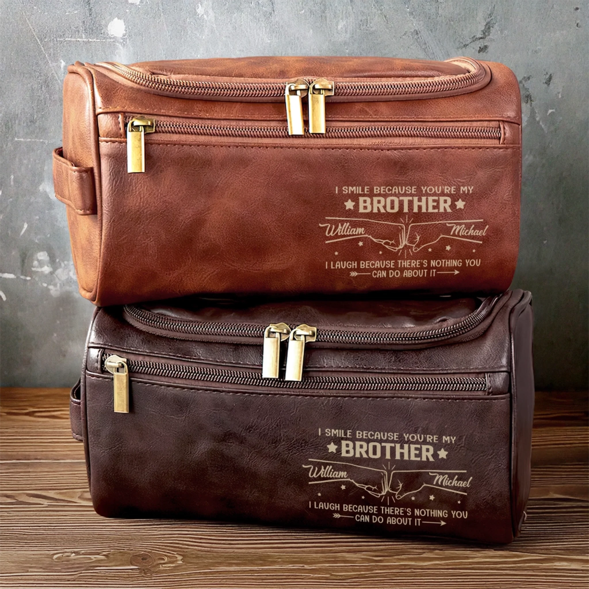 Custom Engraved Leather Toiletry Bag - Personalized Birthday Gifts For Brother - Always Got Your Back