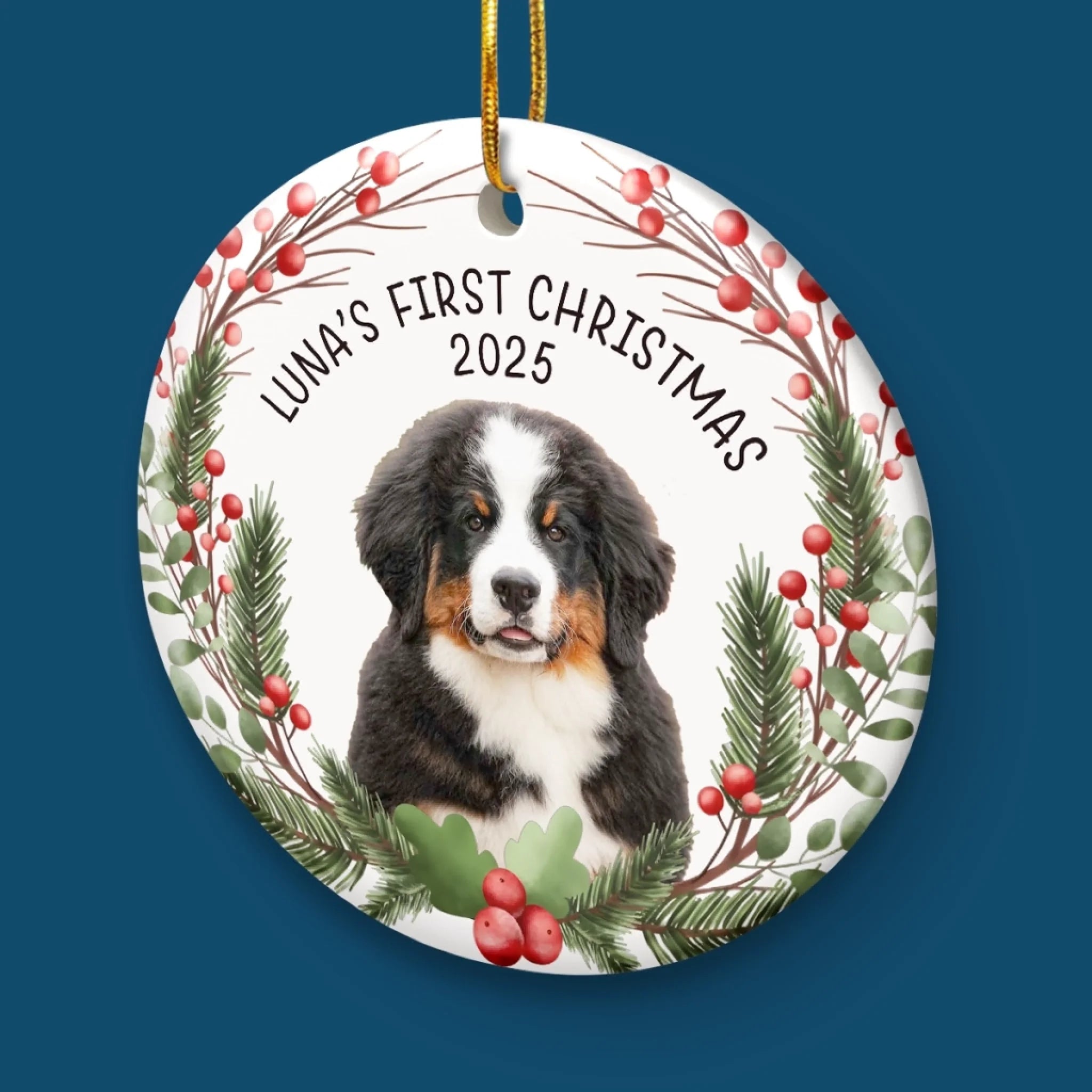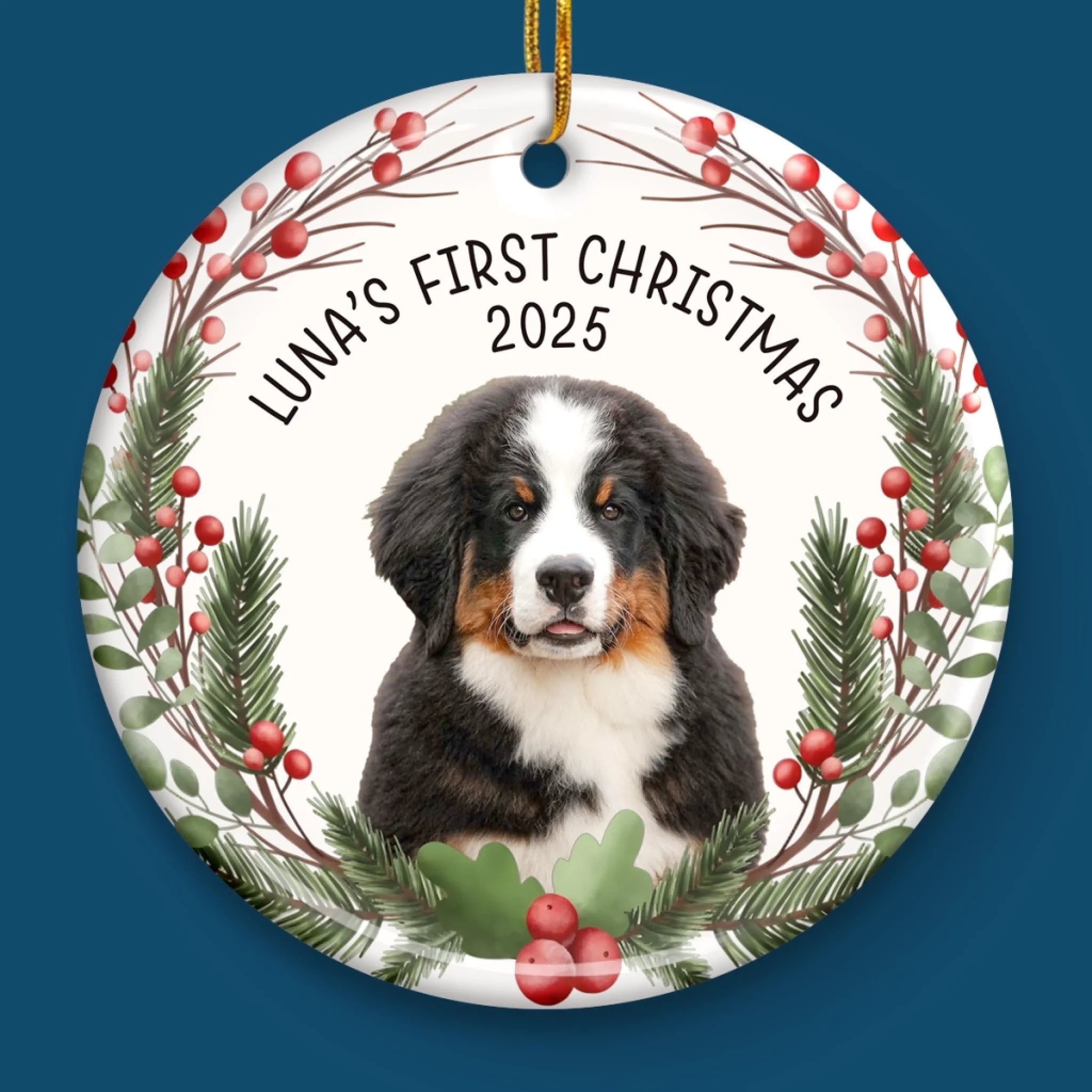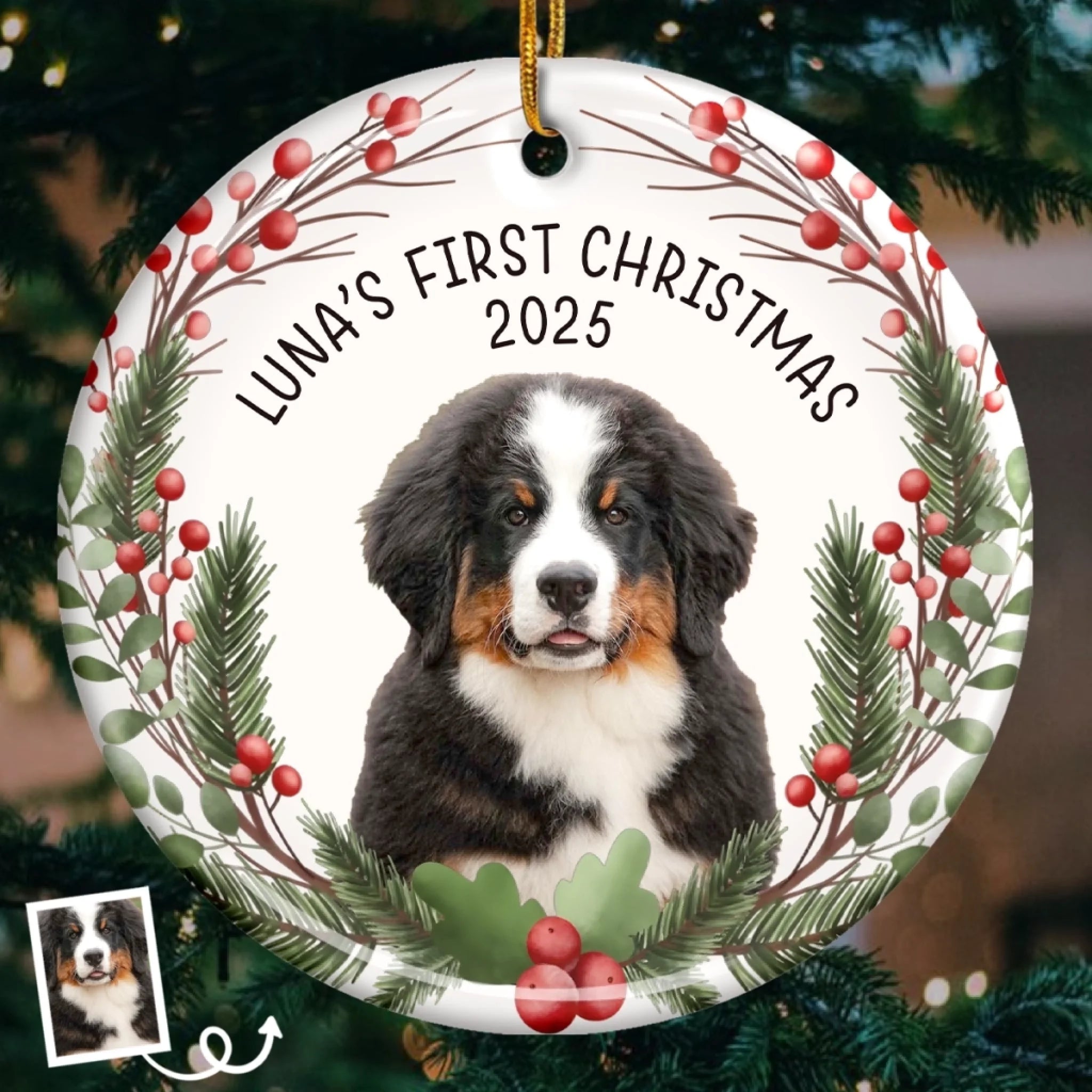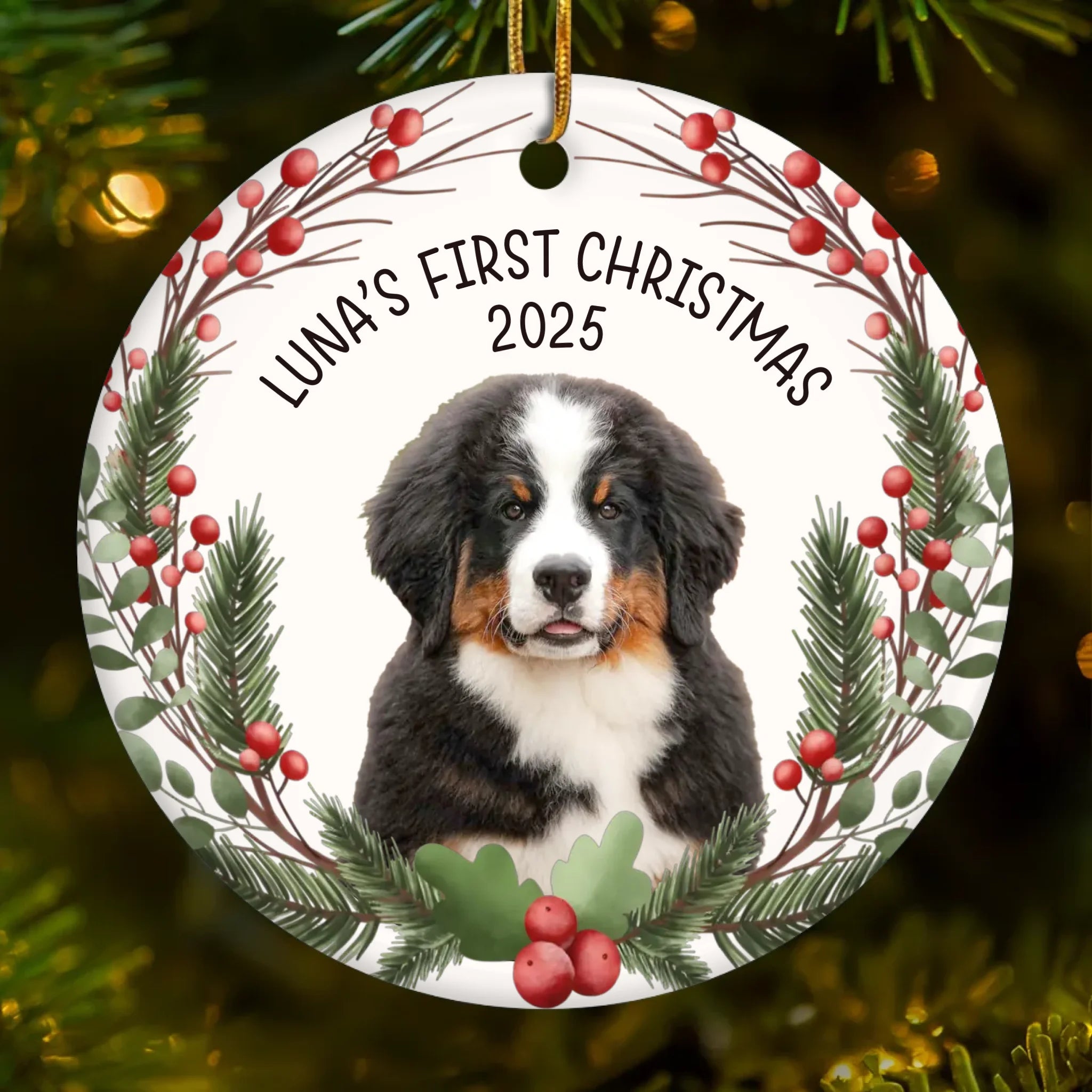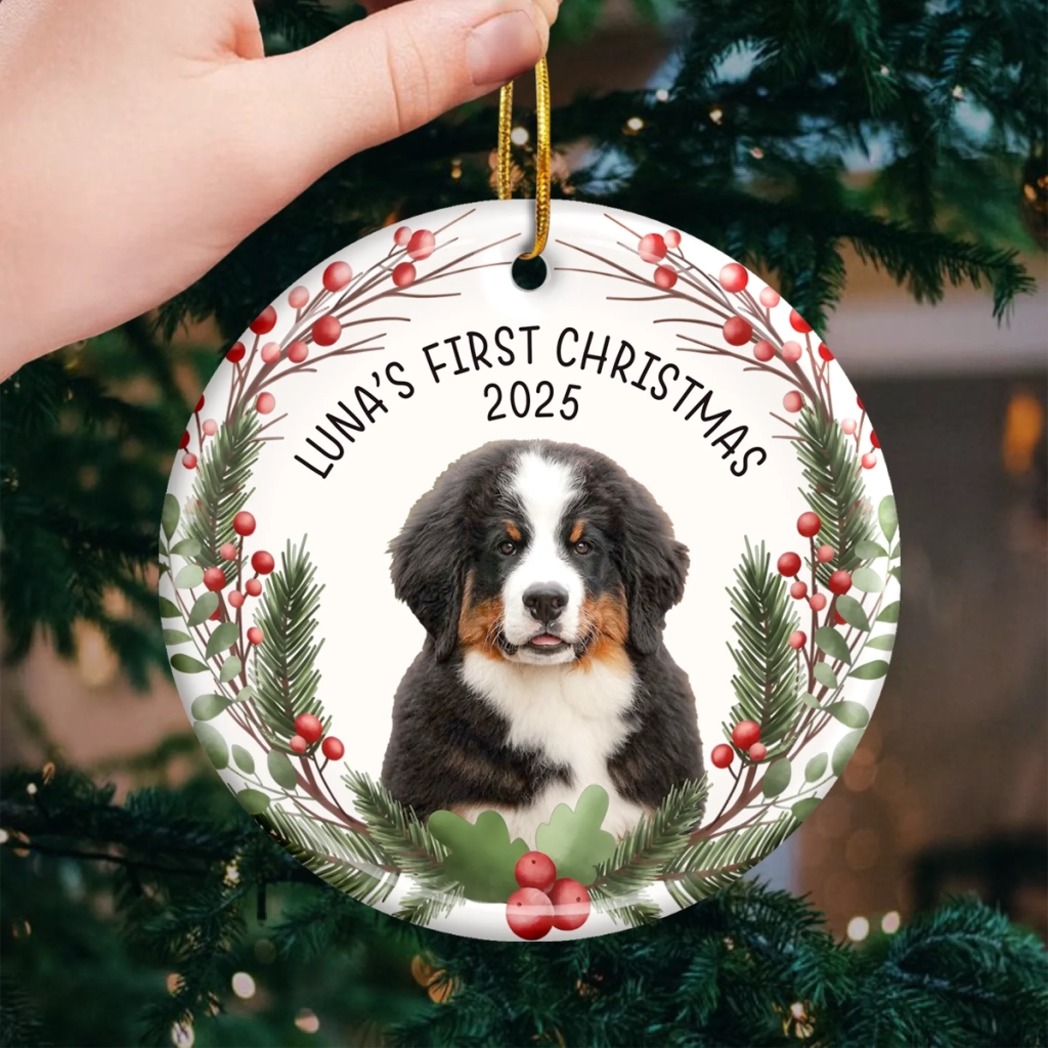 Custom First Christmas Pet Ceramic Ornament - Personalized Christmas Birthday Gifts For Dog Lovers, Cat Lovers, Pet Dad And Mom, New Pet Ornament - Barking Through The Snow
