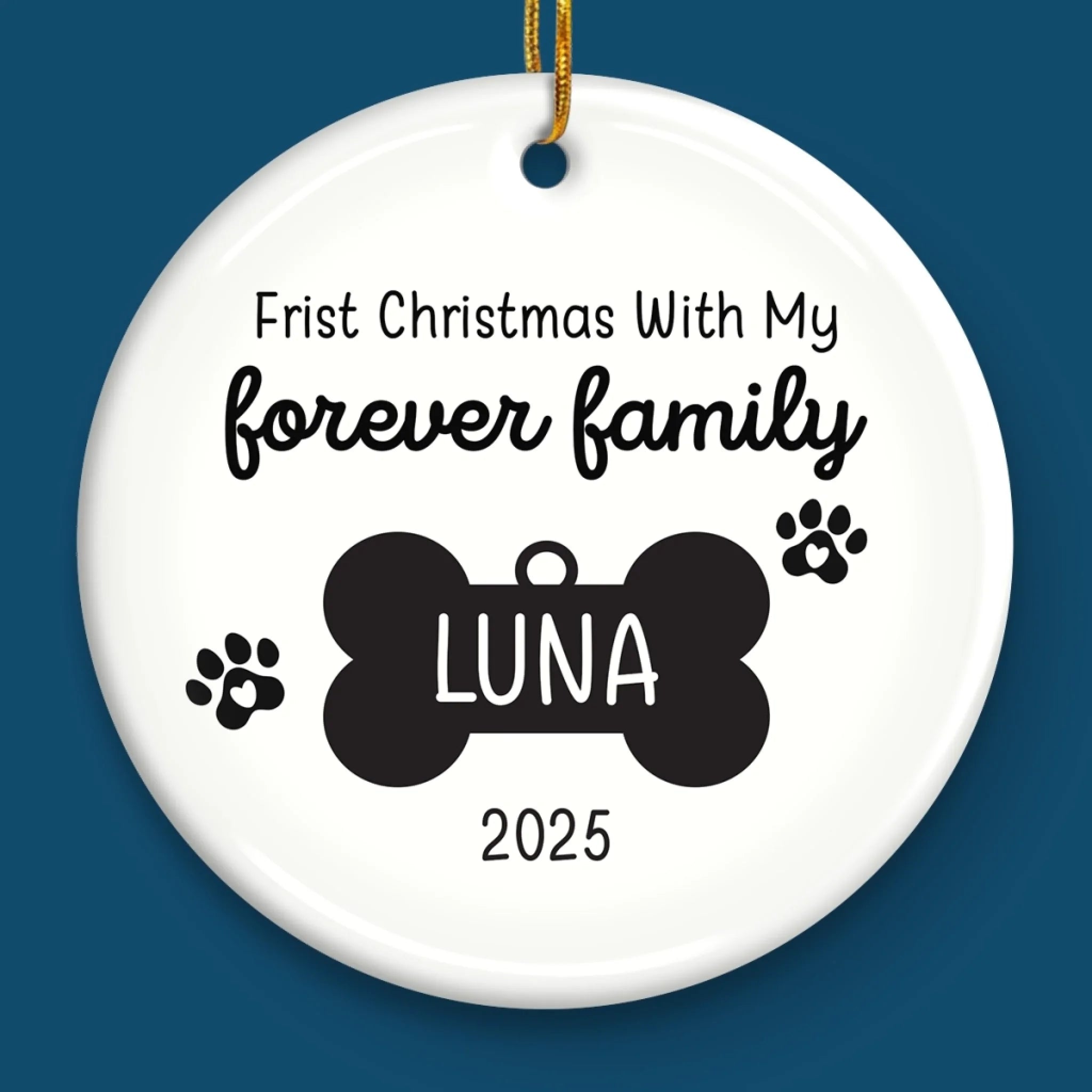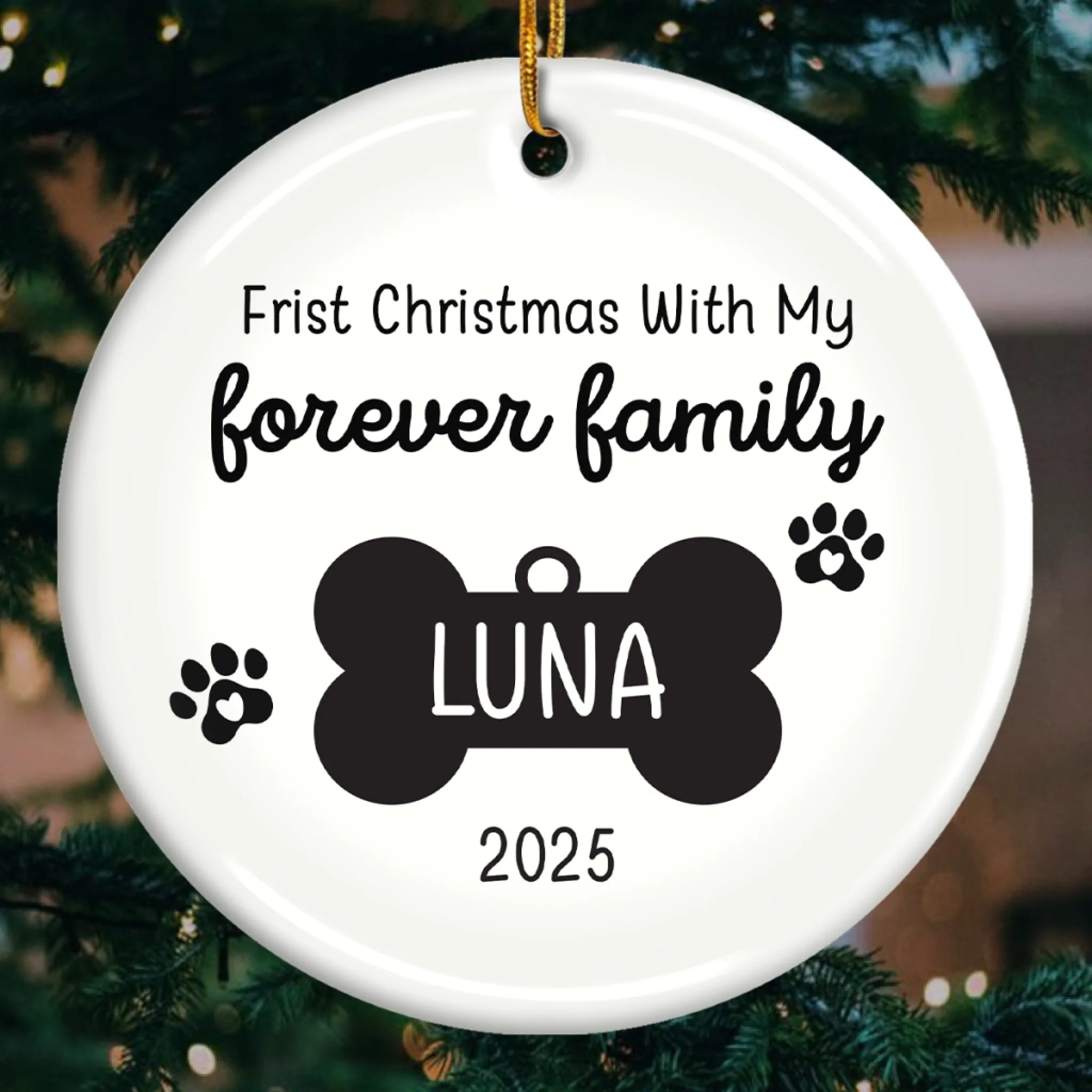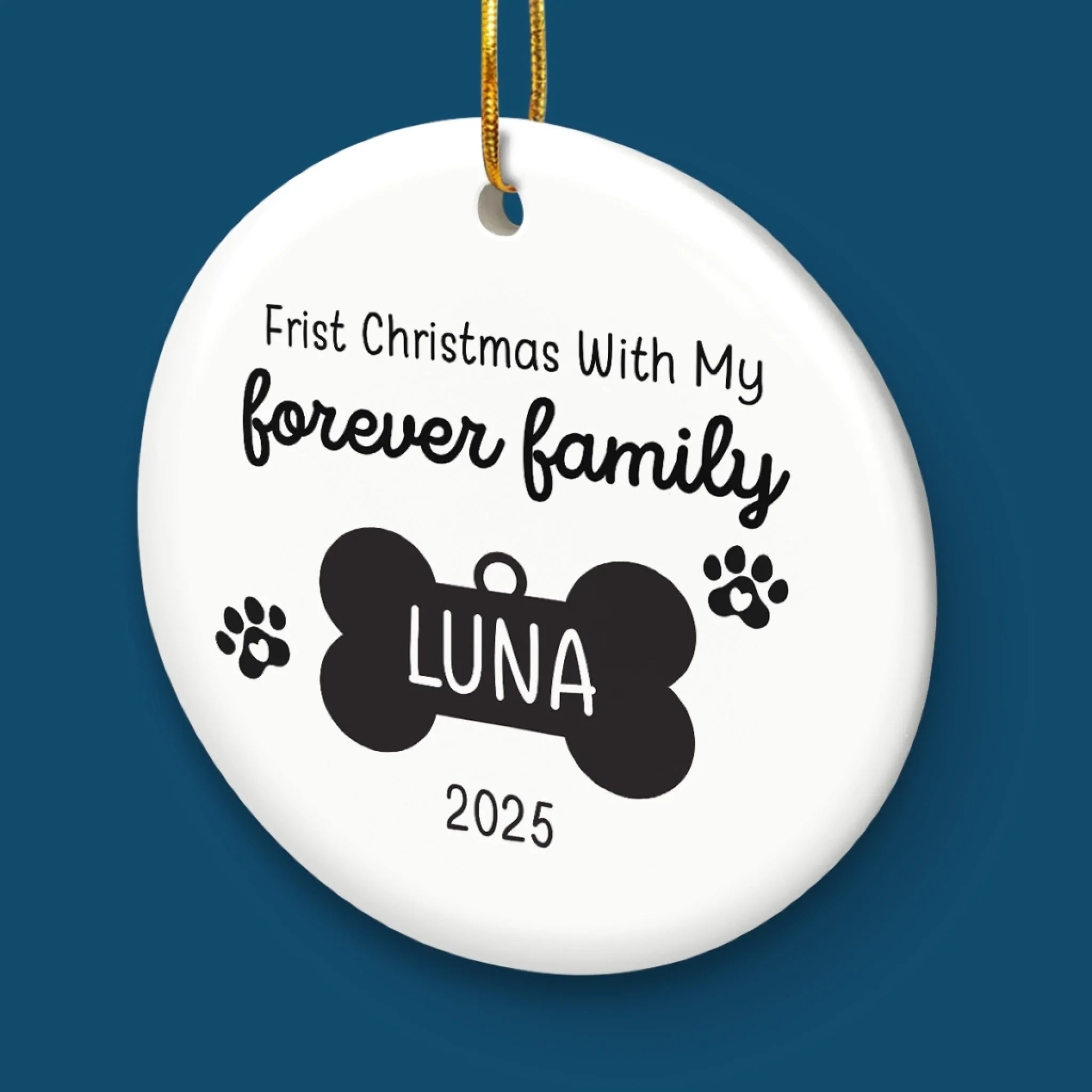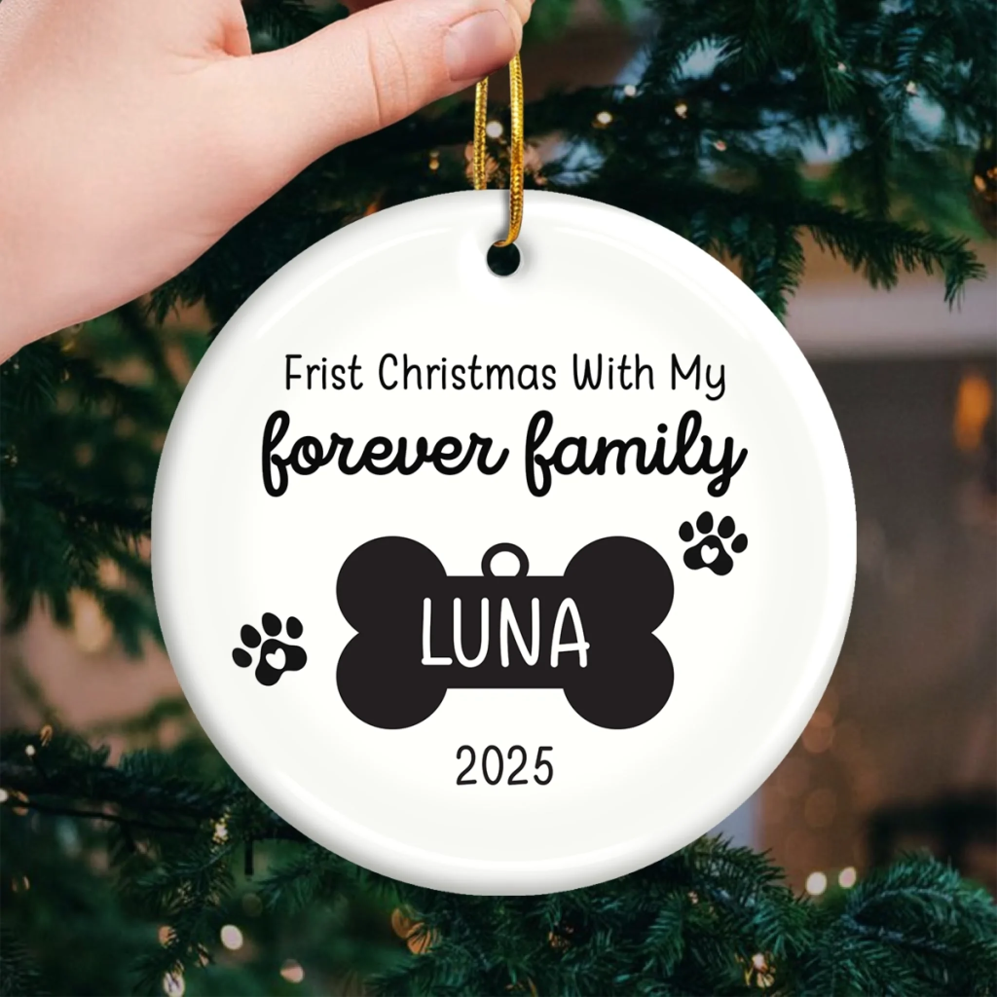 Custom First Christmas Pet Ceramic Ornament - Personalized Christmas Birthday Gifts For Dog Lovers, Cat Lovers, Pet Dad And Mom, New Pet Ornament - New Fur In Family