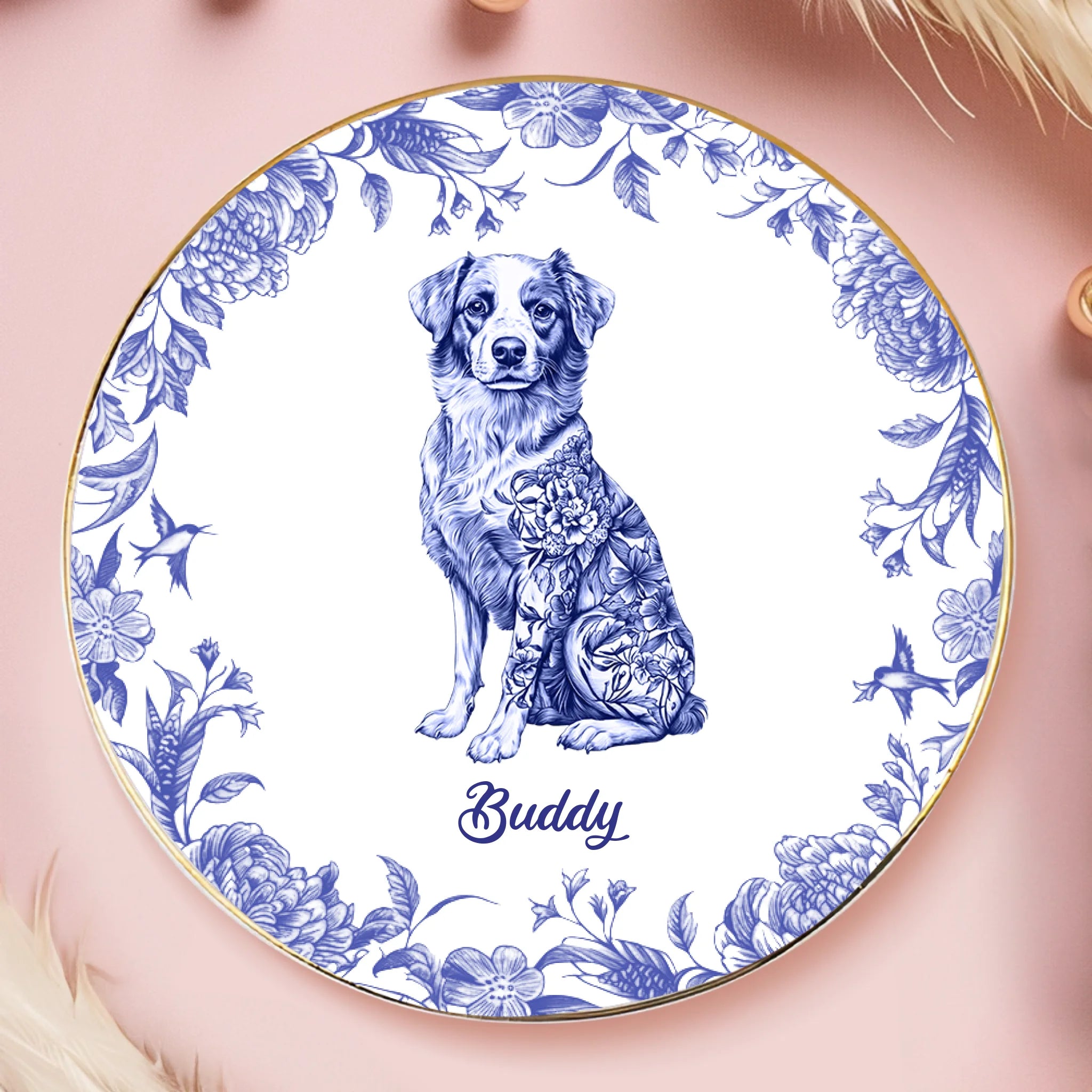 Custom Full-Print Round Jewelry Dish - Personalized Father's Day Birthday Gifts For Dog Cat Lovers, Dog Dad And Mom, Cat Owners - Floral Soul, Furry Heart