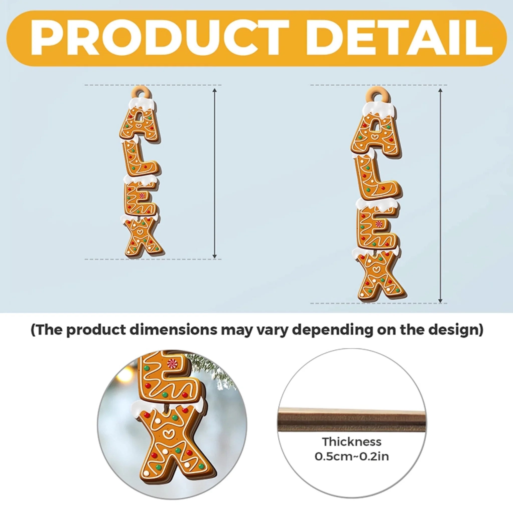 Custom Gingerbread Letter Wooden Ornament - Personalized Christmas Birthday Gifts For Mom, Dad, Brother, Sister, Kids - One Letter At A Time