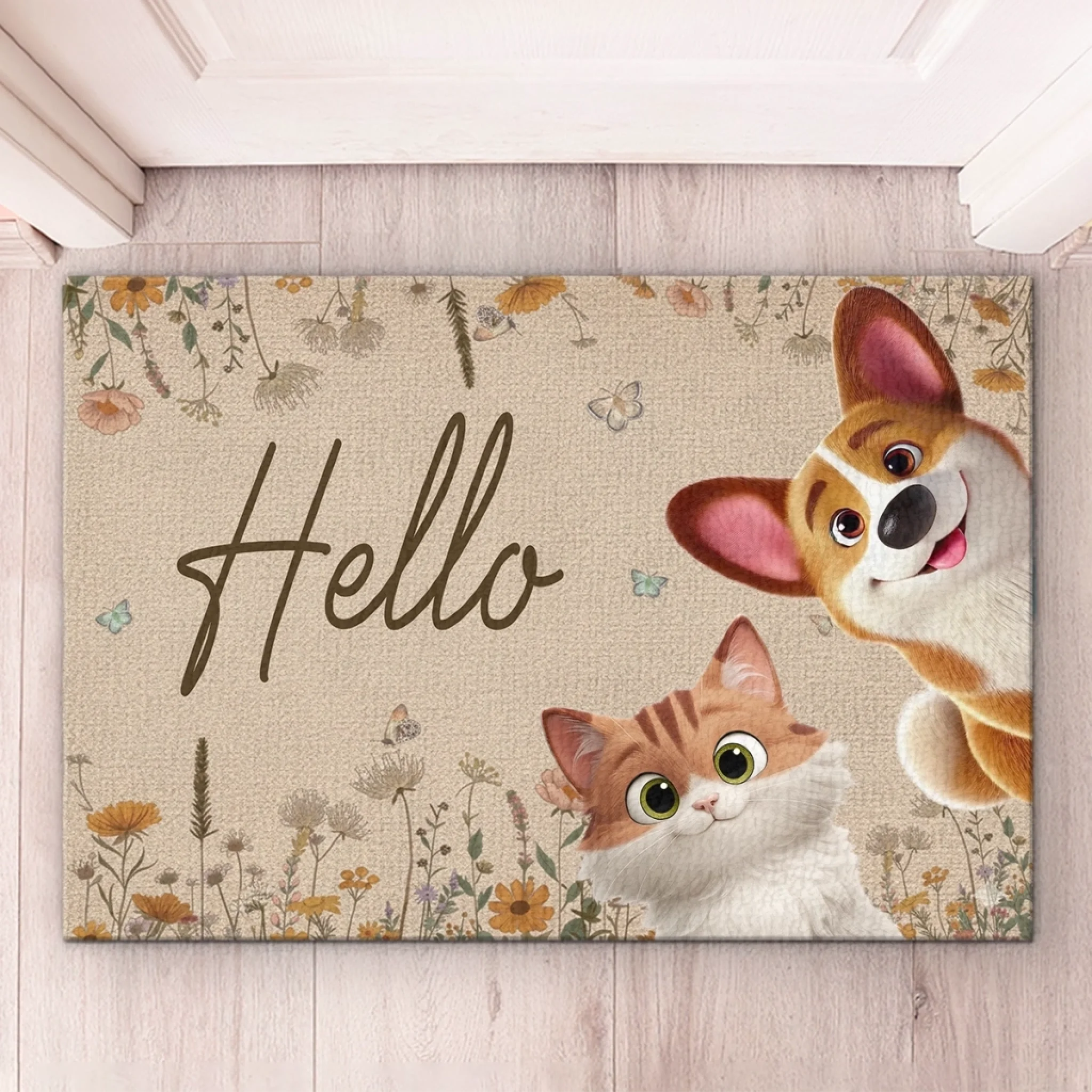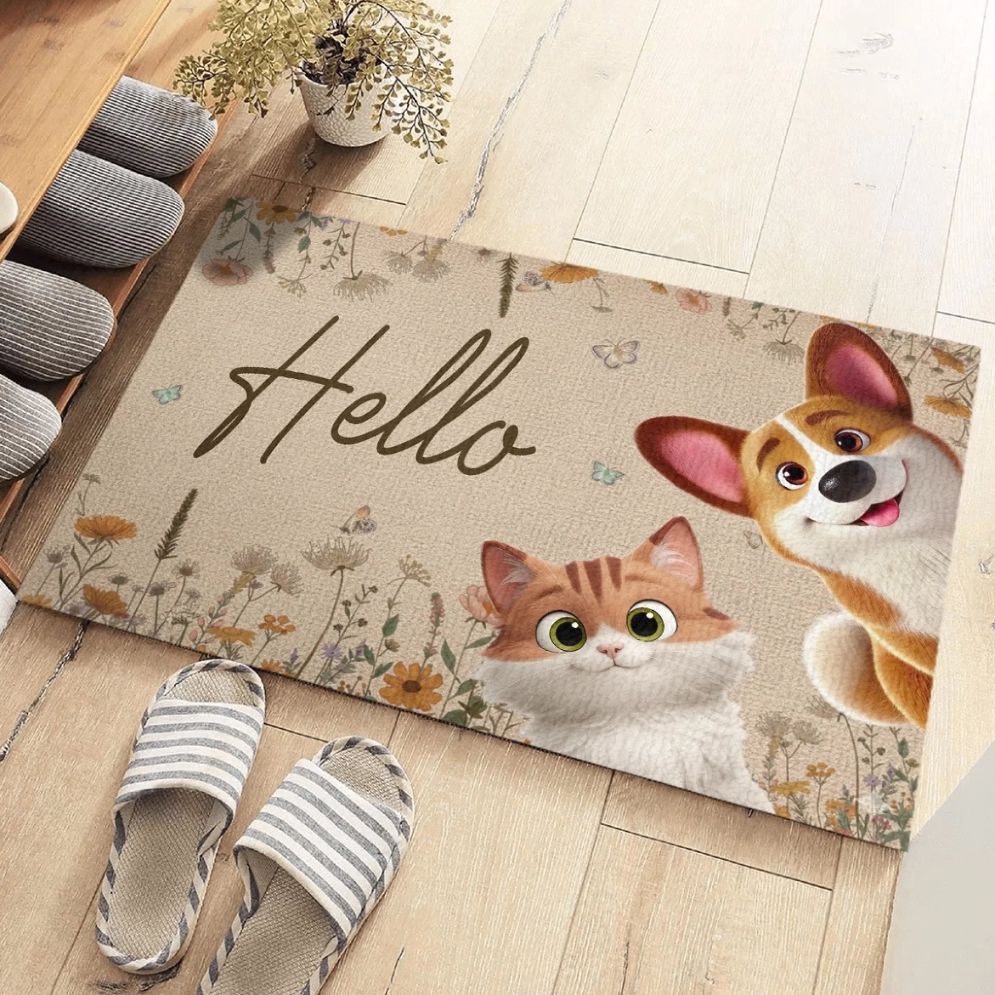Custom Home Decor Decorative Mat - Personalized Birthday Gifts For Dog Cat Lovers, Dog Dad And Mom, Cat Owners - Welcome To Our Happy Place