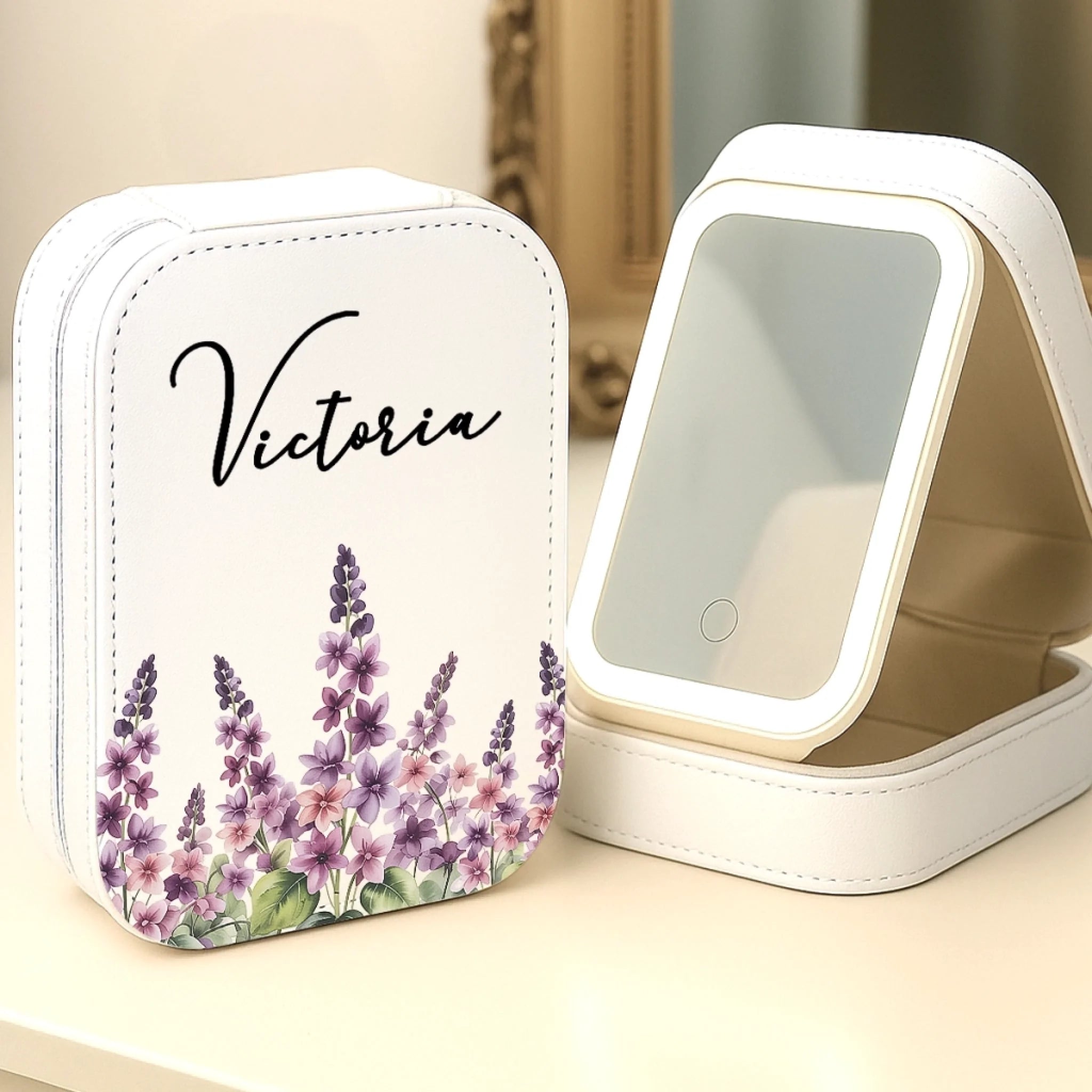 Custom Jewelry Box LED Makeup - Personalized Birthday Gifts For Besties, Sisters, BFF, Family, Yourself - Growing Into My Brighter Self