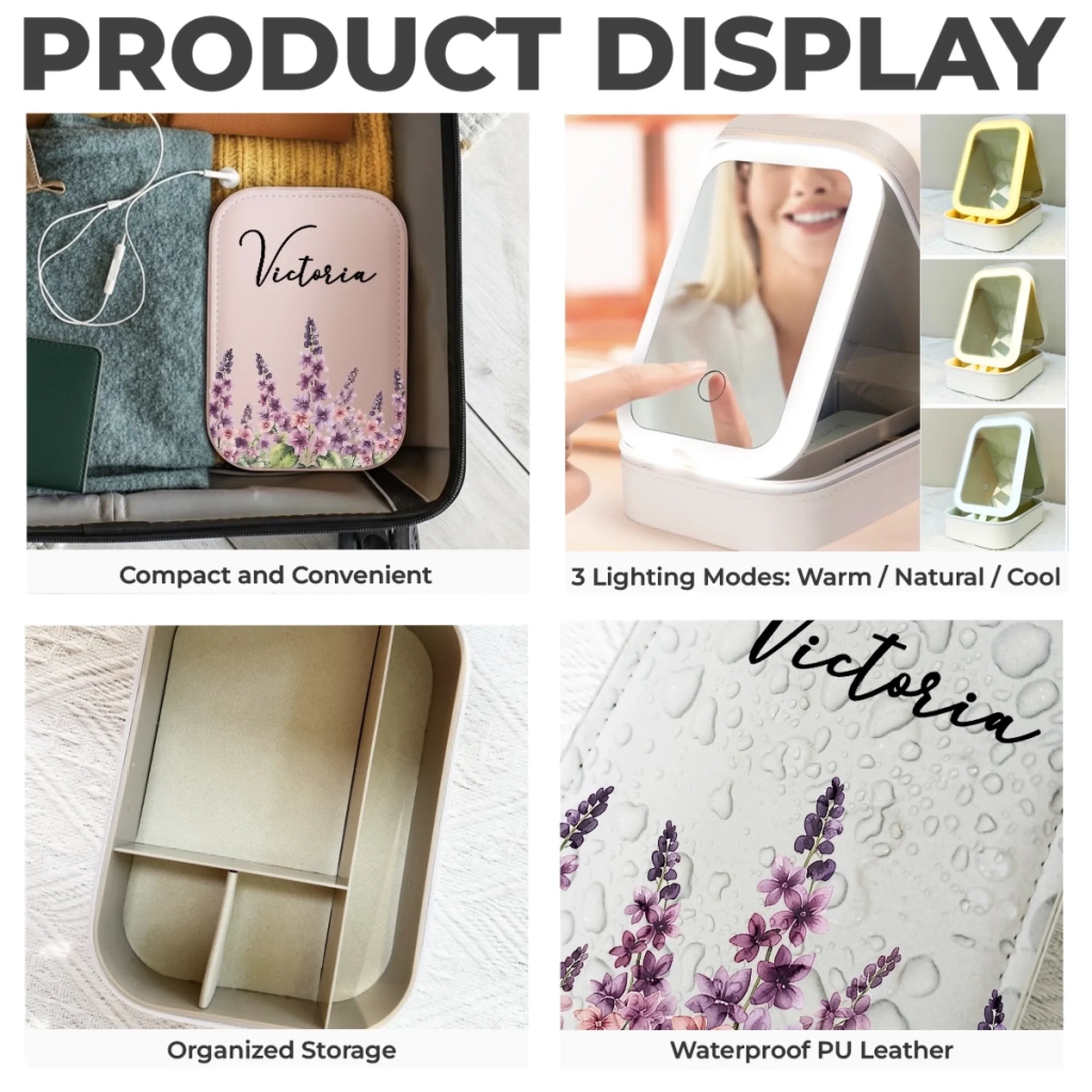 • The LED light ensures easy makeup application anytime, while separate compartments keep rings, earrings, necklaces, and beauty essentials neatly organized.