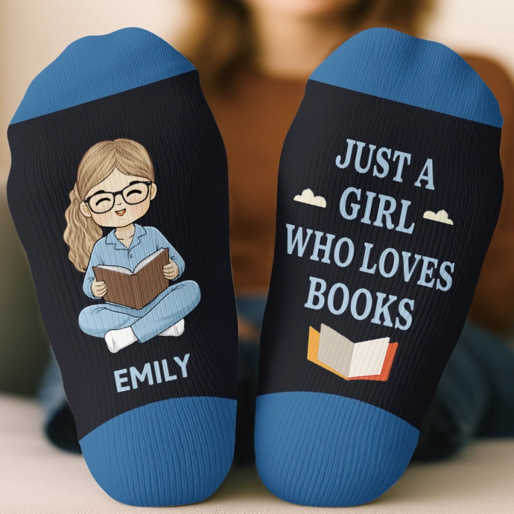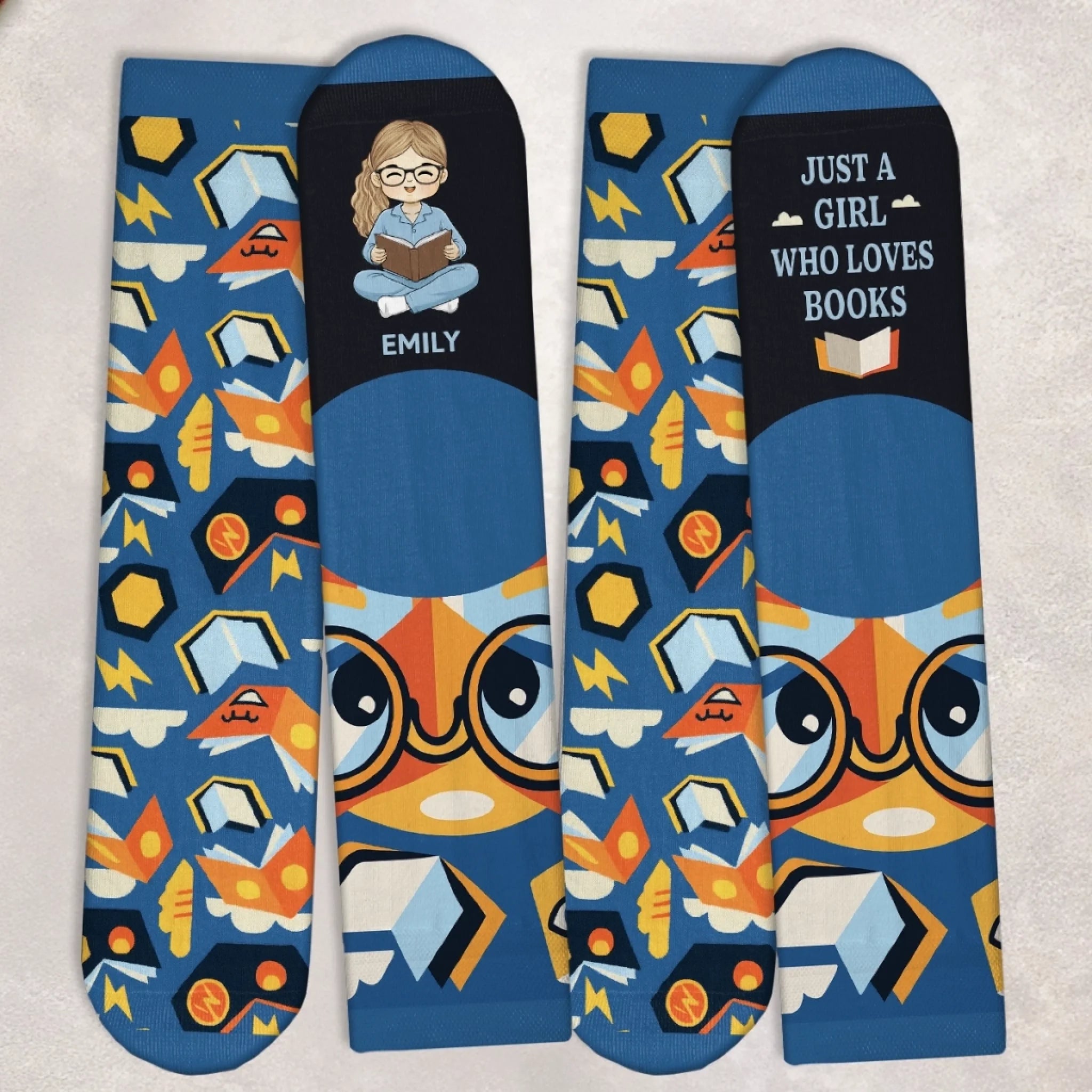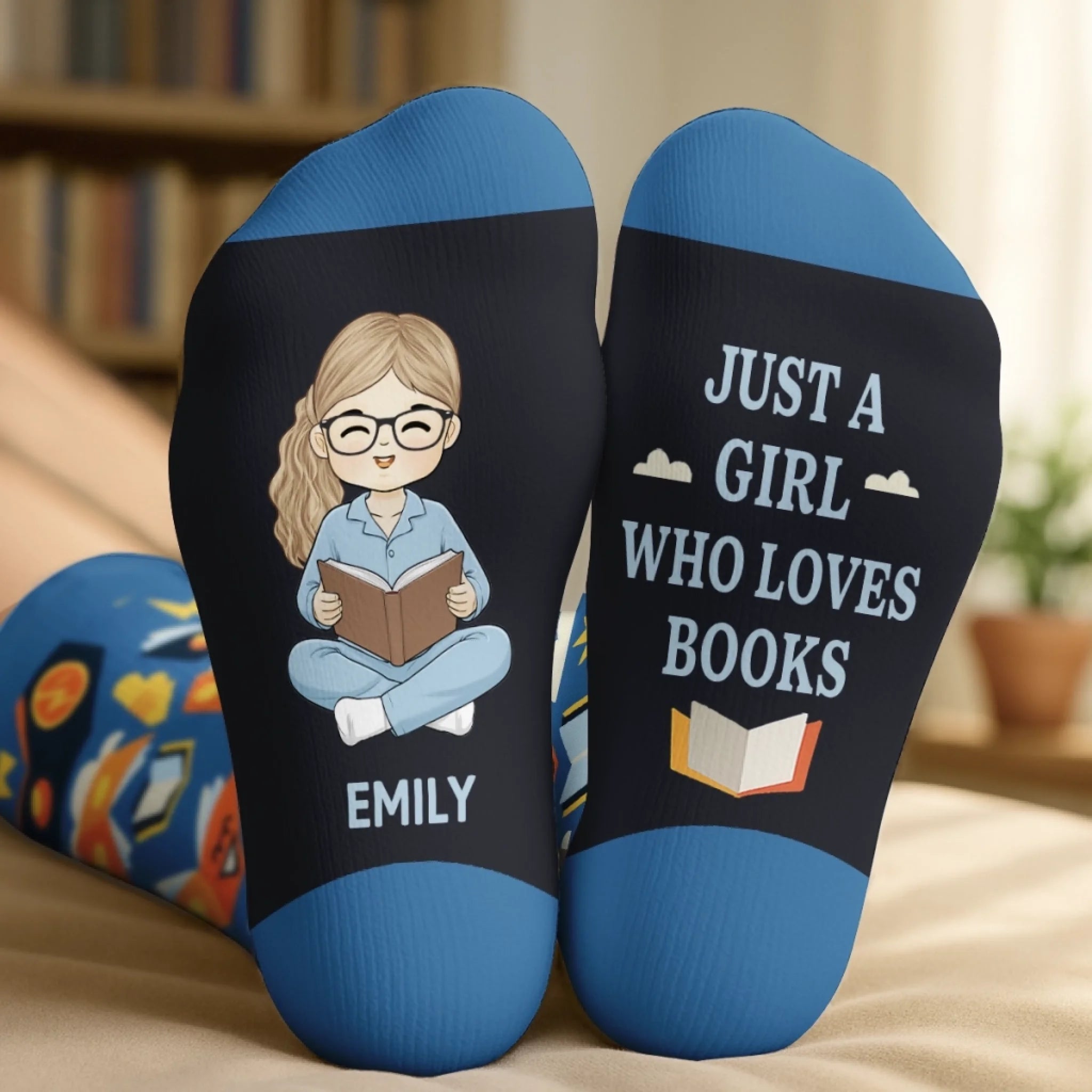 Custom Kids Crew Socks - Personalized Bookish Gifts For Book Lovers, Bookworms, Readers - Bookworm At Rest