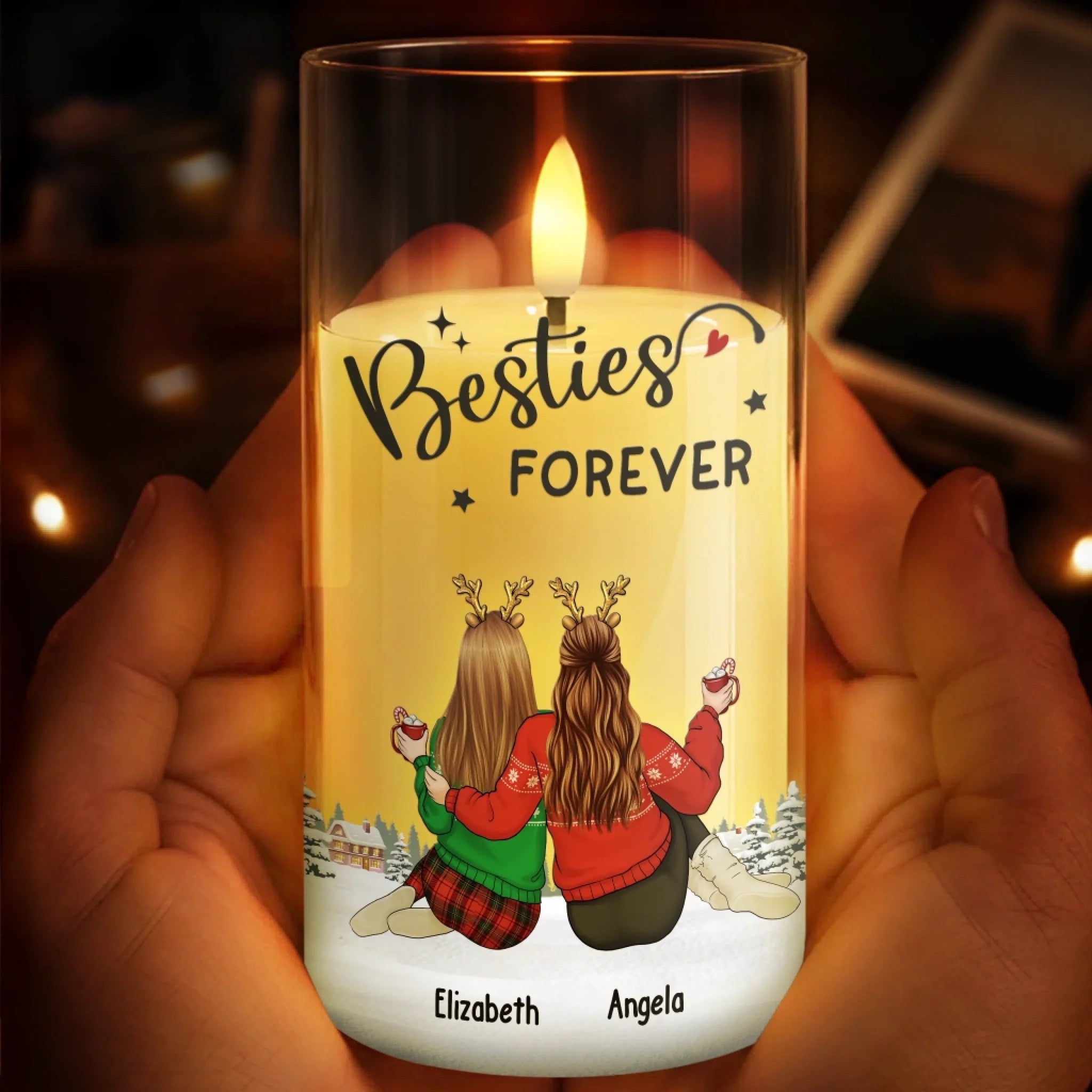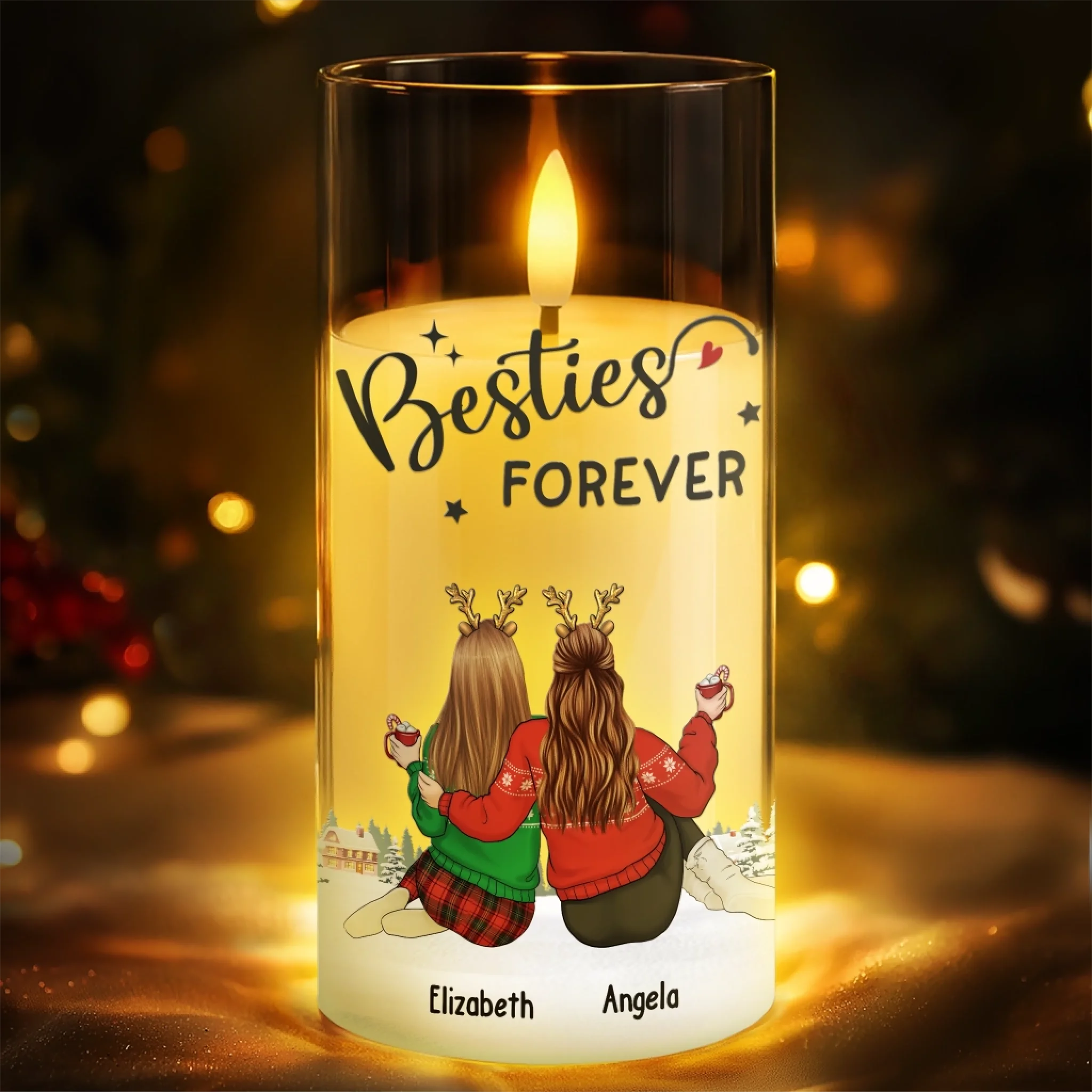 Custom LED Candle Light - Personalized Christmas Best Friend Birthday Gifts For Women, Besties, Sisters, BFF - Side By Side Through Every Season