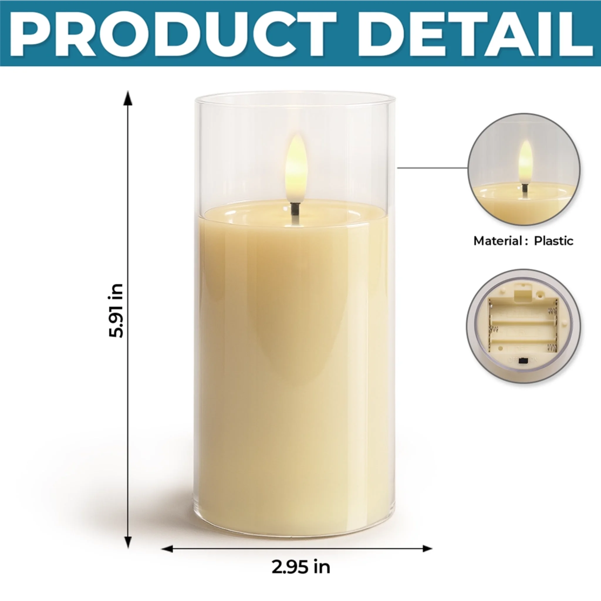 • Realistic flickering light effect for a cozy, candle-like glow.