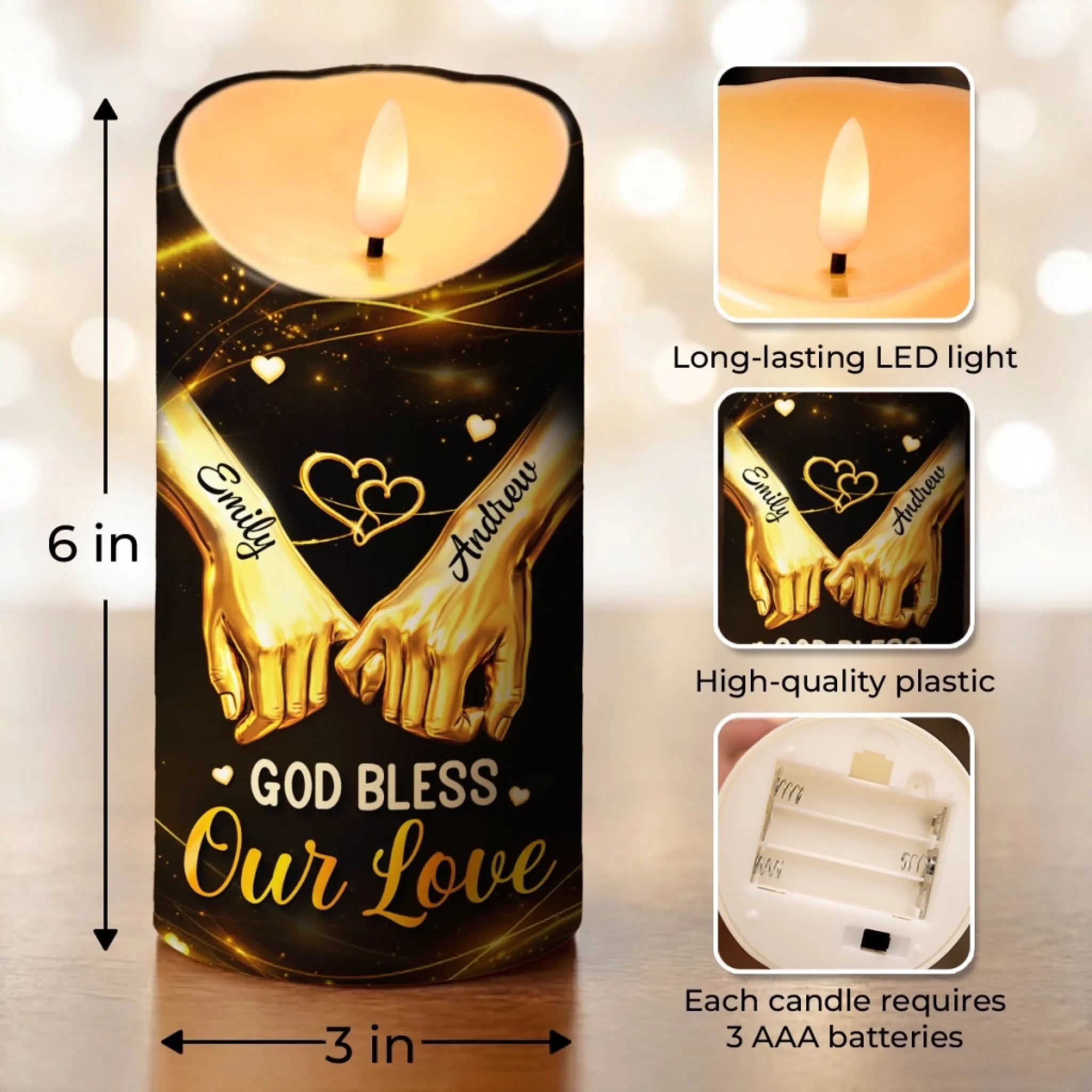 Material: Made of a high-quality plastic with a flickering LED flame, bring warmth and a lasting tribute into your home.