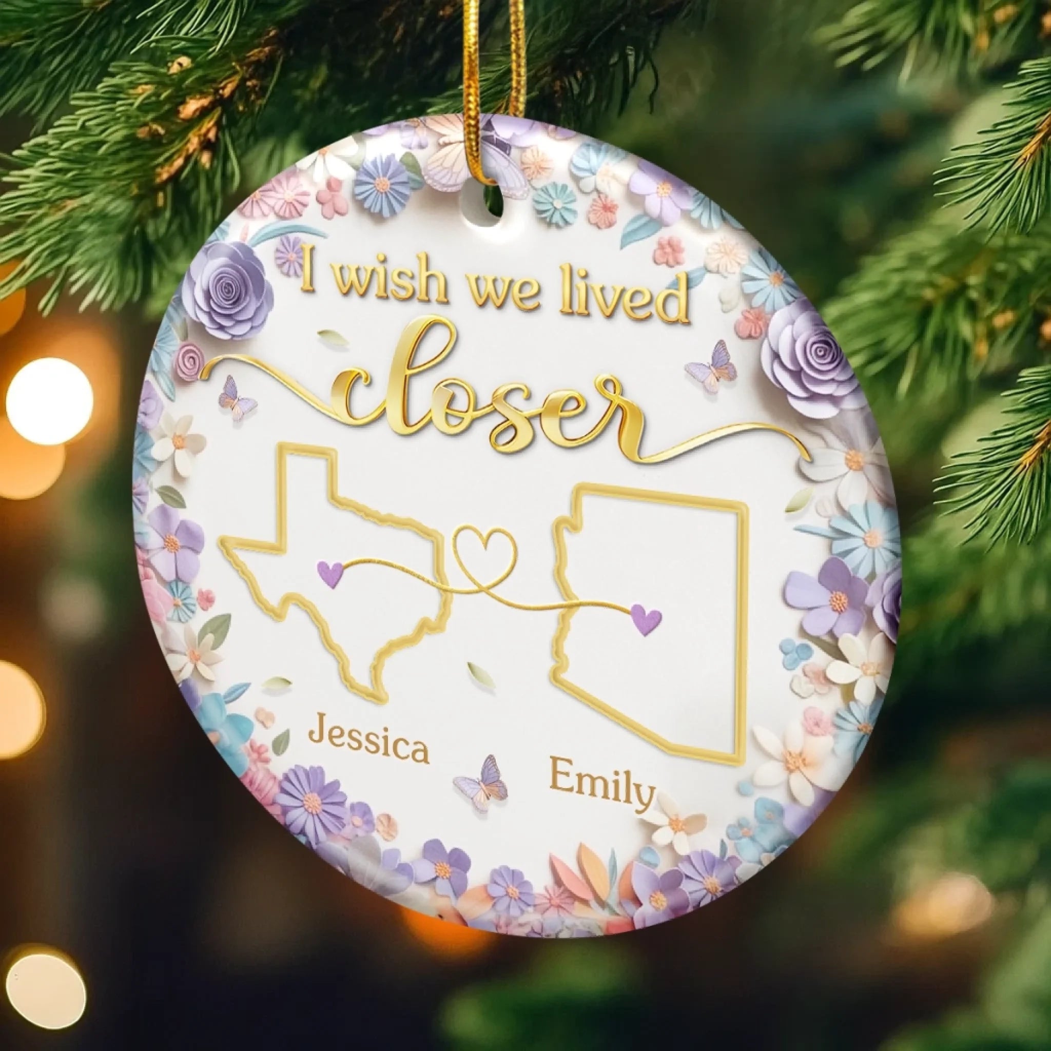 Custom Long Distance Ceramic Ornament - Personalized Best Friend Christmas Birthday Gifts For Women, Besties, Sisters, BFF - Connected Beyond Distance