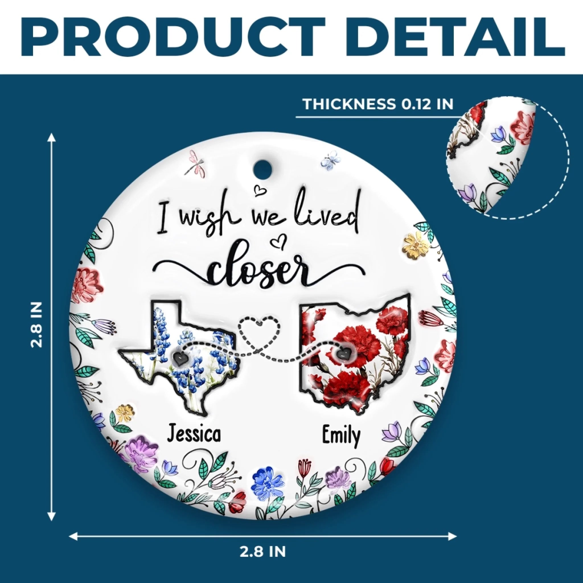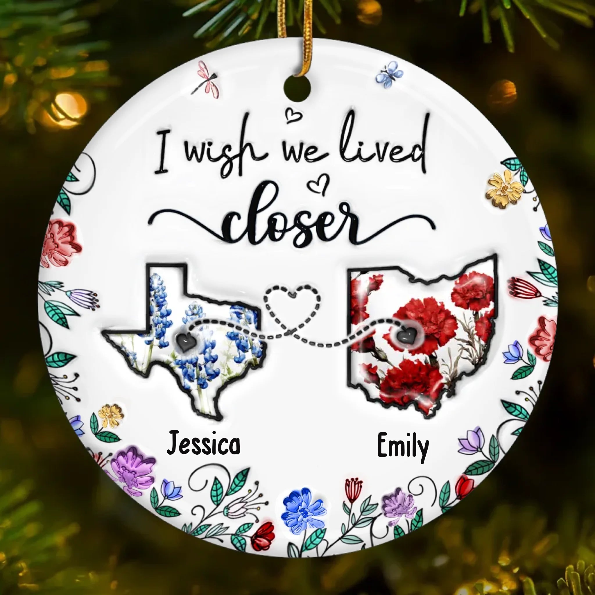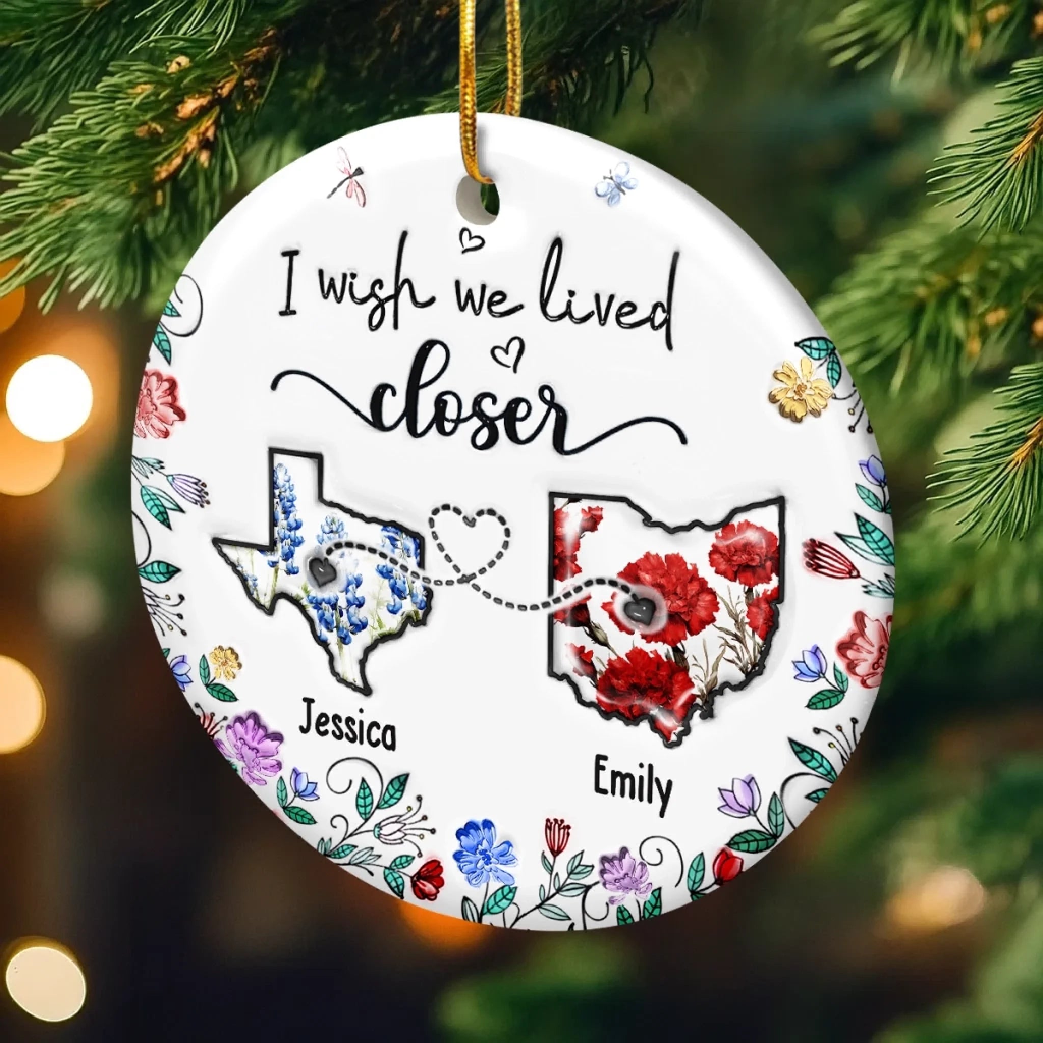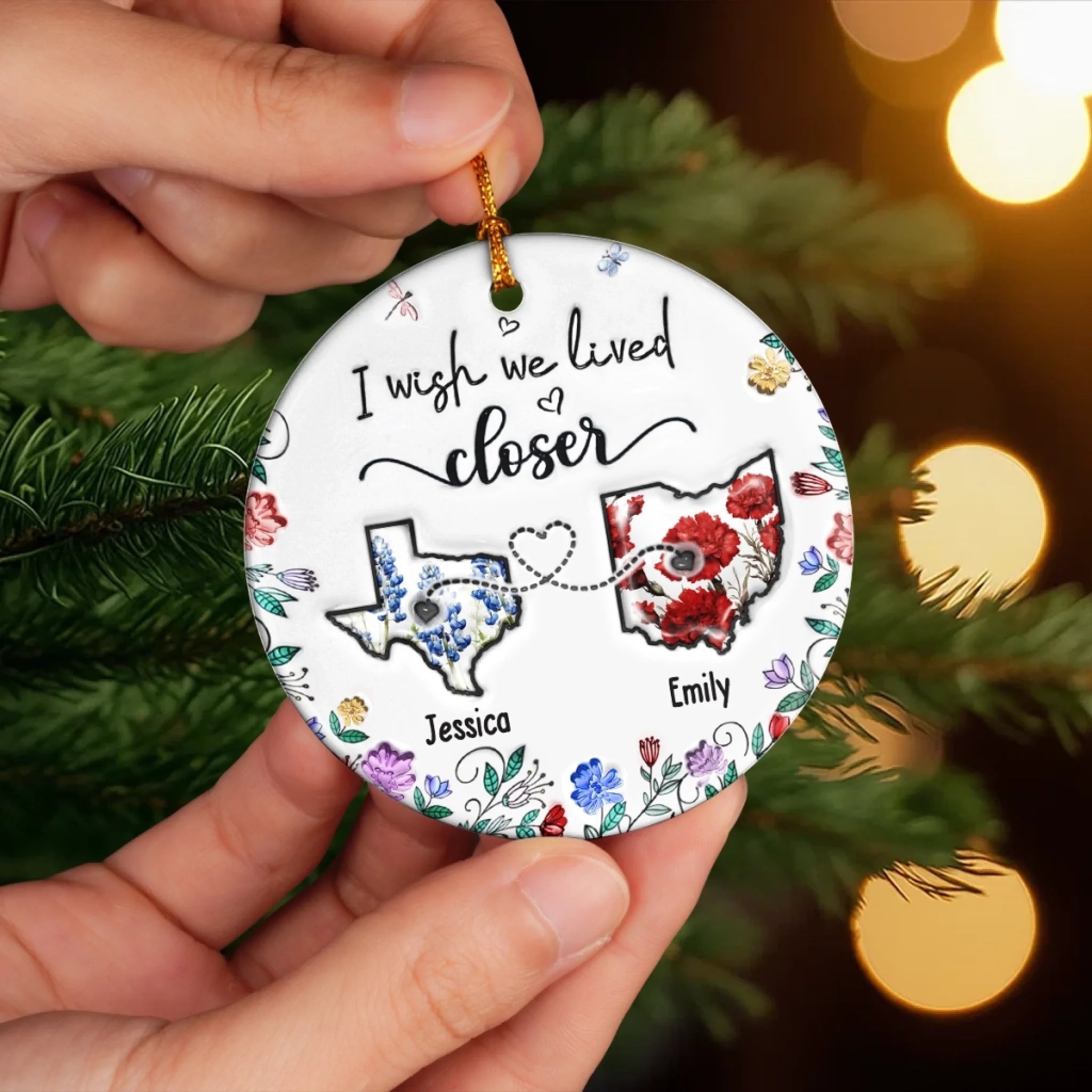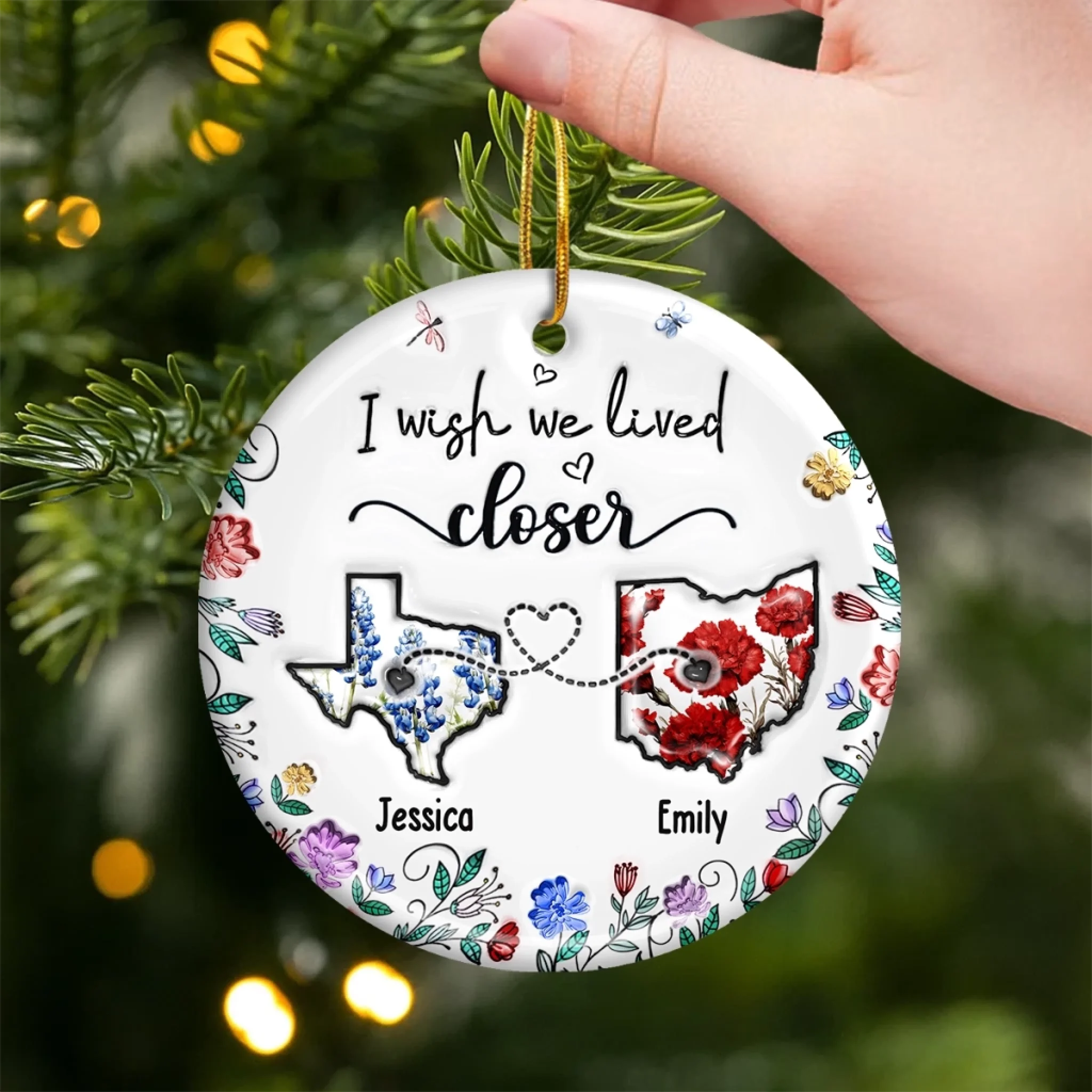 Custom Long Distance Ceramic Ornament - Personalized Best Friend Christmas Birthday Gifts For Women, Besties, Sisters, BFF - Far Away Yet Always Connected