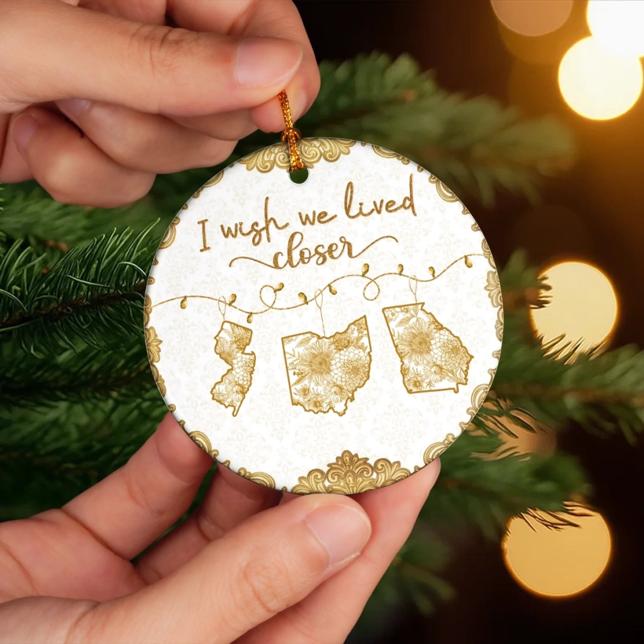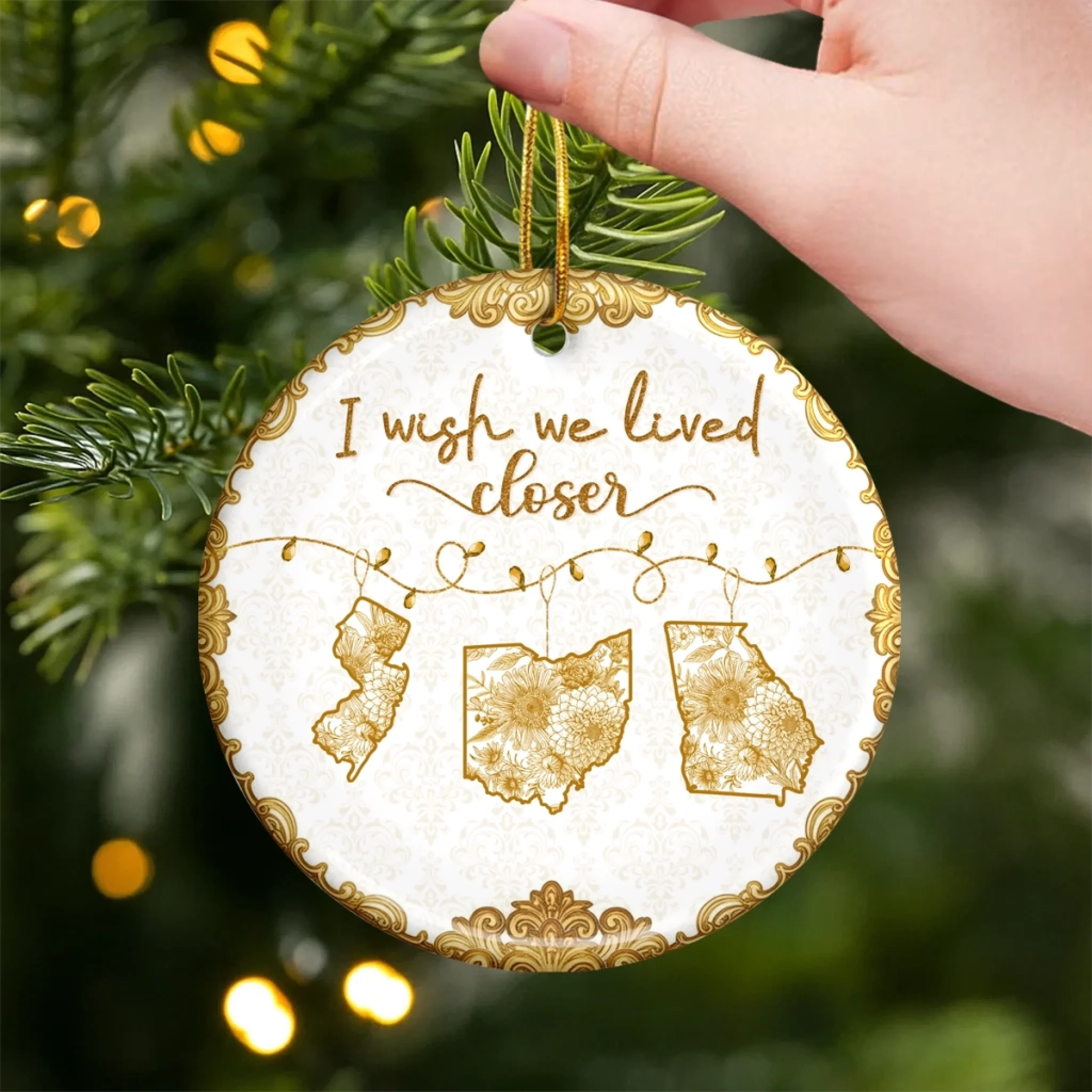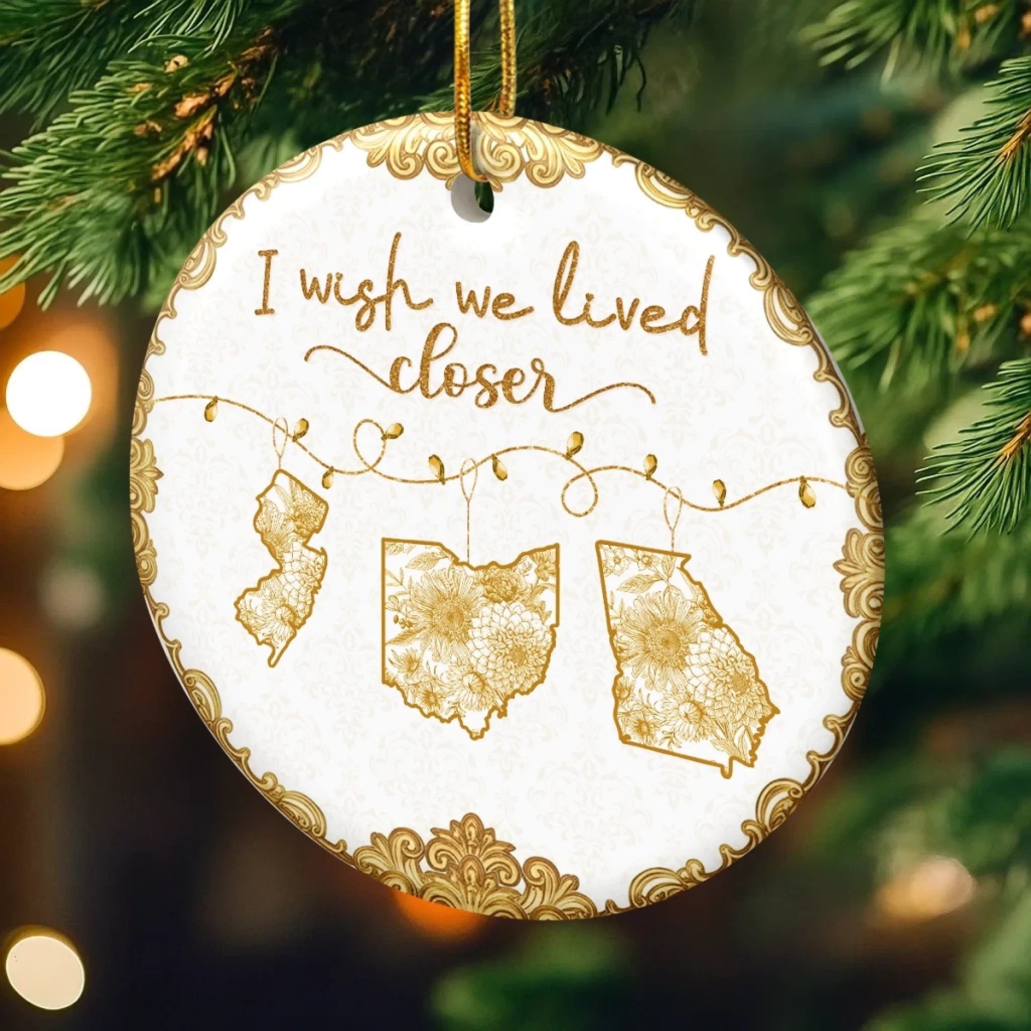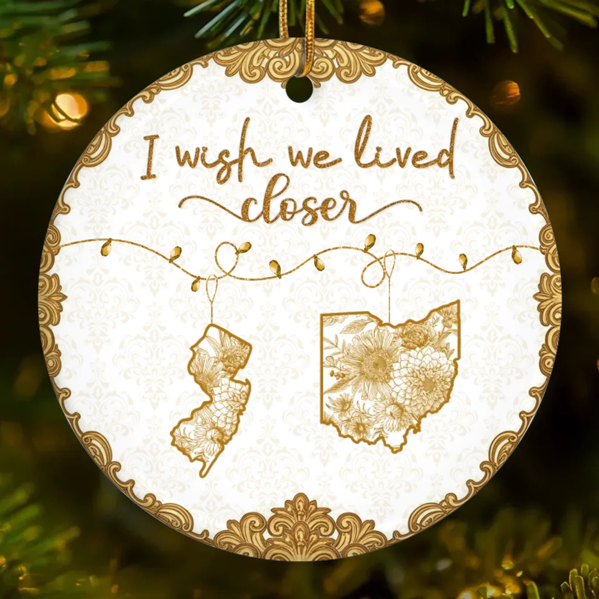 Custom Long Distance Ceramic Ornament - Personalized Best Friend Christmas Birthday Gifts For Women, Besties, Sisters, BFF - Wish You Lived Nearby