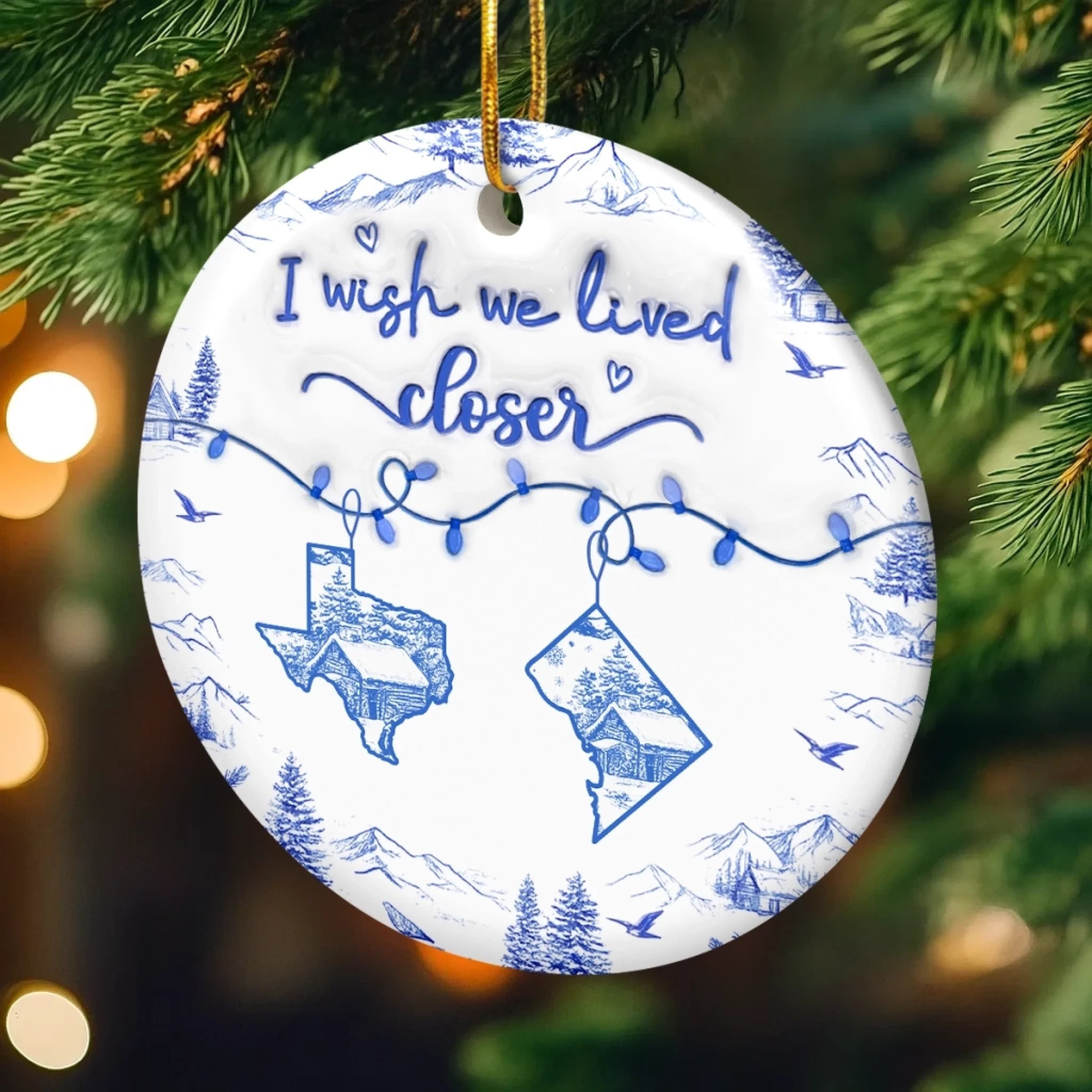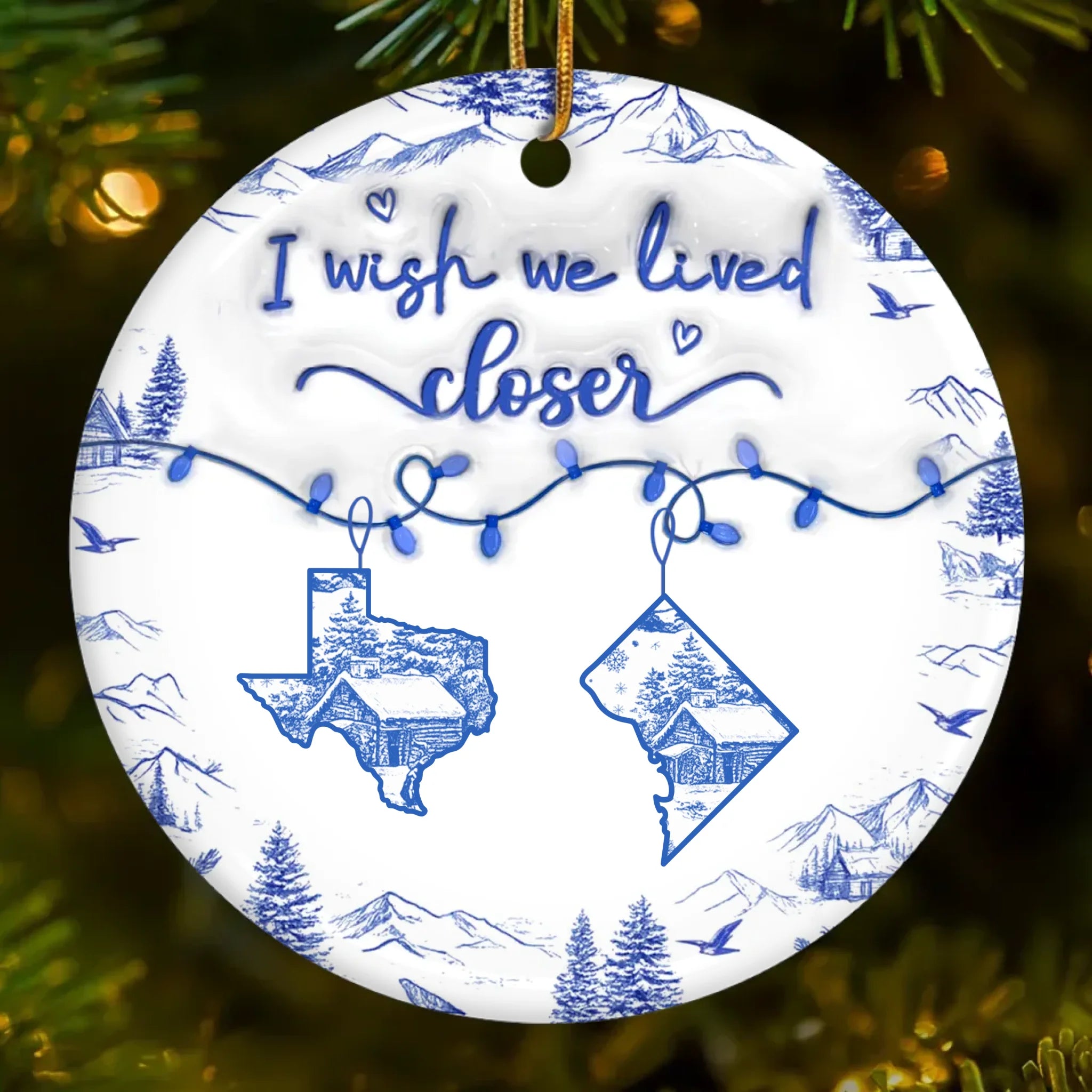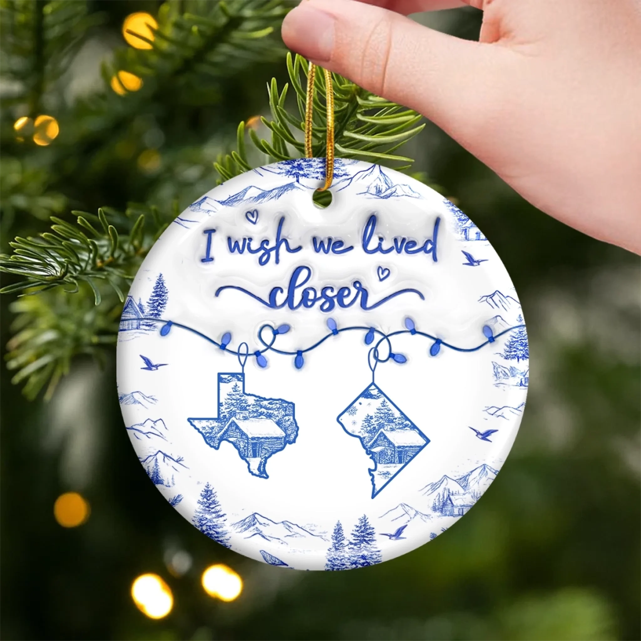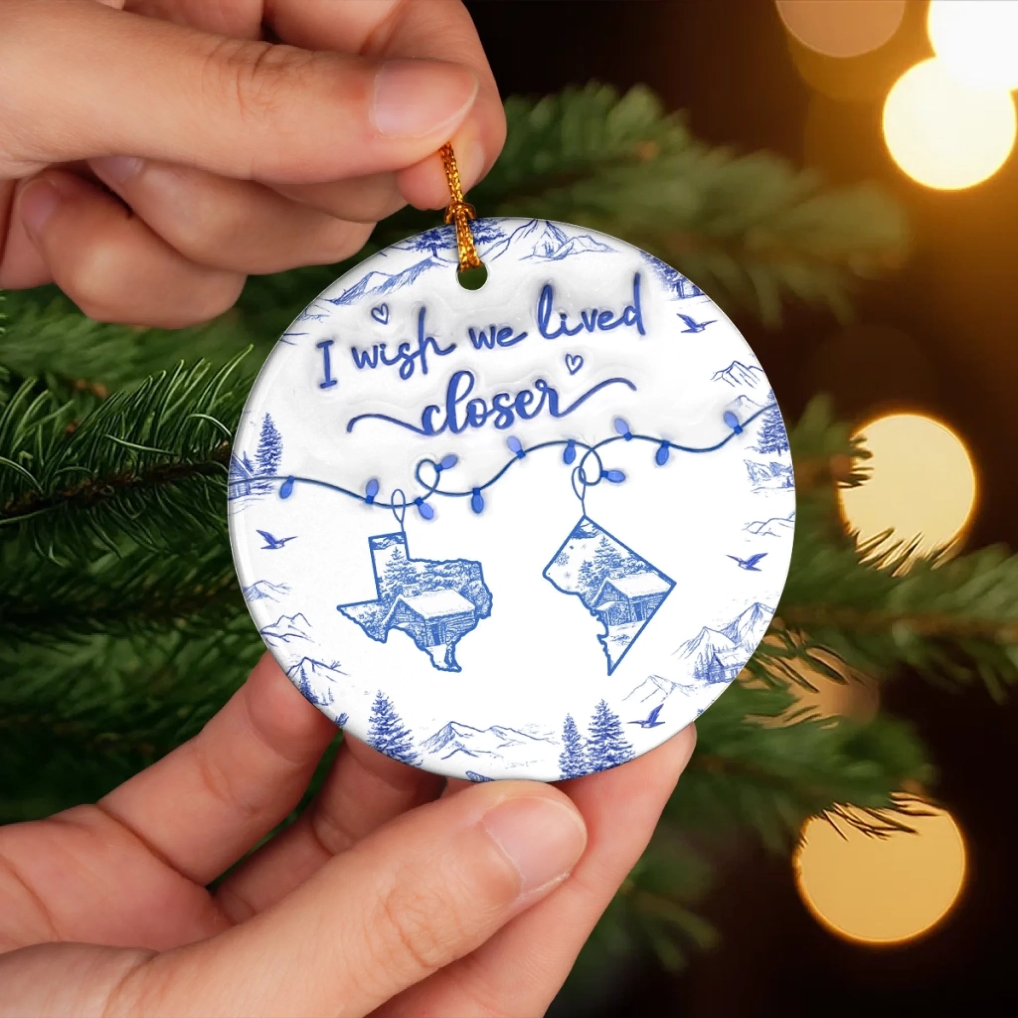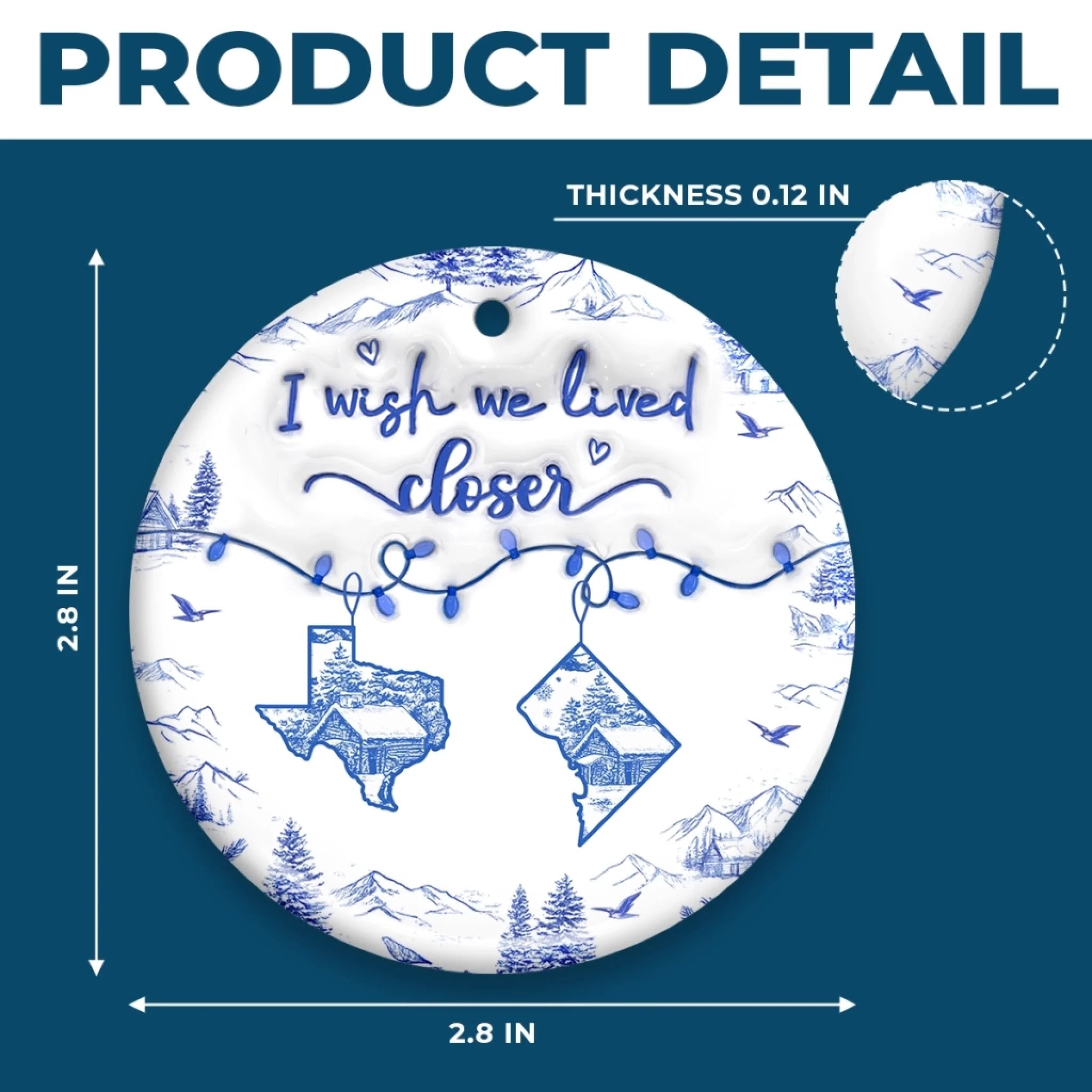 Custom Long Distance Ceramic Ornament - Personalized Best Friend Christmas Birthday Gifts For Women, Besties, Sisters, BFF - Wishing You Were Here