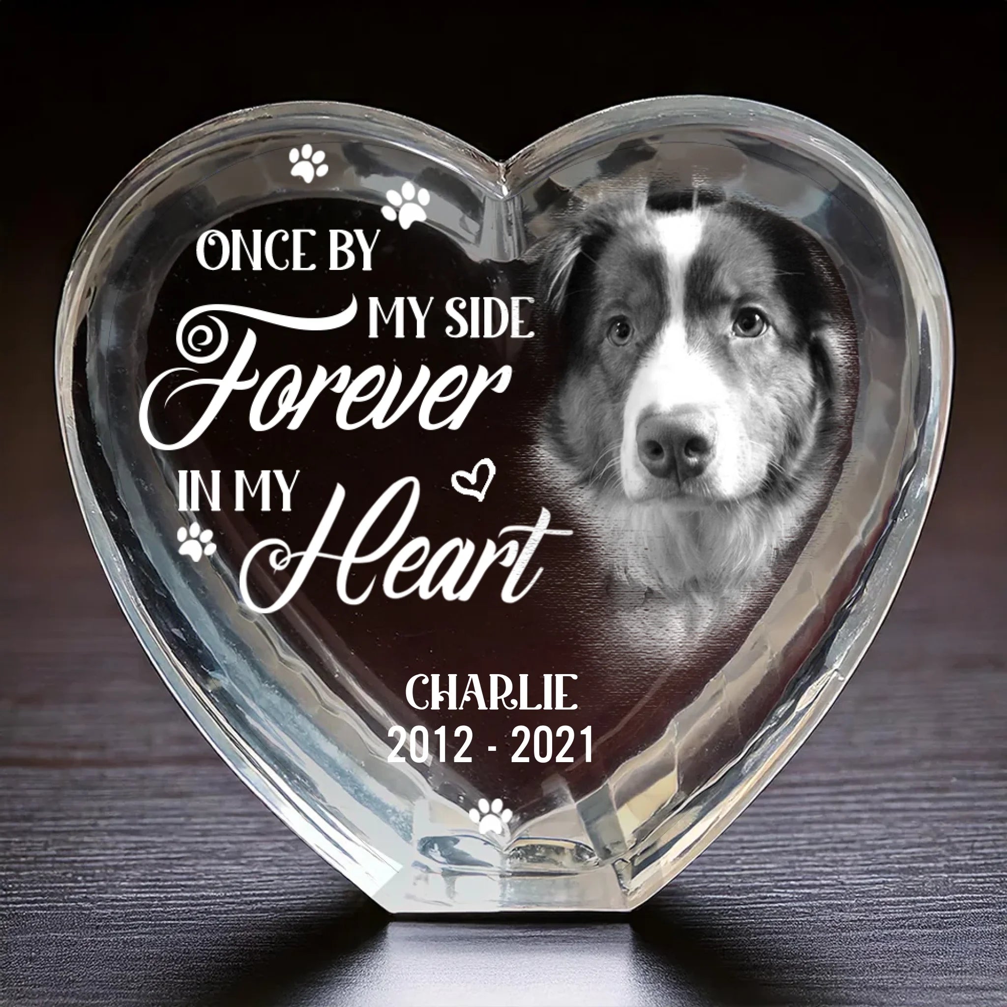 Custom Photo 3D Crystal Heart Shaped - Personalized Pet Memorial Sympathy Gifts For Dogs - Love Lives On Beyond Goodbye