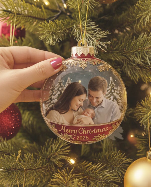 Custom Photo Acrylic Ornament - Personalized Christmas Birthday Gifts For Mom, Dad, Brother, Sister, Kids - Happiness Is Hanging Right Here