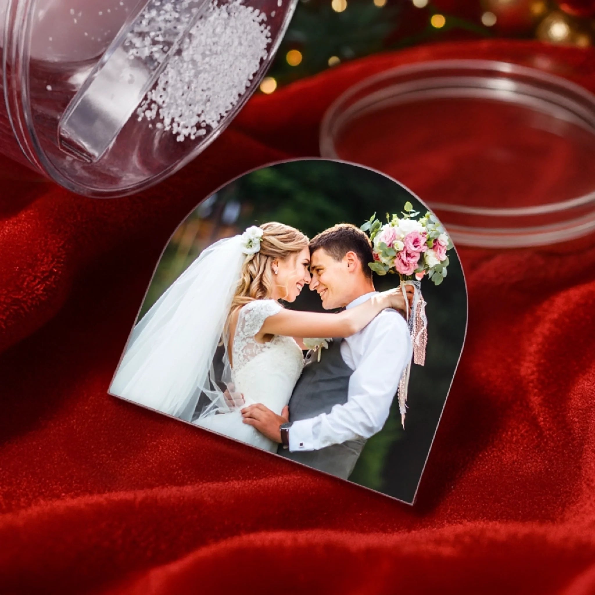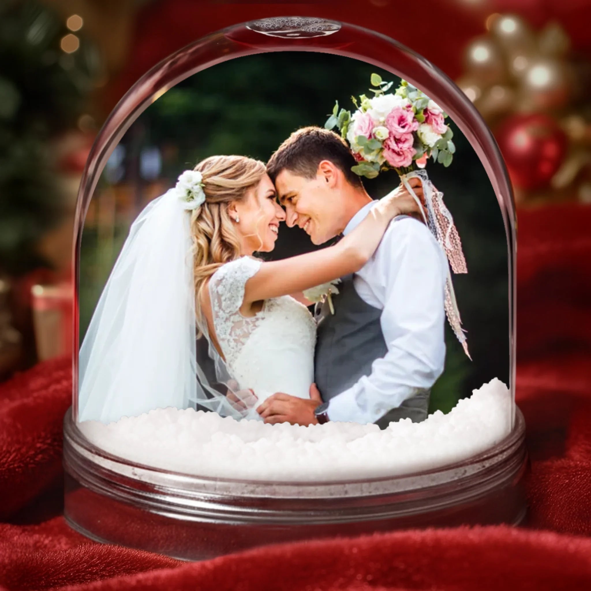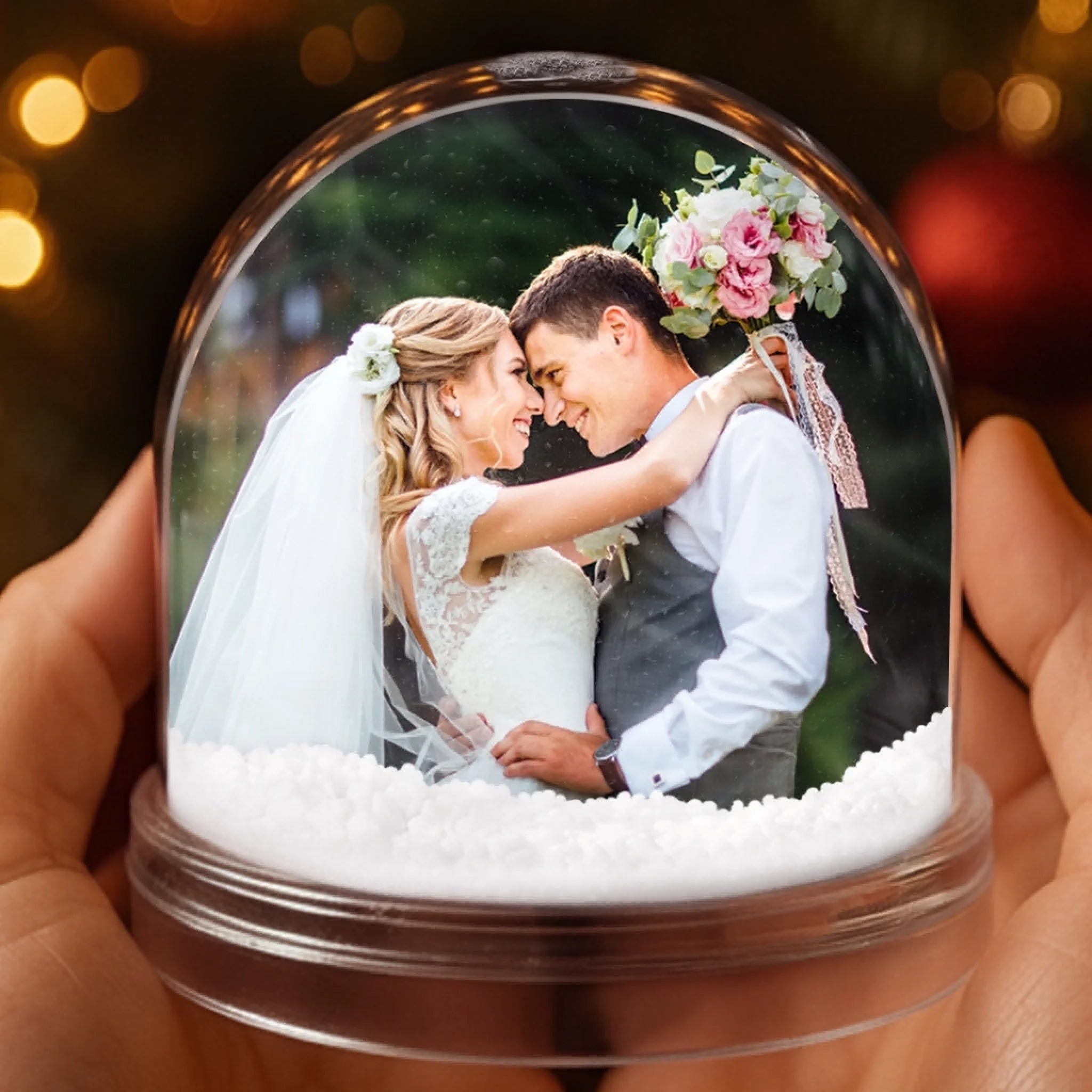 Custom Photo Acrylic Snow Globe - Personalized Anniversary Christmas Wedding Gifts For Husband And Wife, Him And Her - Spinning Into Forever