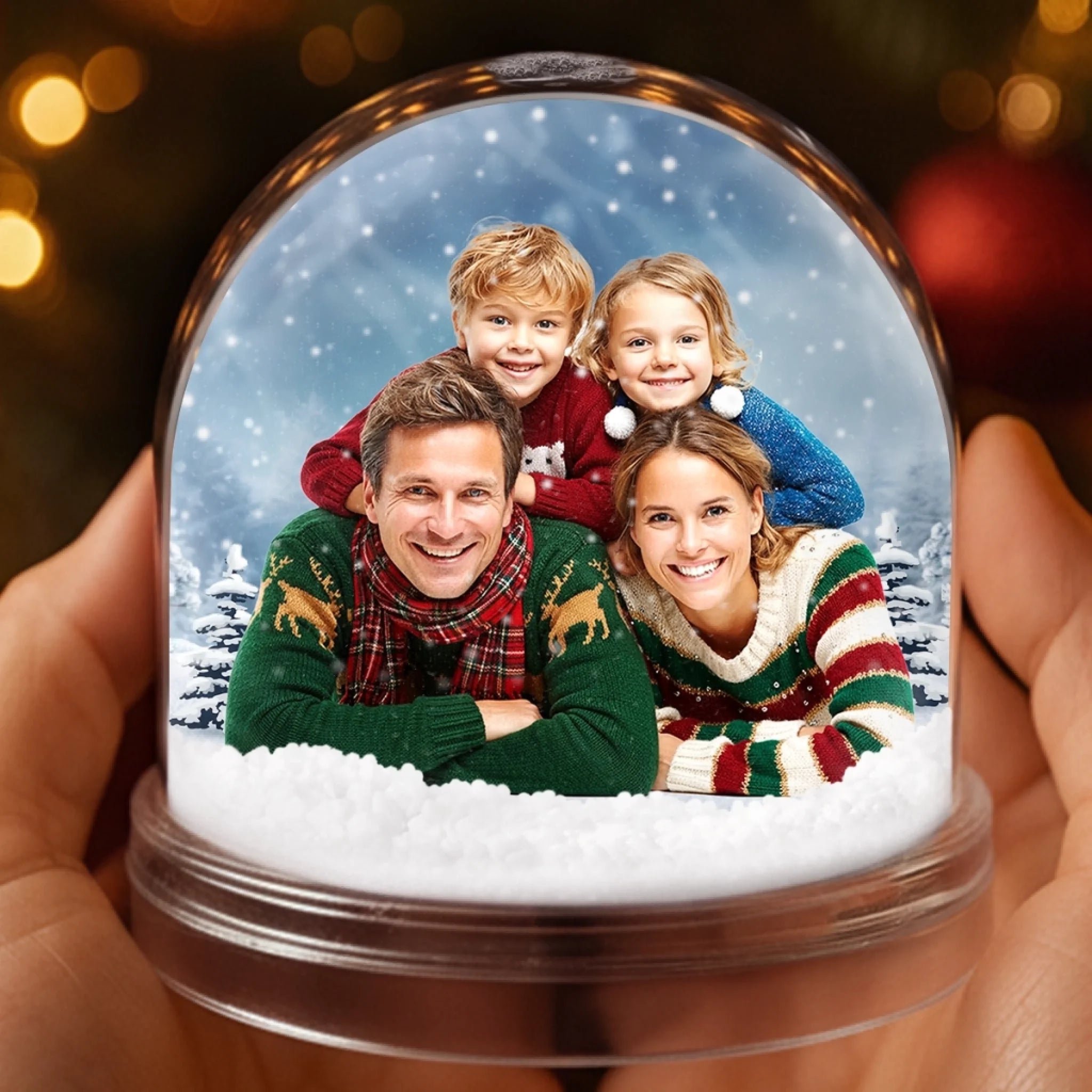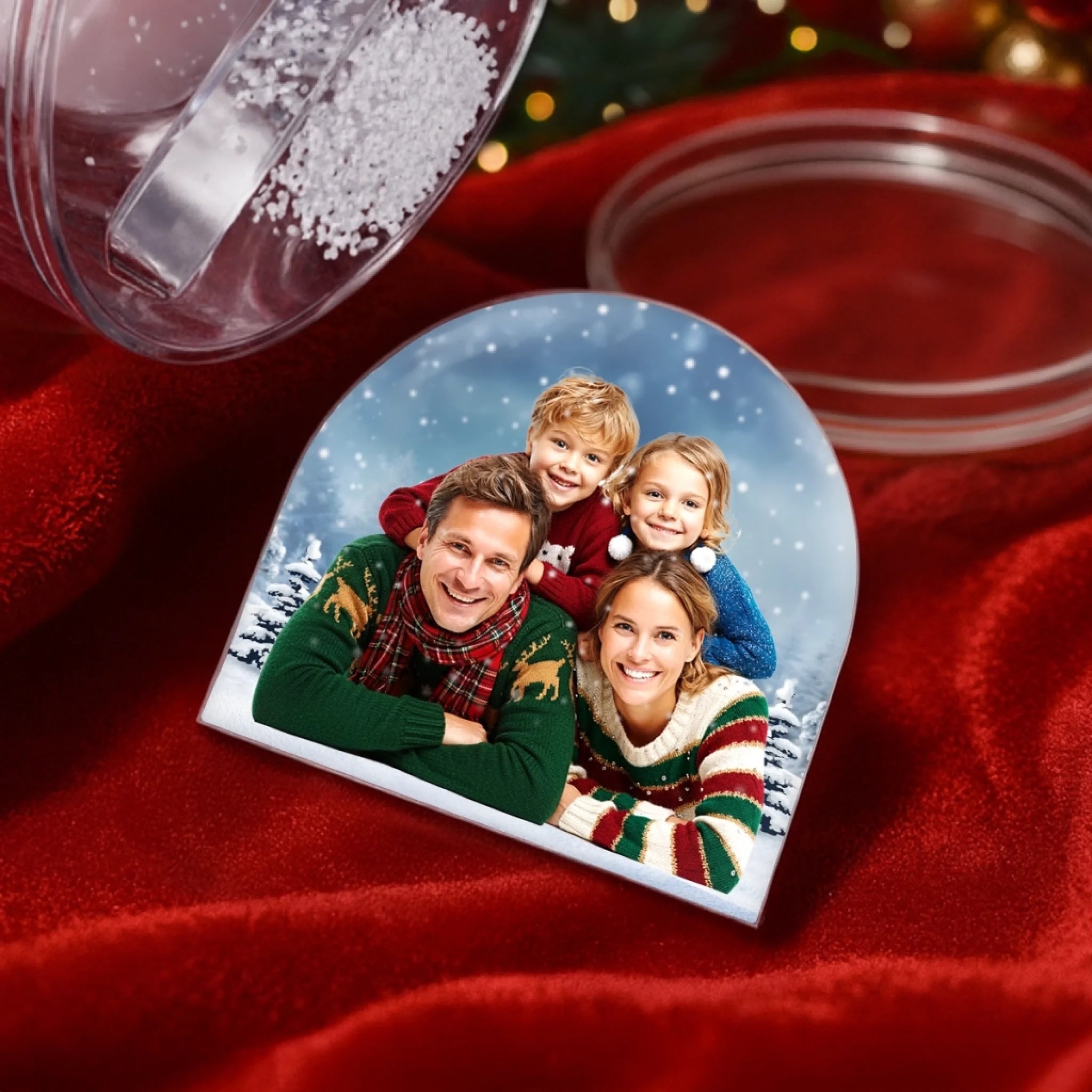 Custom Photo Acrylic Snow Globe - Personalized Christmas Birthday Gifts For Mom, Dad, Brother, Sister, Kids - Encircled By Our Love