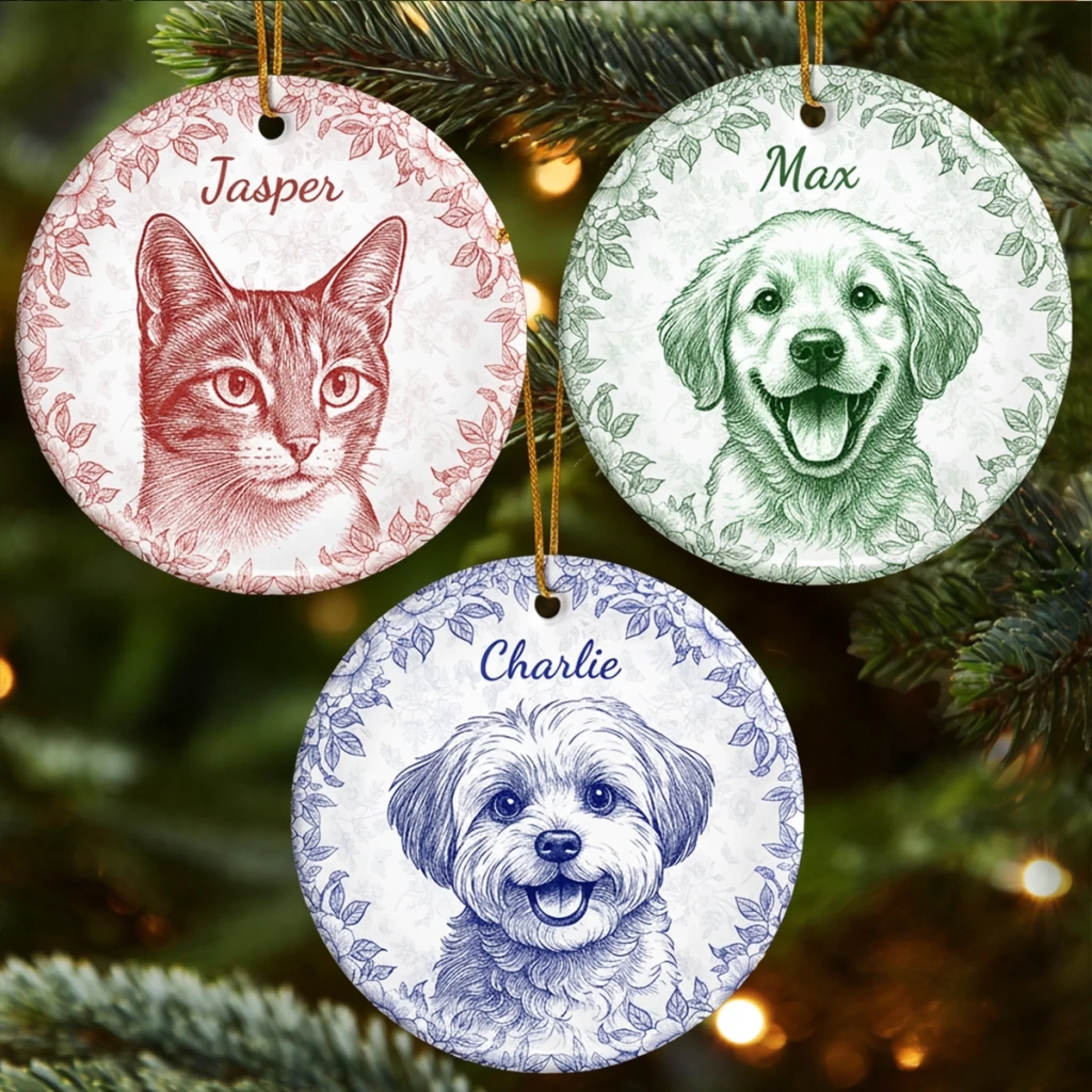Custom Photo Ceramic Ornament - Personalized Christmas Birthday Gifts For Dog Cat Lovers, Dog Dad And Mom, Cat Owners - Little Paws, Forever Love
