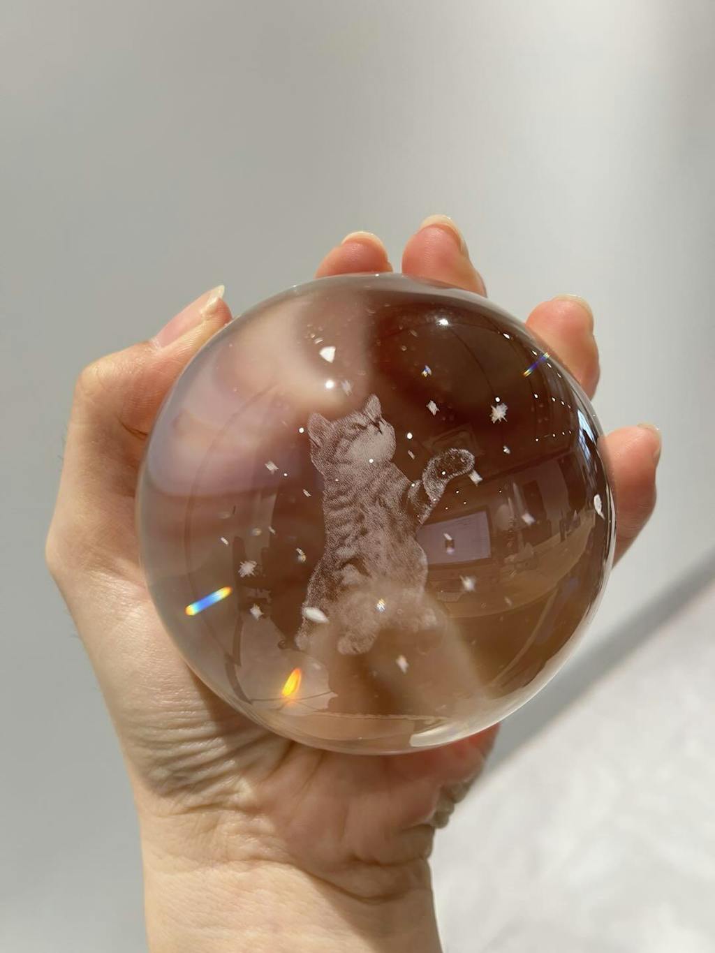 Utilizing advanced internal laser engraving technology, this crystal globe lamp showcases intricate, permanent designs embedded within the glass, creating a stunning and timeless decor piece.