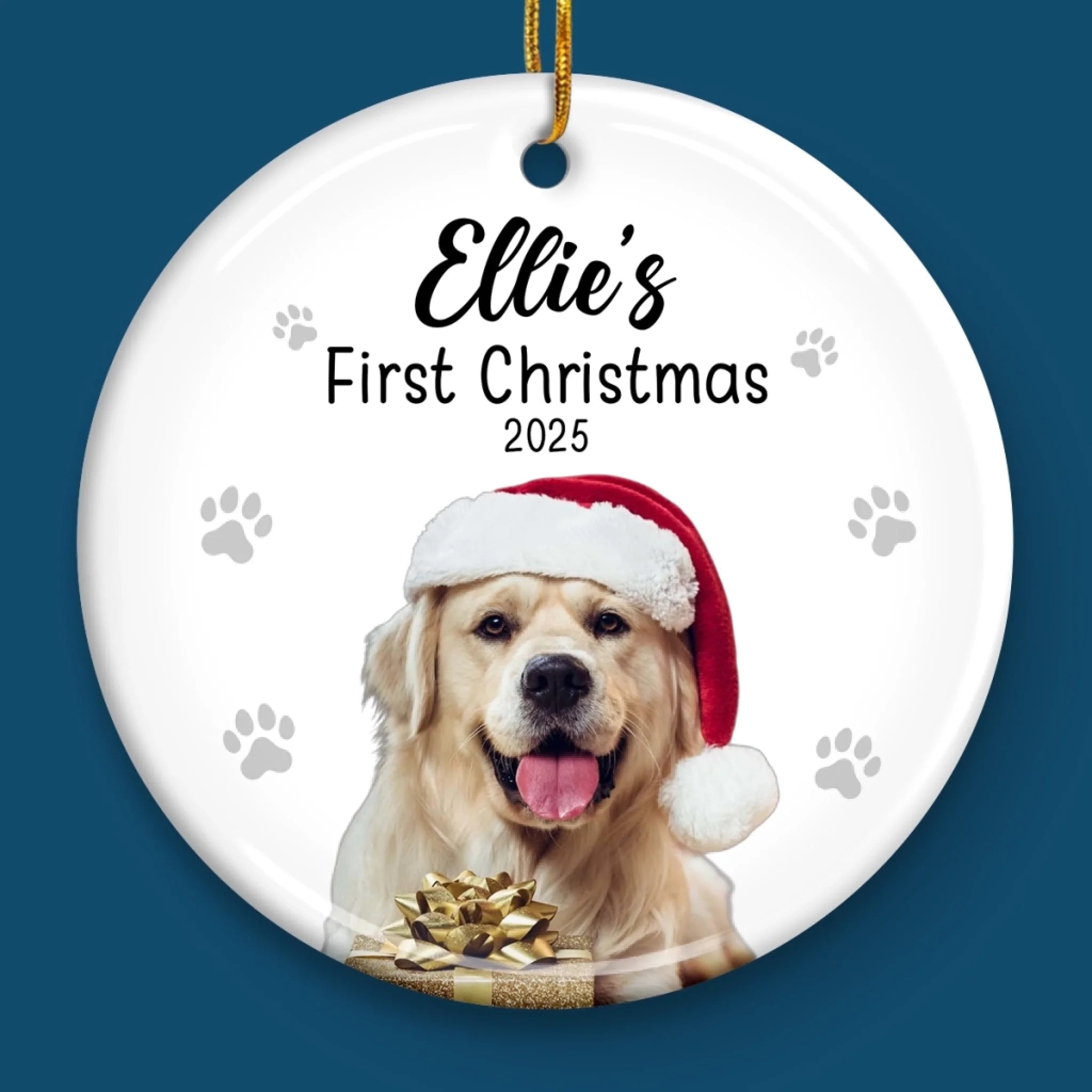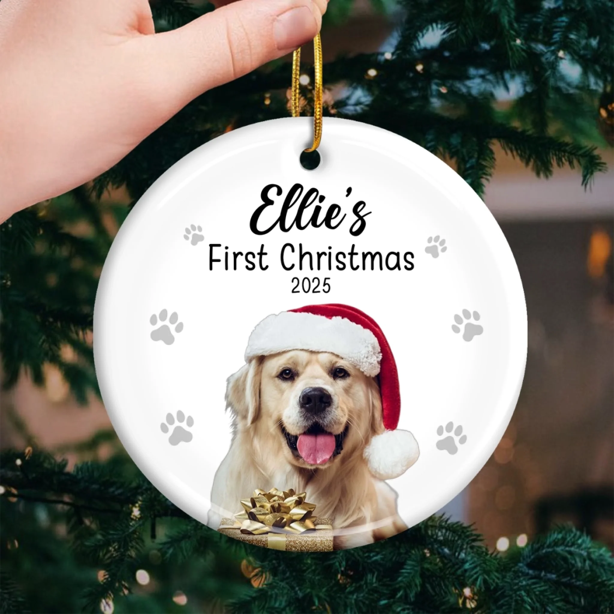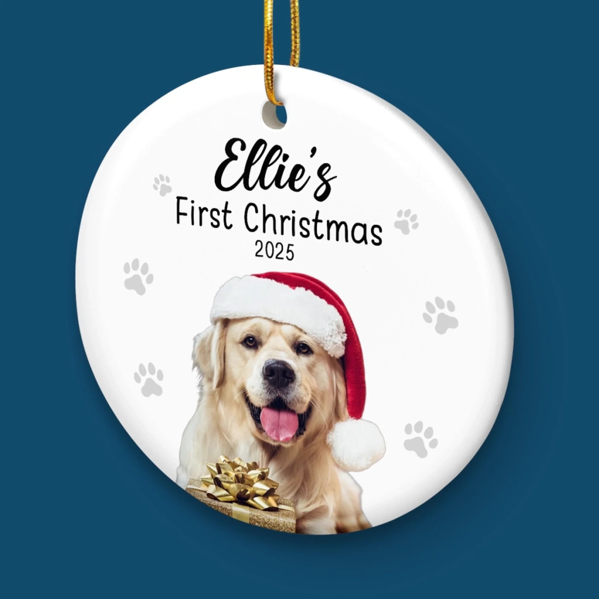Custom Photo First Christmas Pet Ceramic Ornament - Personalized Christmas Birthday Gifts For Dog Lovers, Cat Lovers, Pet Dad And Mom, New Pet Ornament - Our First Fur Christmas