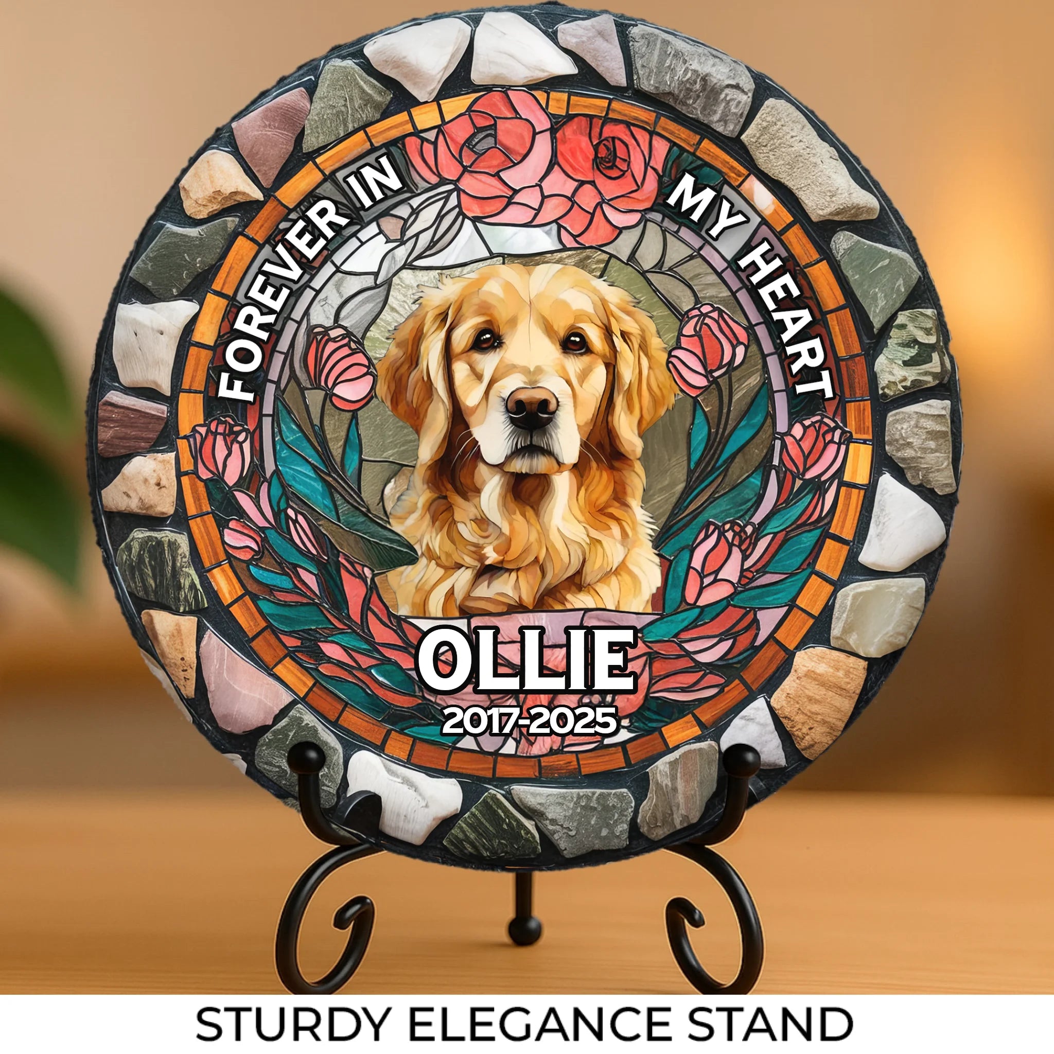 Custom Photo Forever In My Heart - Memorial Personalized Custom 3D Mosaic Faux Stained Glass Print Round Shaped Memorial Stone - Sympathy Gift For Pet Owners, Pet Lovers