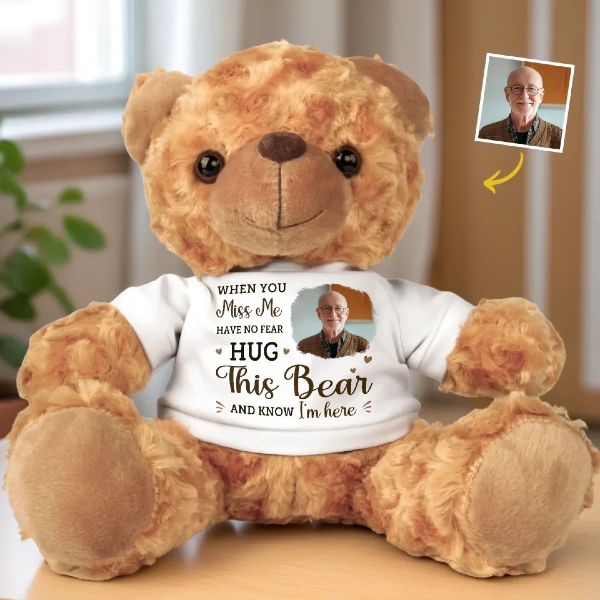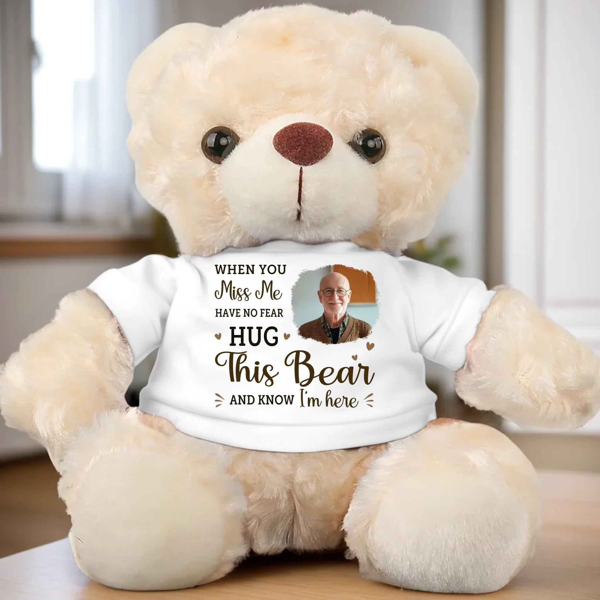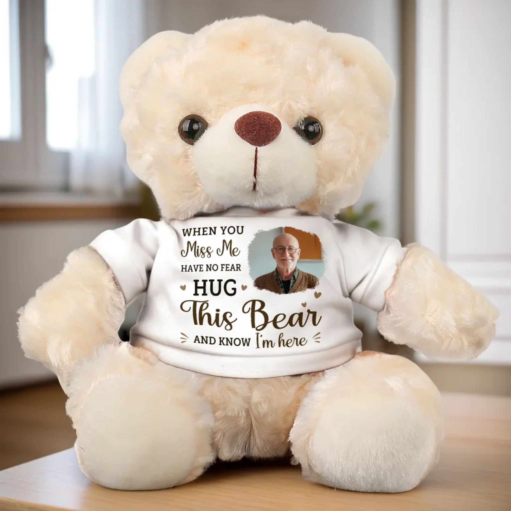 Custom Photo Hug This Bear And Feel My Love - Memorial Personalized Custom Teddy Bear Plush - Sympathy Gift For Family Members