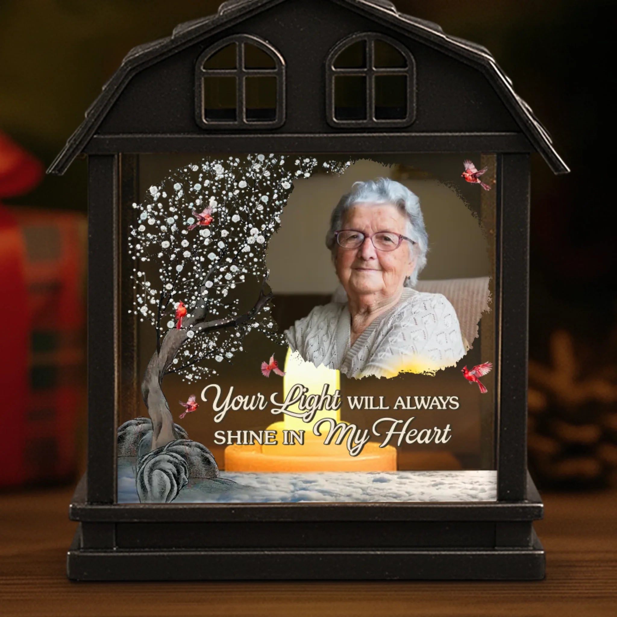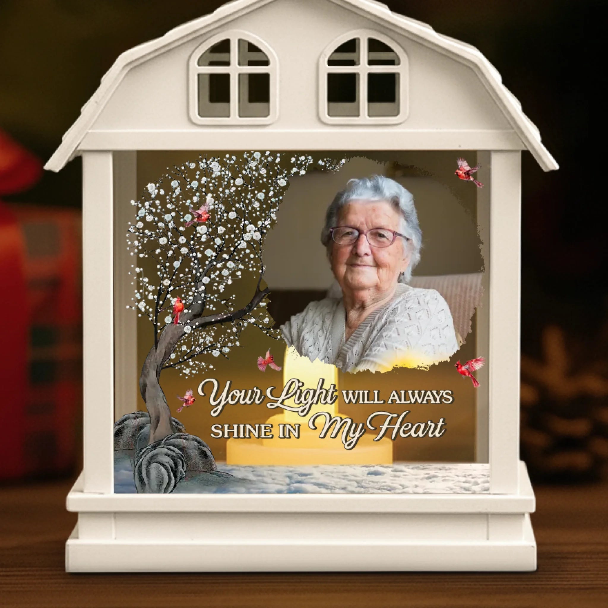 Custom Photo LED House Lantern Light - Personalized Christmas Memorial Sympathy Gifts For Loss Of Mom, Dad - A Beautiful Soul Lives In Memory