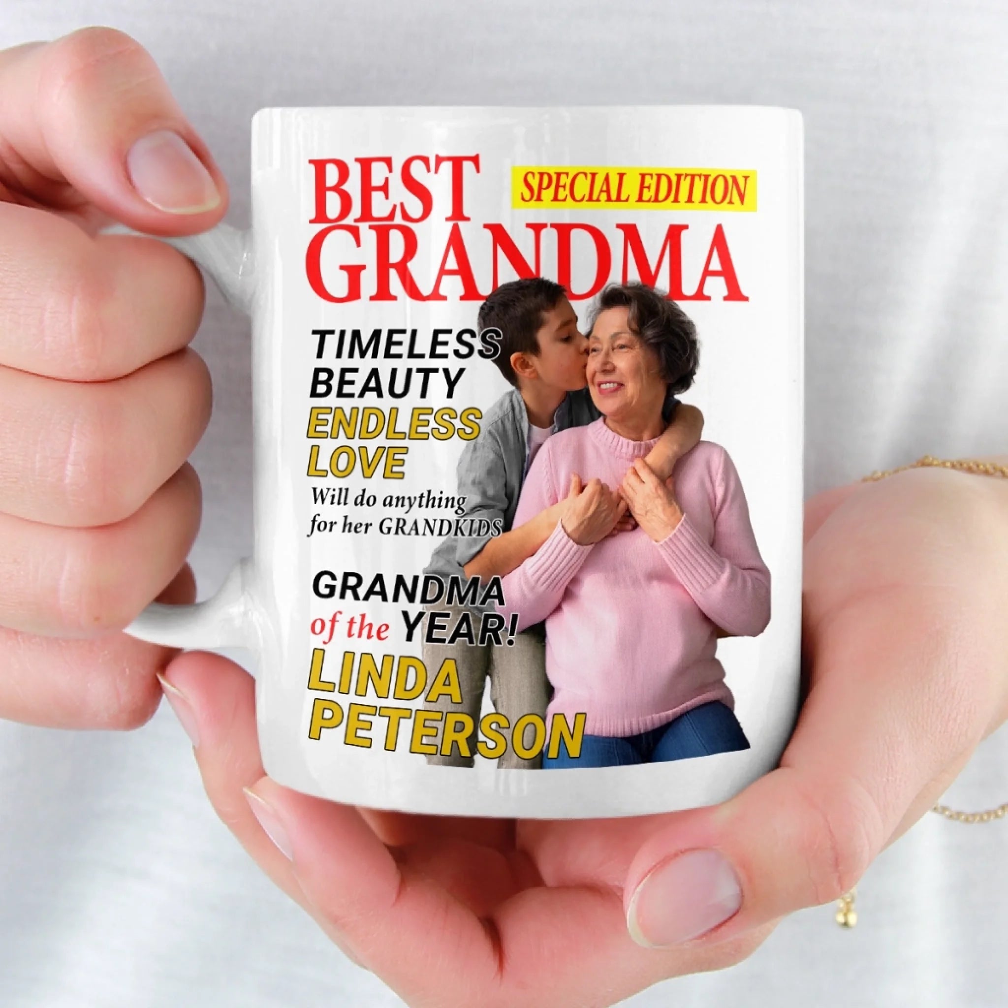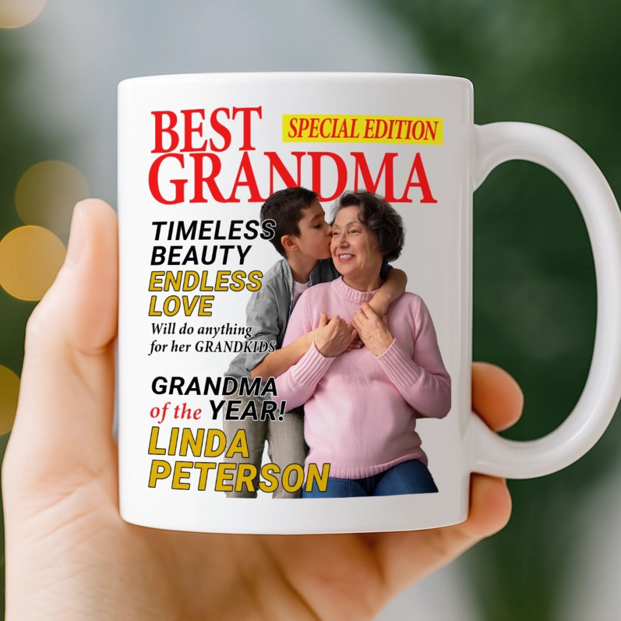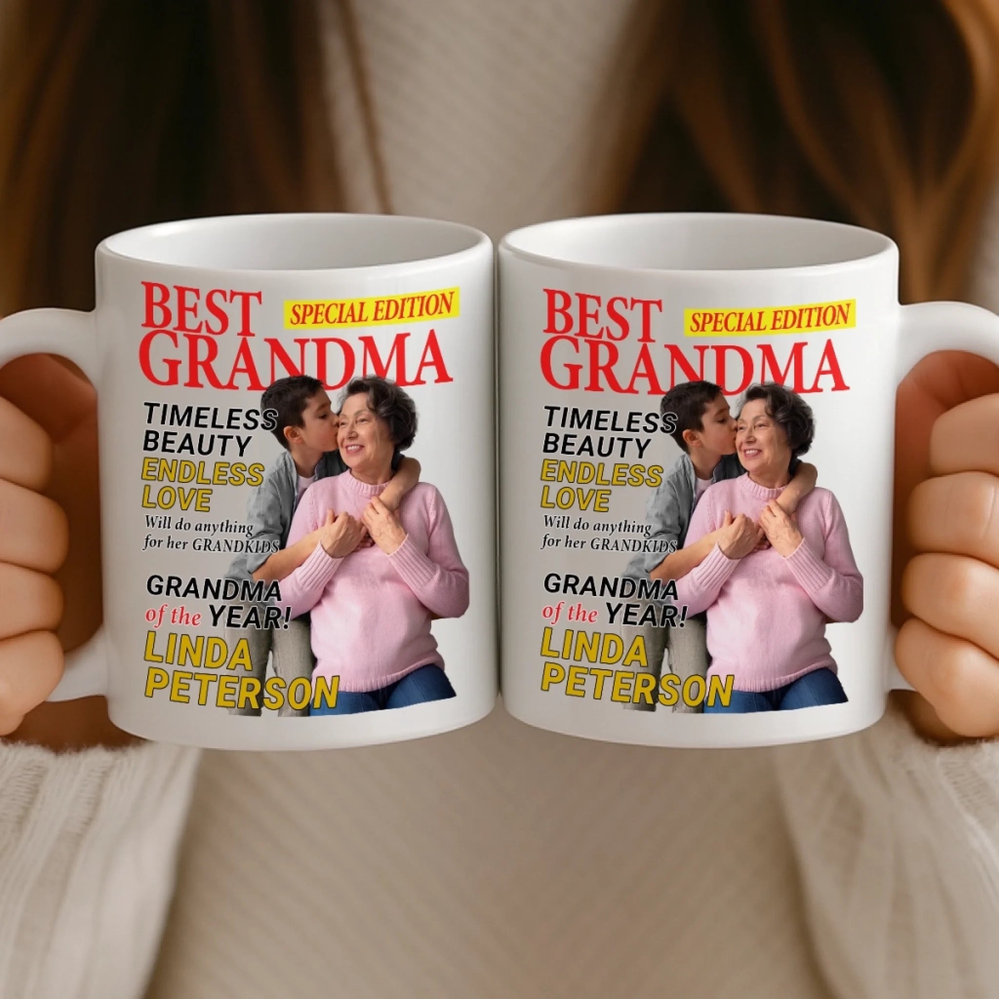 Custom Photo Magazine Mug - Personalized Birthday Gifts For Grandma - Her Love Makes Little Hearts Brighter