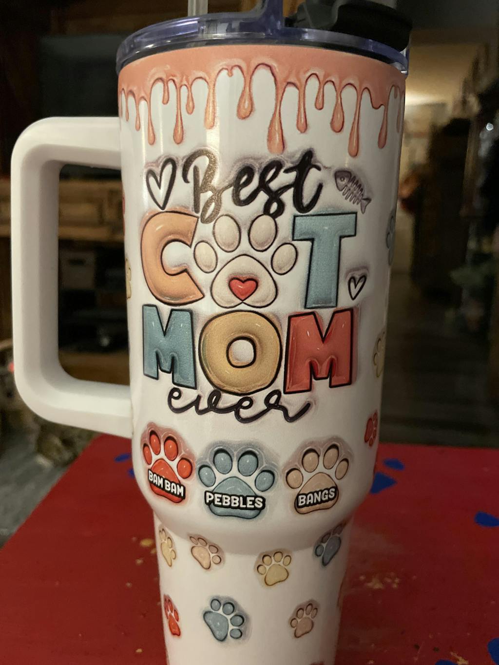 This is a tumbler with a 3D inflated effect print, used to give the item a premium and deep look.