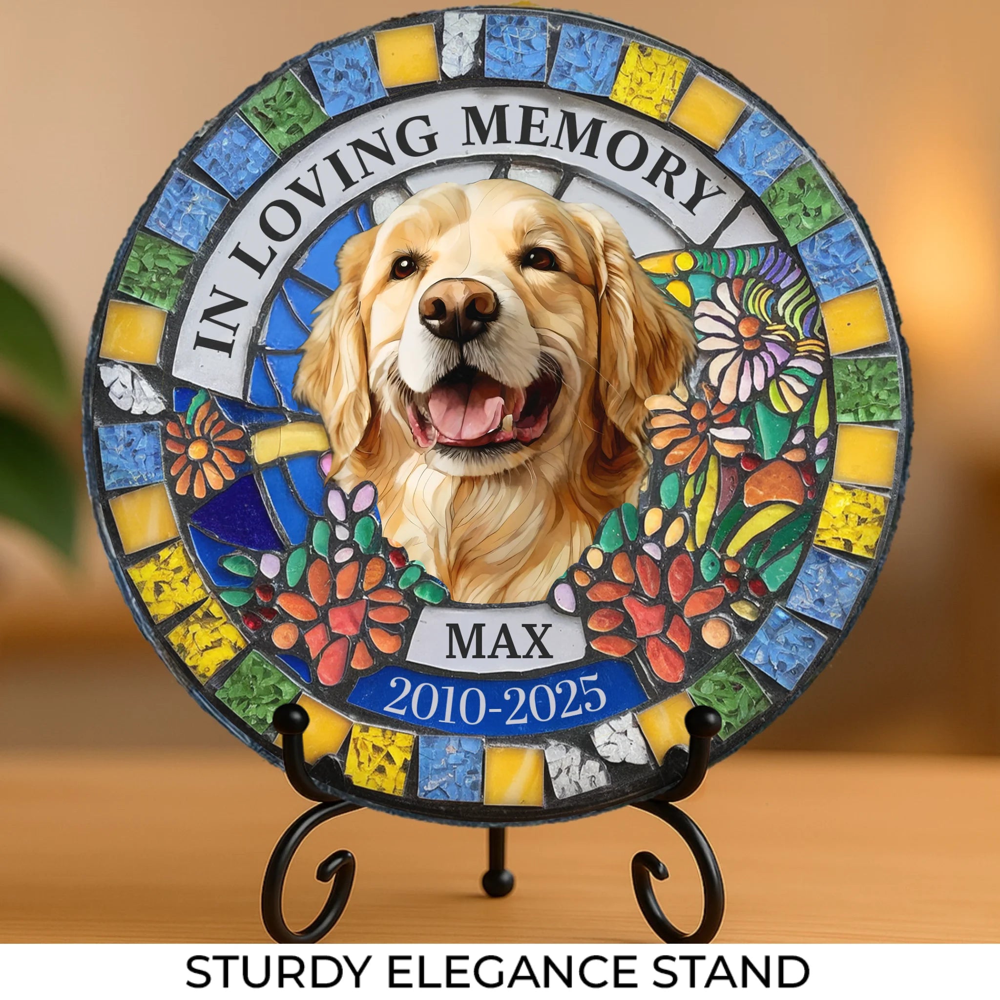 Custom Photo Never Out Of My Thoughts - Memorial Personalized Custom 3D Mosaic Faux Stained Glass Print Round Shaped Memorial Stone - Sympathy Gift For Pet Owners, Pet Lovers