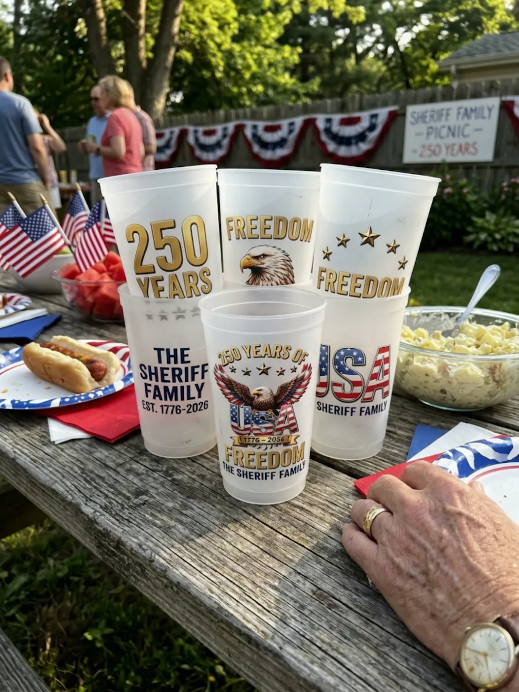 Custom Party Cups - Personalized America 250th Anniversary Gifts For Mom, Dad, Brother, Sister, Kids - United We Stand
