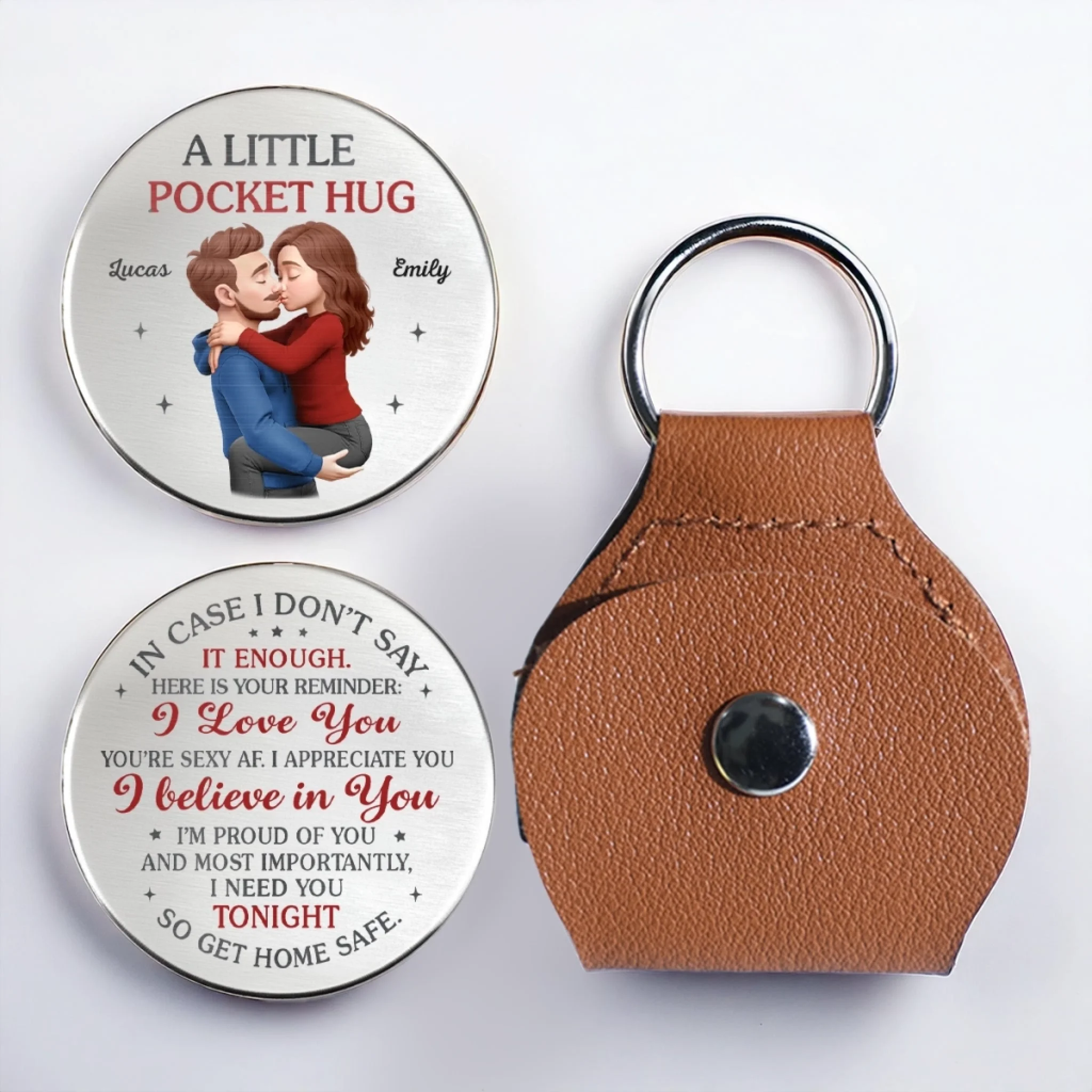 A pocket hug token is a small, meaningful accessory that symbolizes love, comfort, and connection. Designed to combine functionality with personal style, this token acts as a tangible reminder of care and support, offering emotional reassurance while carrying it. This is the perfect gift for anyone, suitable for all occasions: birthdays, holidays, anniversaries, graduations, Valentine's Day, Mother's Day, Father's Day, and just because! Whether for friends, family, or that special someone, this versatile gift is guaranteed to bring joy and make lasting memories.