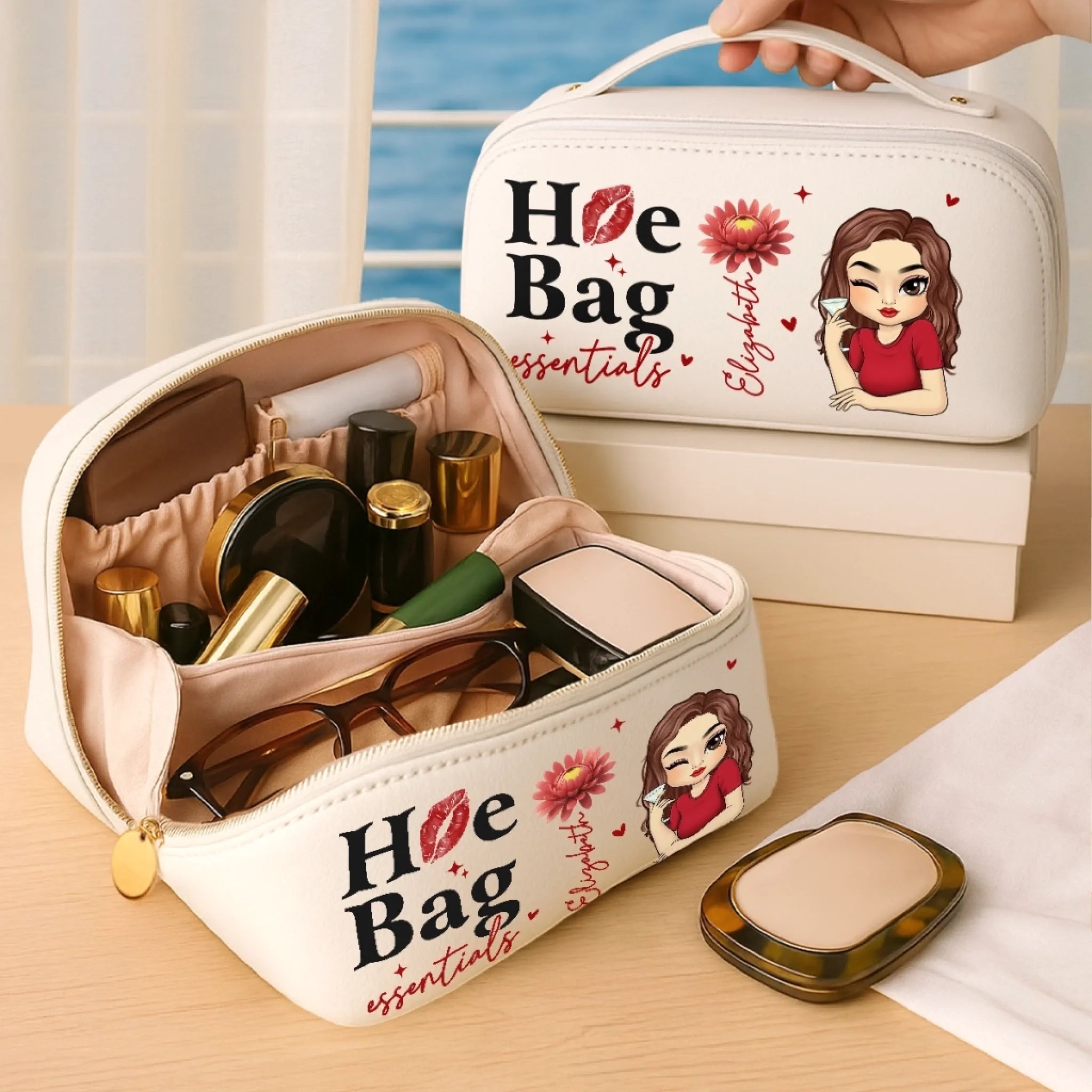 Custom PU Leather Travel Toiletry Bag - Personalized Birthday Gifts For Women, Besties, Sisters, BFF, Yourself - Stronger Each Day With My Journey