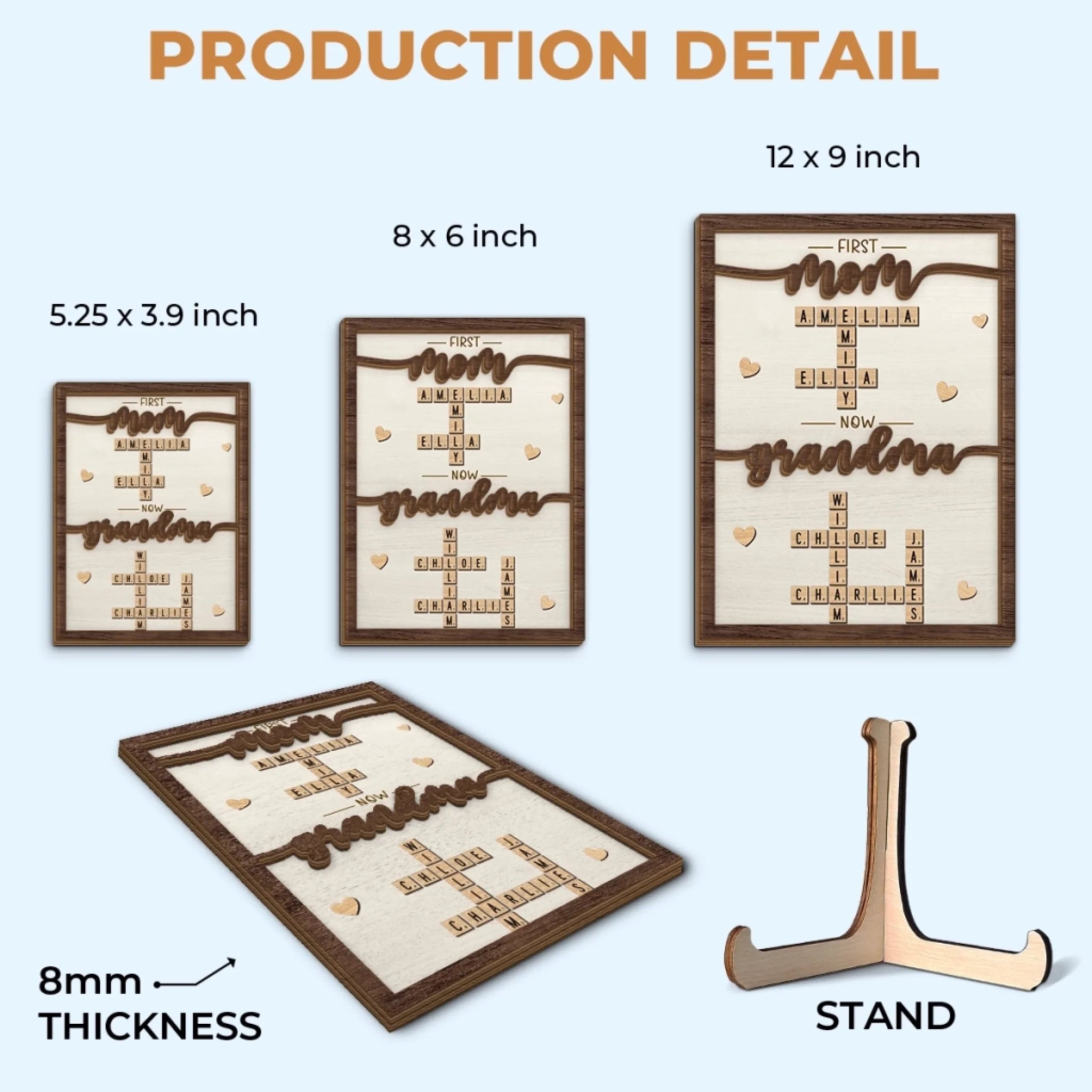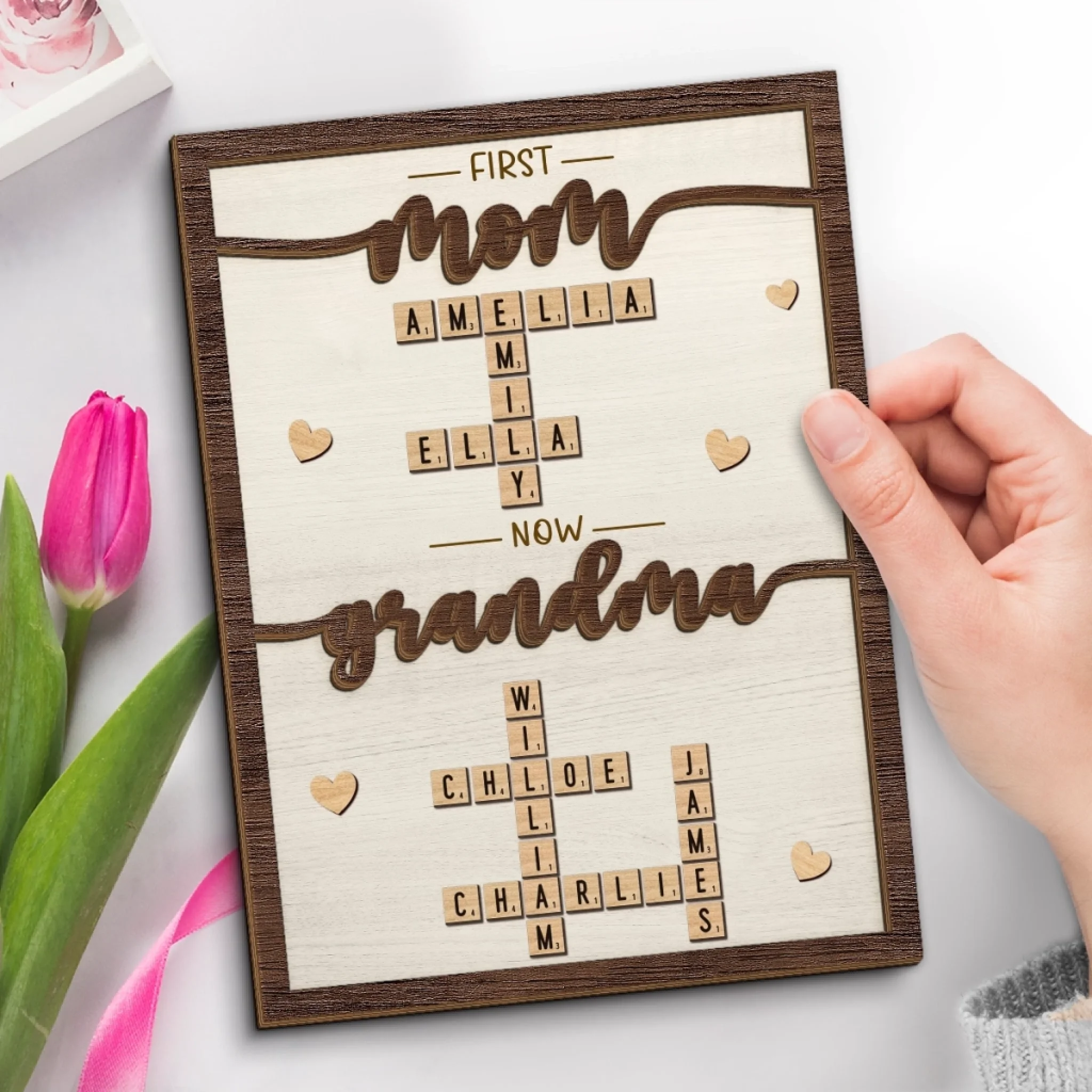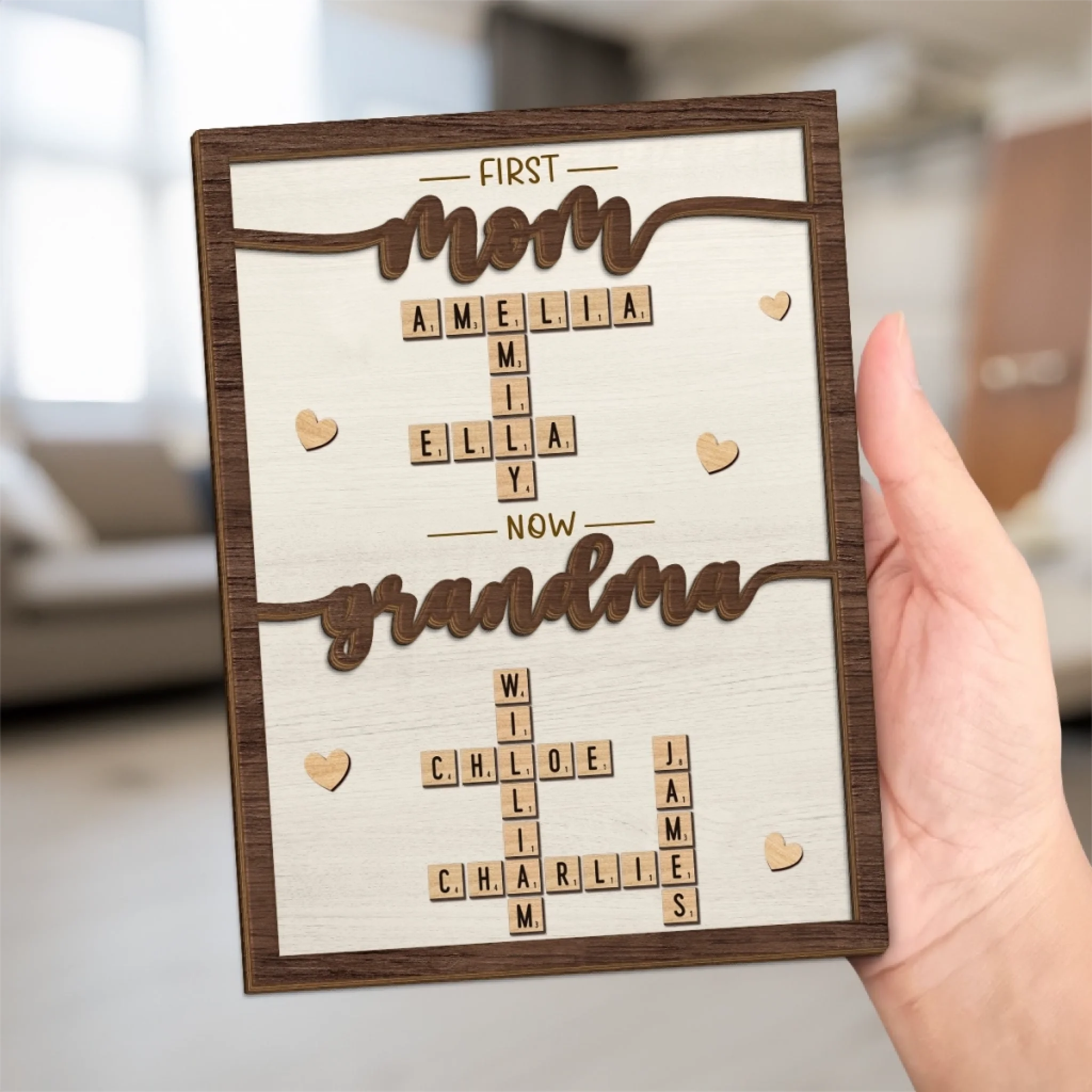 Custom Scrabble 2-Layered Wooden Plaque - Personalized Mother's Day Birthday Gifts For Mom, Grandma - Our love In Every Letter
