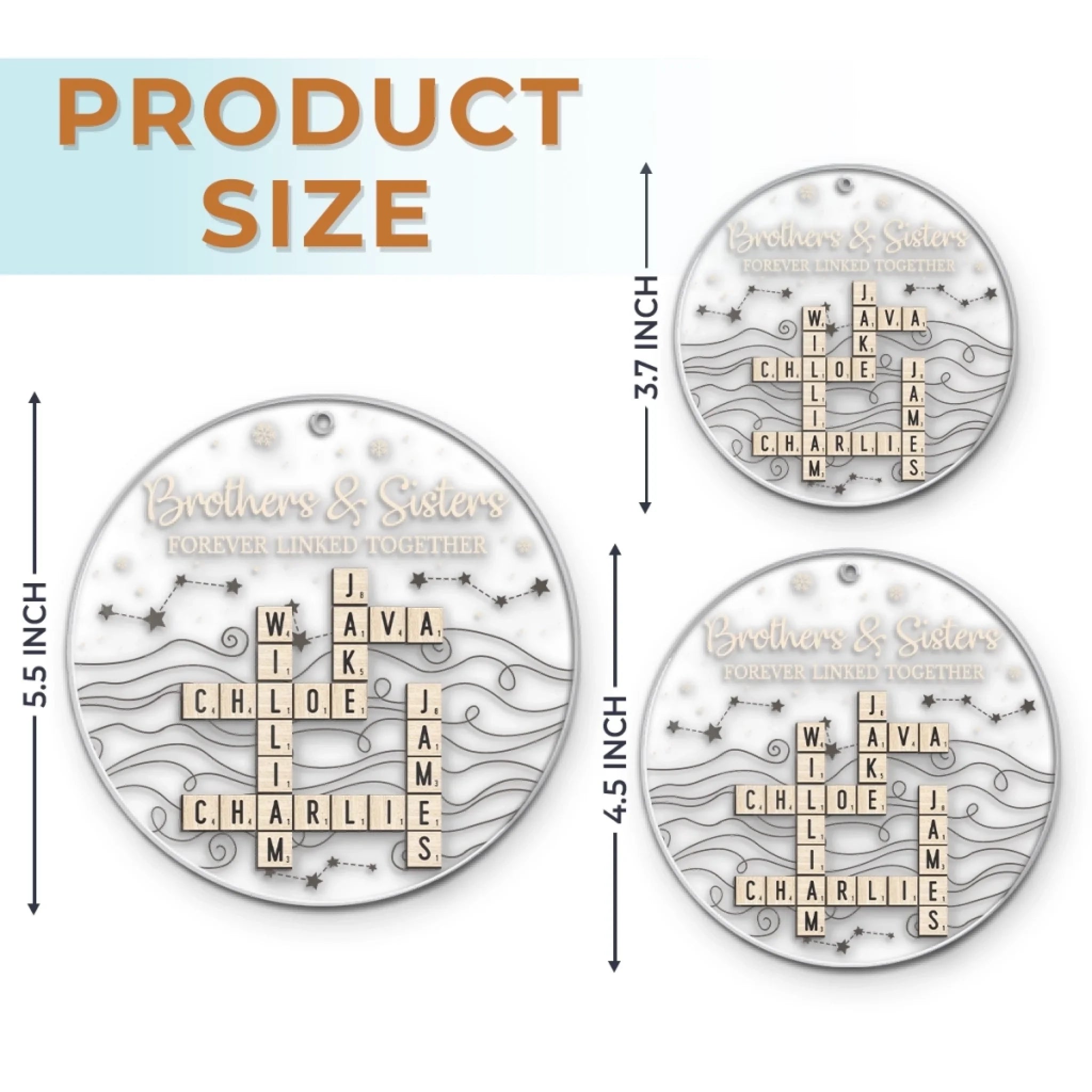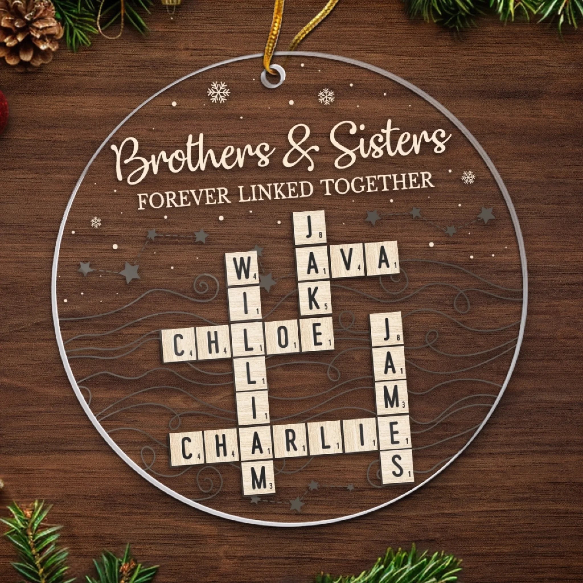 Custom Scrabble Acrylic Ornament - Personalized Christmas Birthday Gifts For Brother, Sister - Growing Side By Side Always