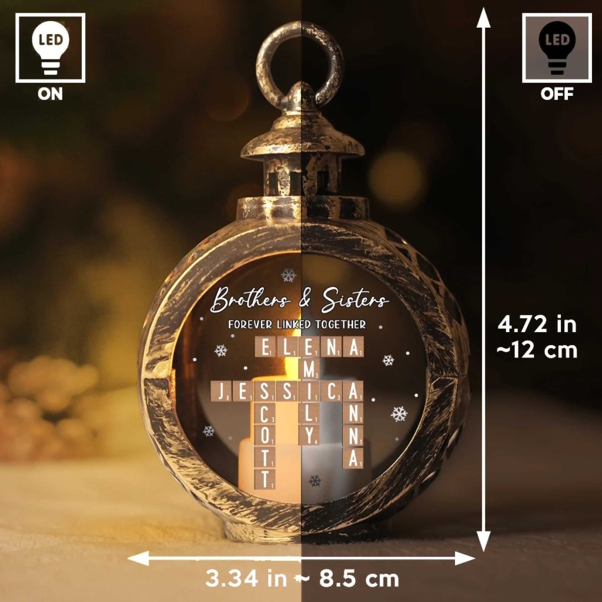 Custom Scrabble Candlelight Lantern Ornament - Personalized Christmas Birthday Gifts For Brother, Sister - Lit By Love Held By Time