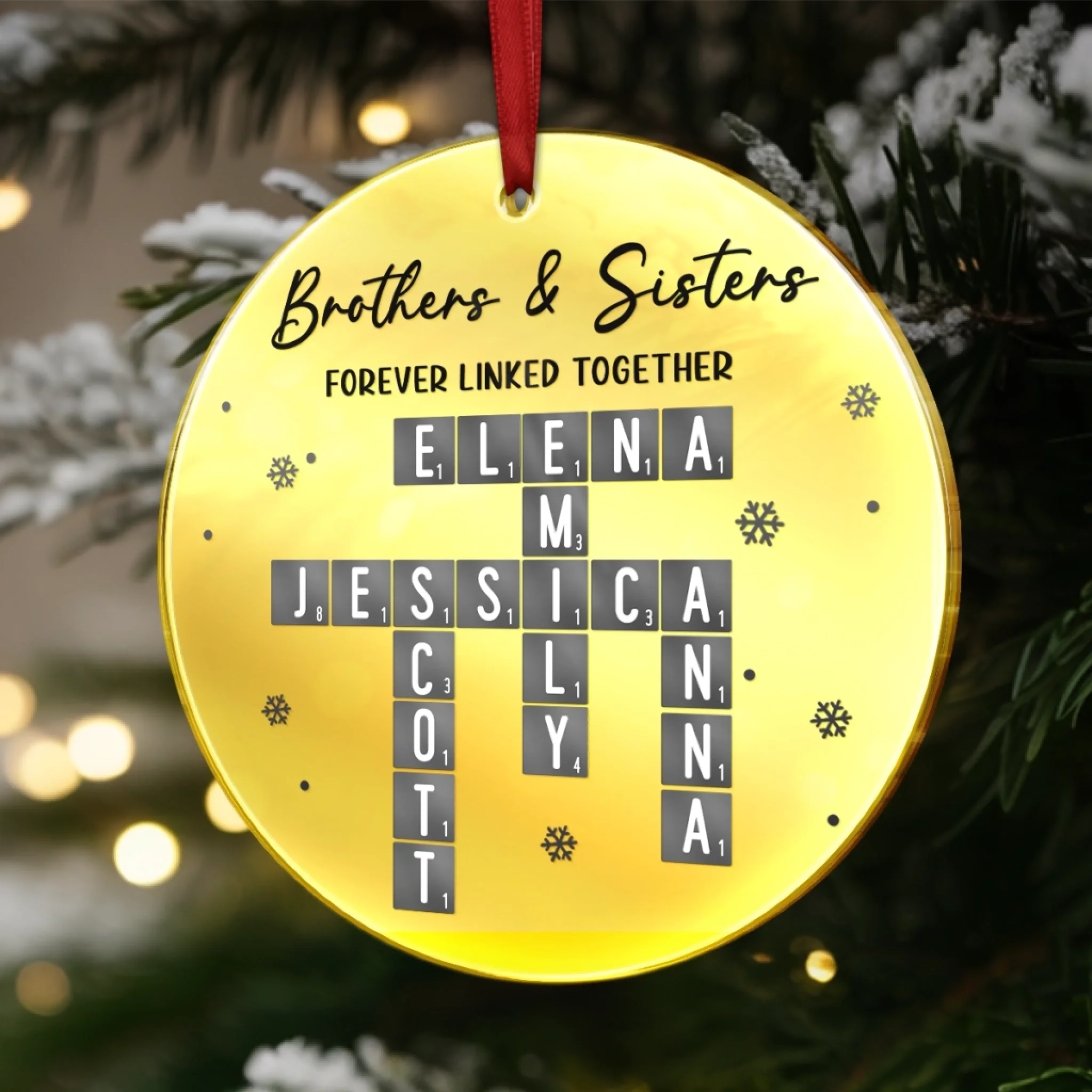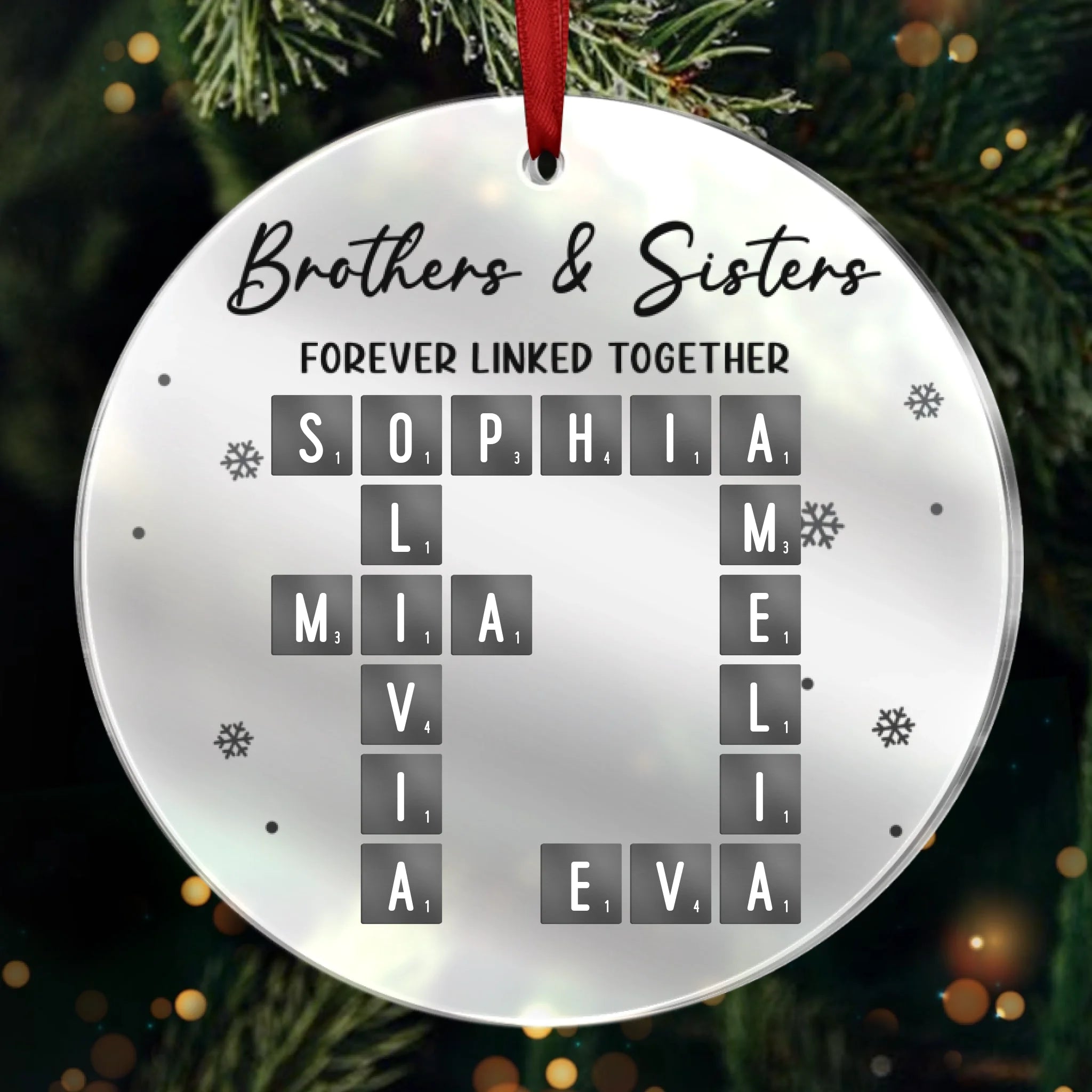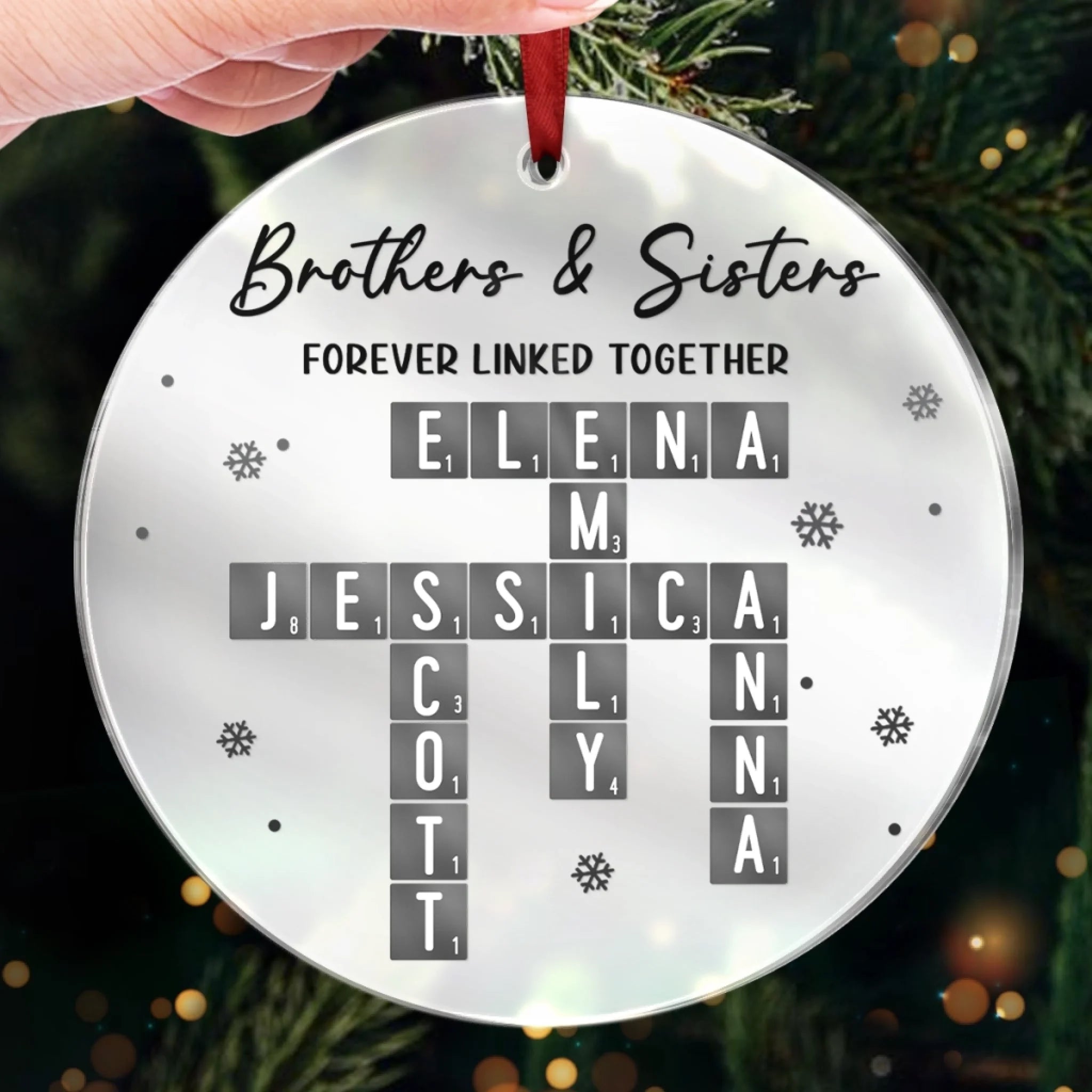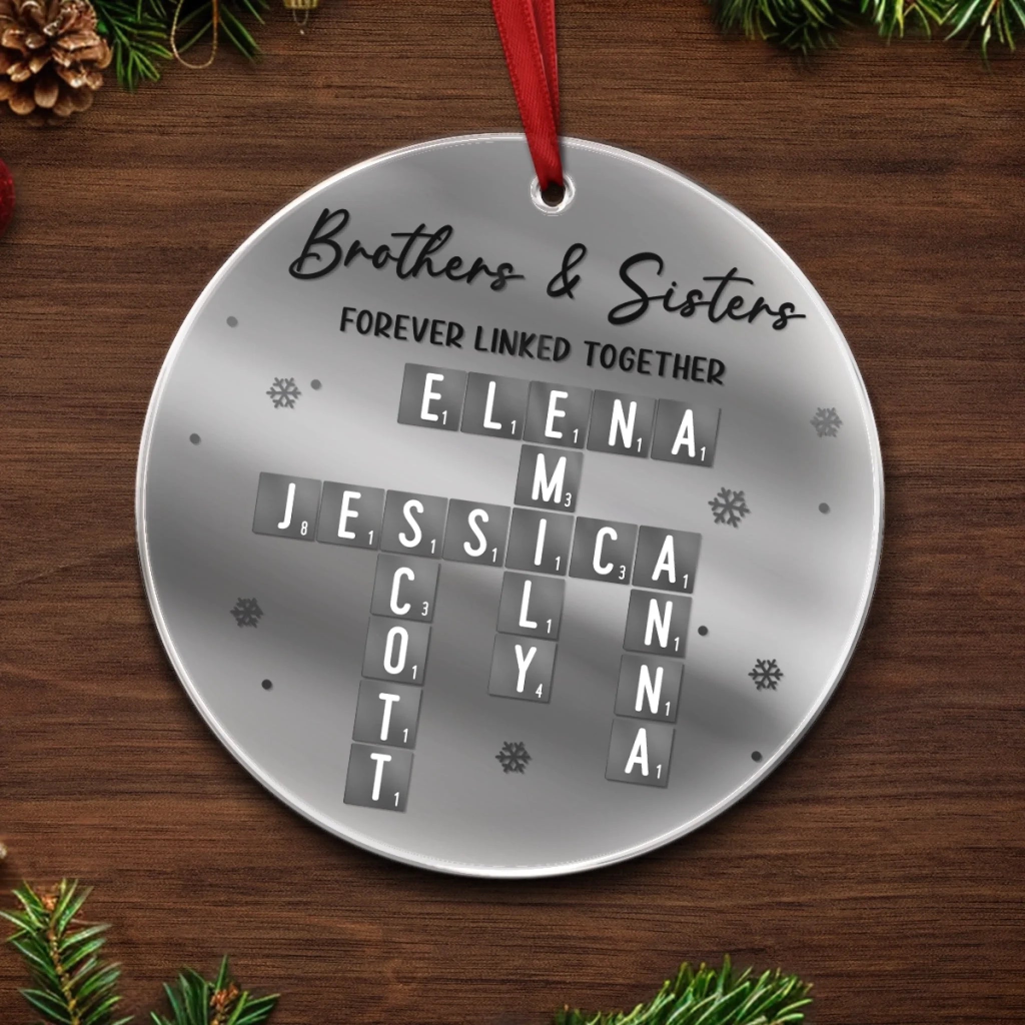 Custom Scrabble Mirrored Acrylic Ornament - Personalized Christmas Birthday Gifts For Brother, Sister - You Complete My Word