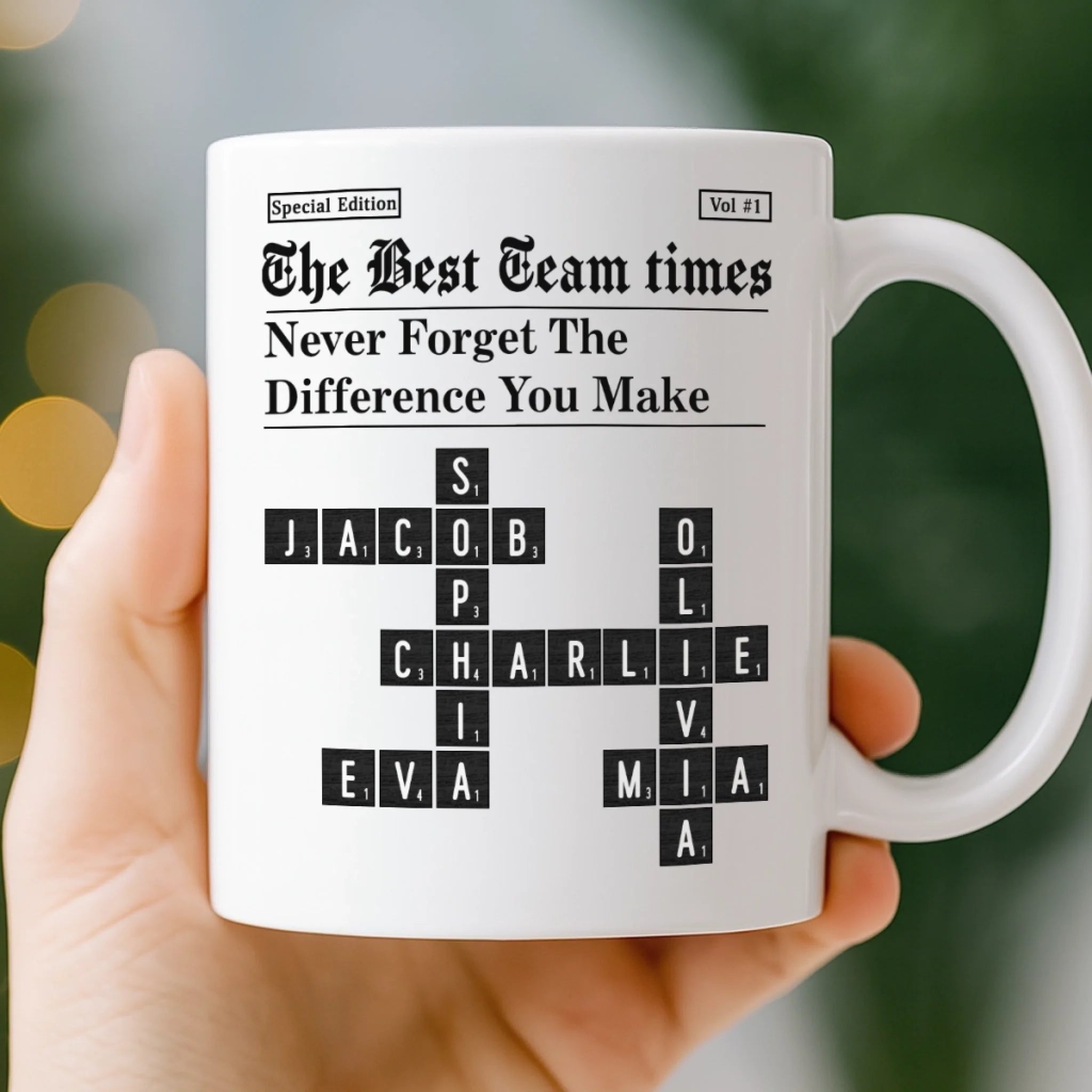 Custom Scrabble Mug - Personalized Birthday Gifts For Coworker, Work Bestie - Teamwork Makes Every Day Better