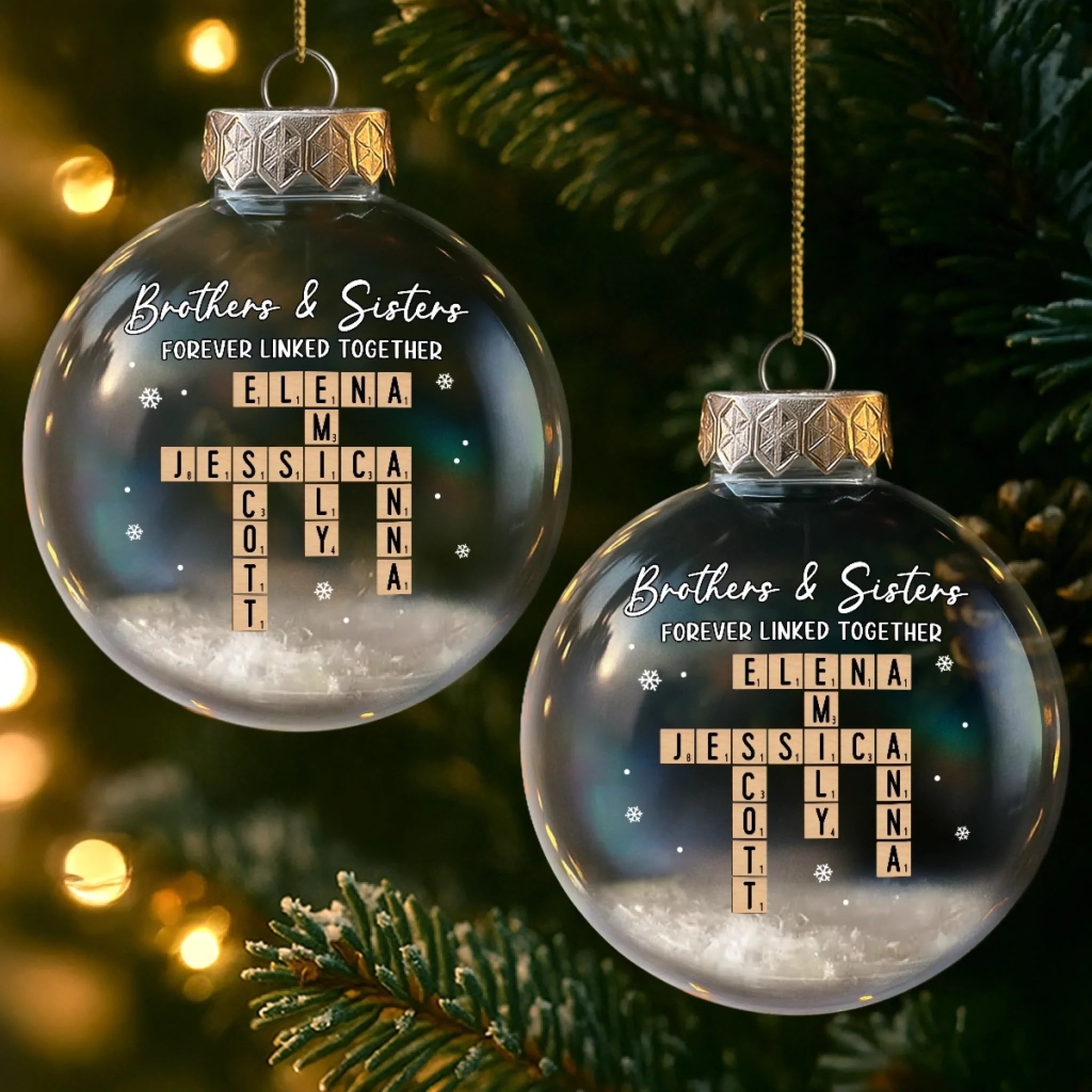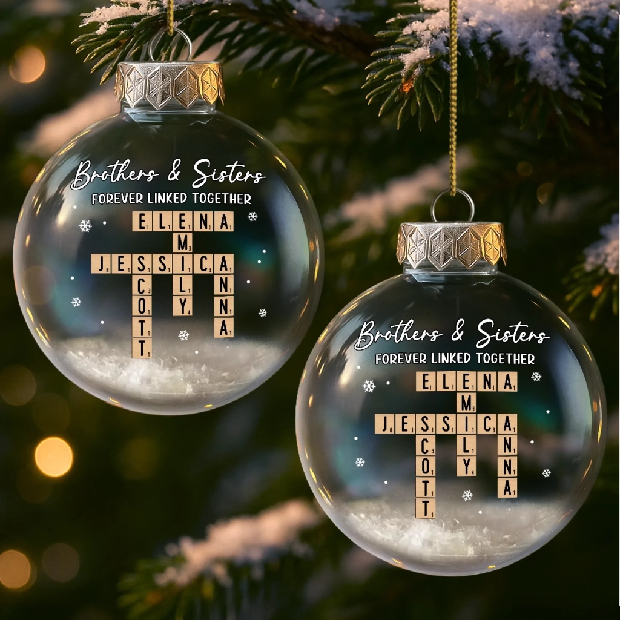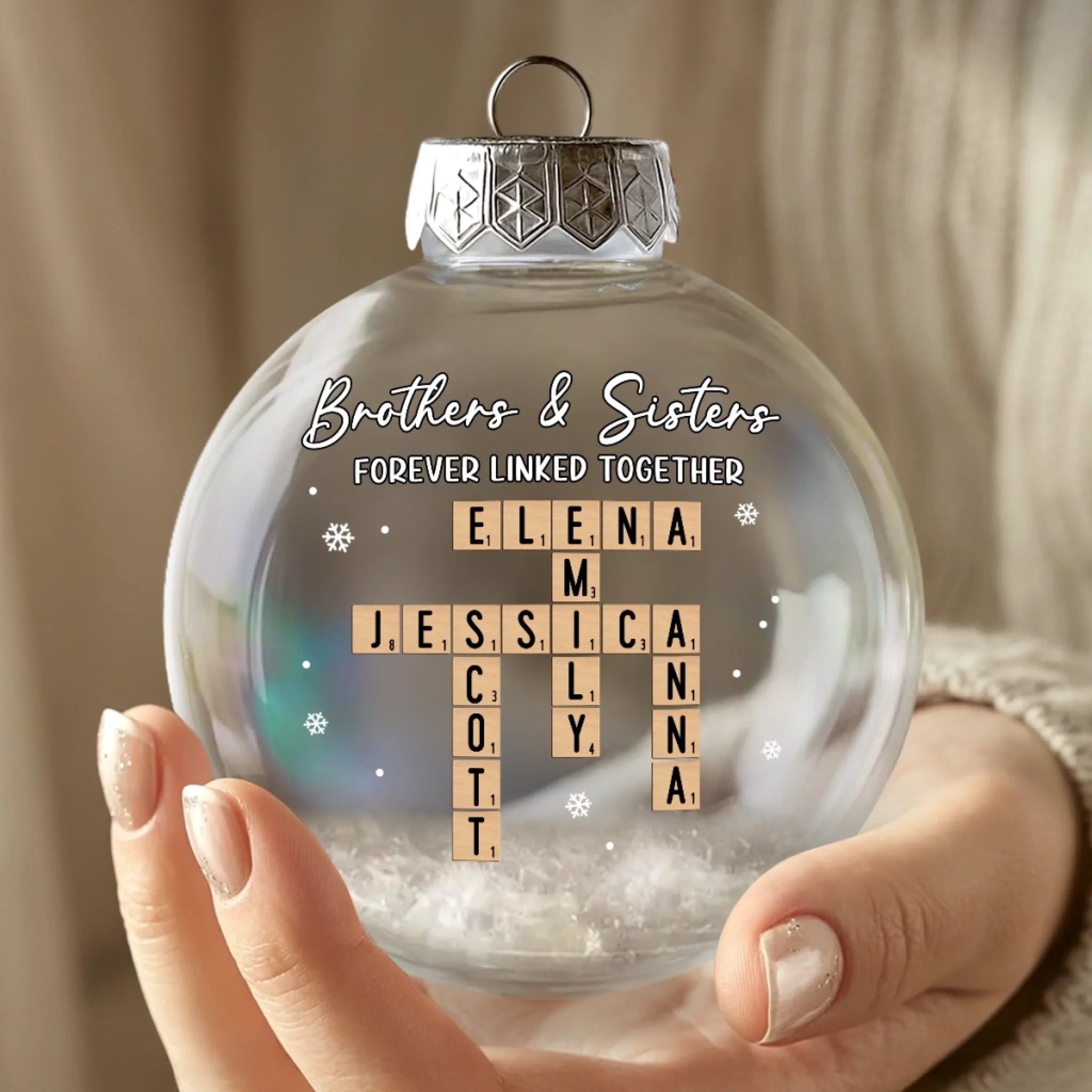 Custom Scrabble Snow-Filled Ball Ornament - Personalized Christmas Birthday Gifts For Brother, Sister - Love Wrapped Beneath