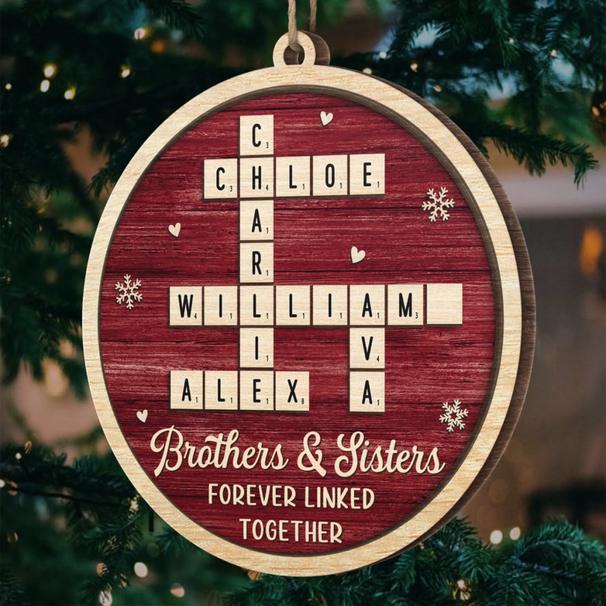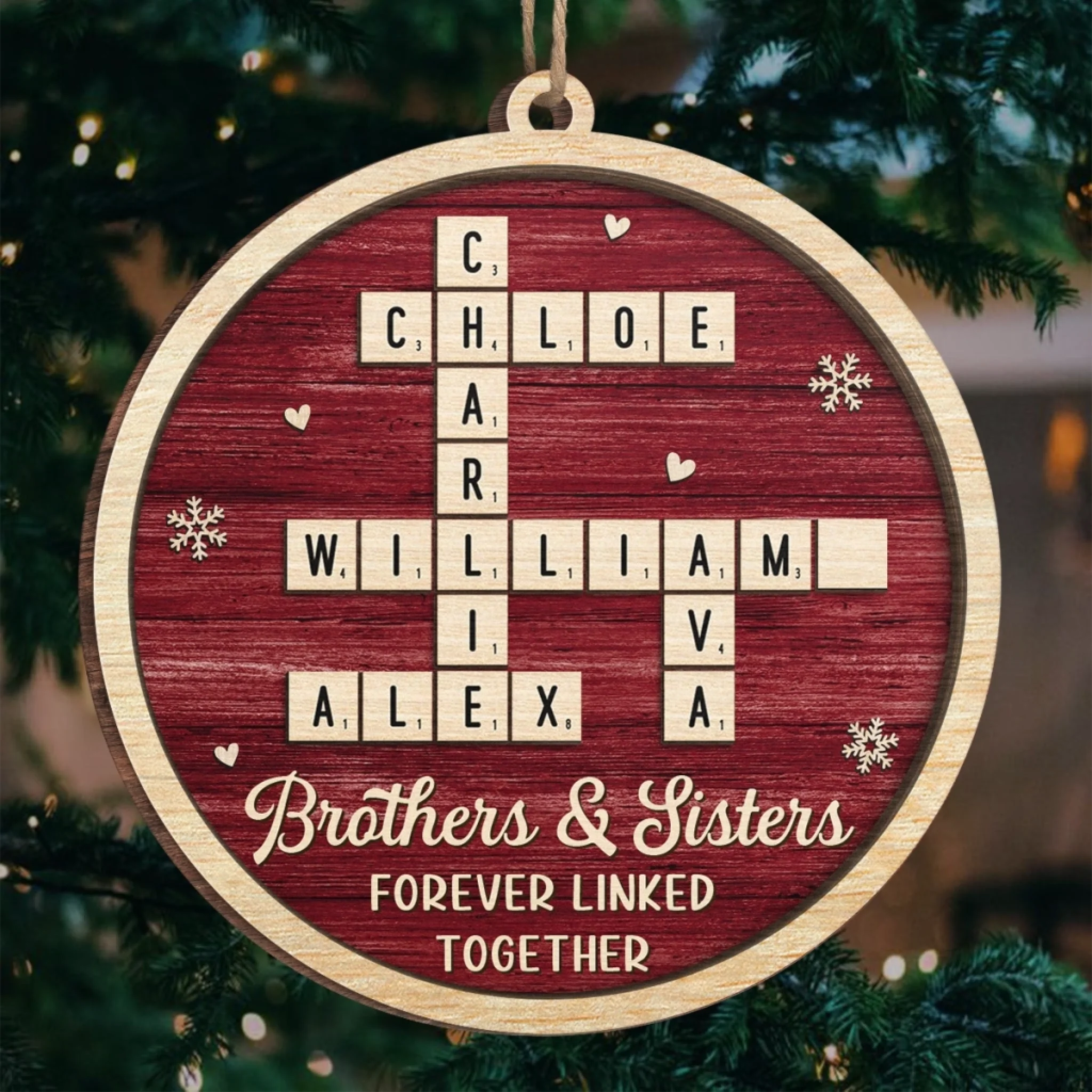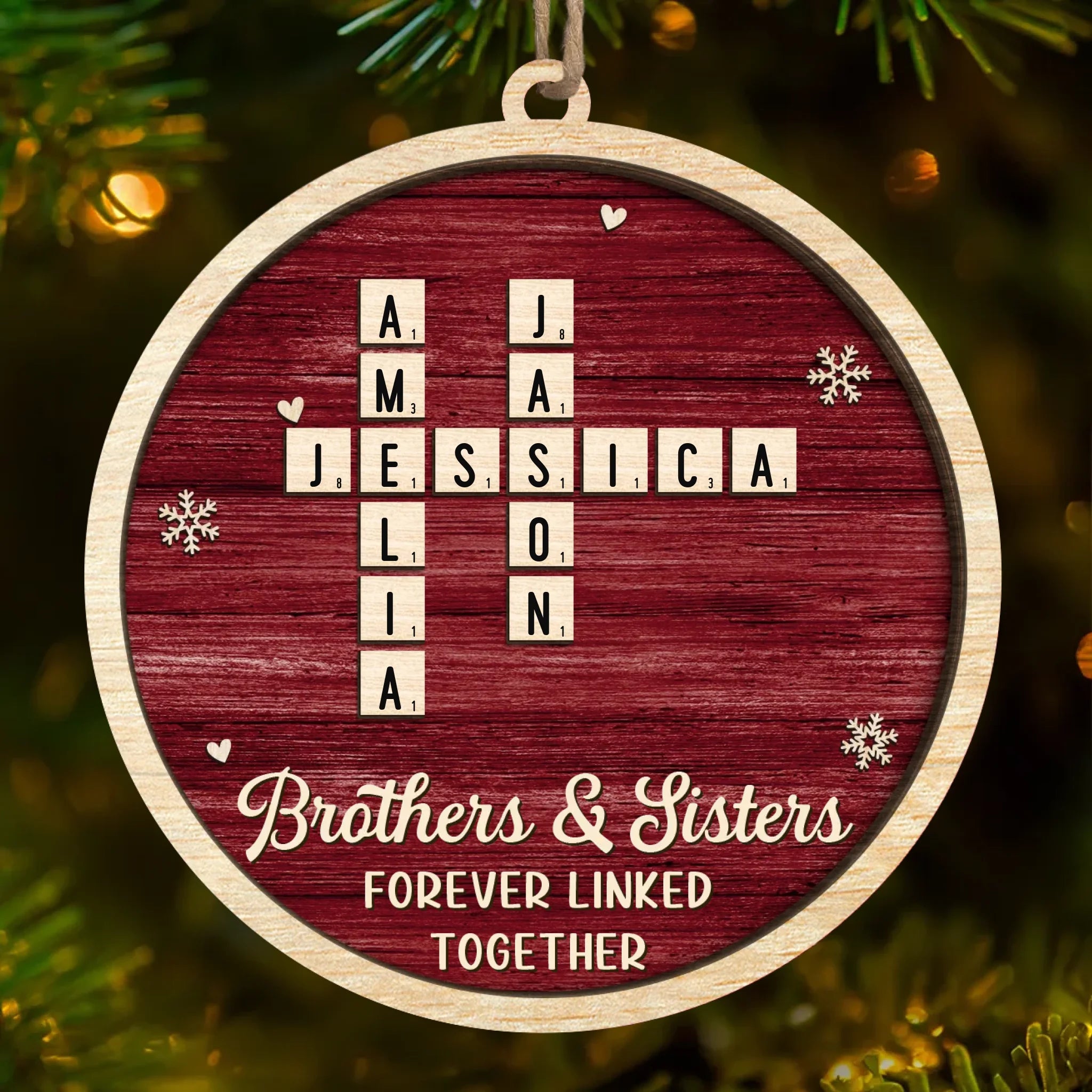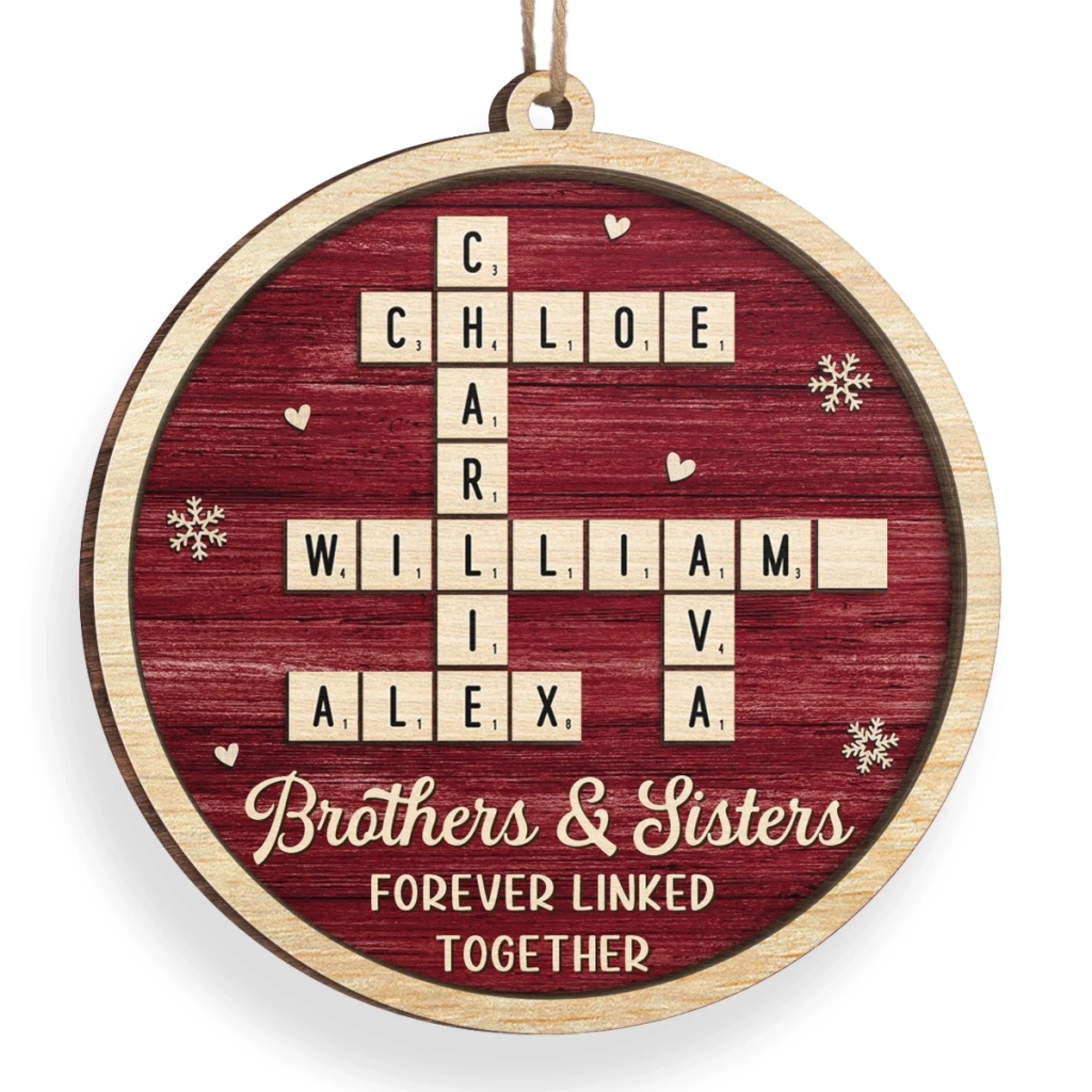Custom Scrabble Wood Ornament - Personalized Christmas Birthday Gifts For Brother, Sister - Joyful Hearts Gather Here